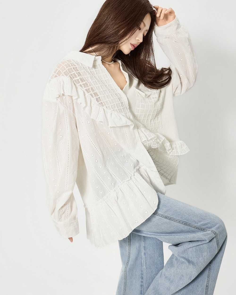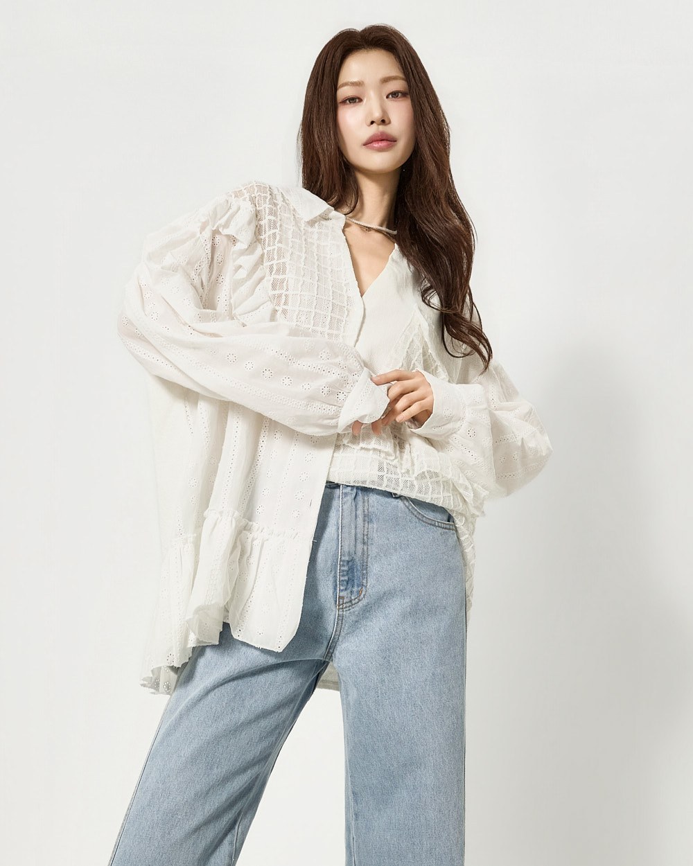 와이드 핏 실루엣으로 여유 있게 떨어지며
