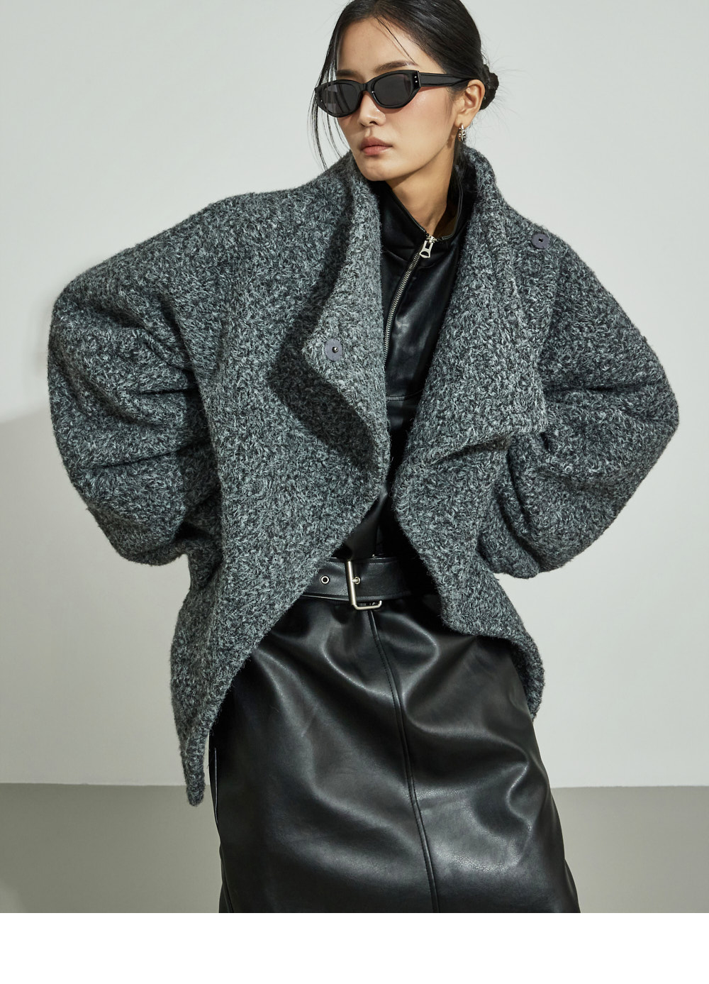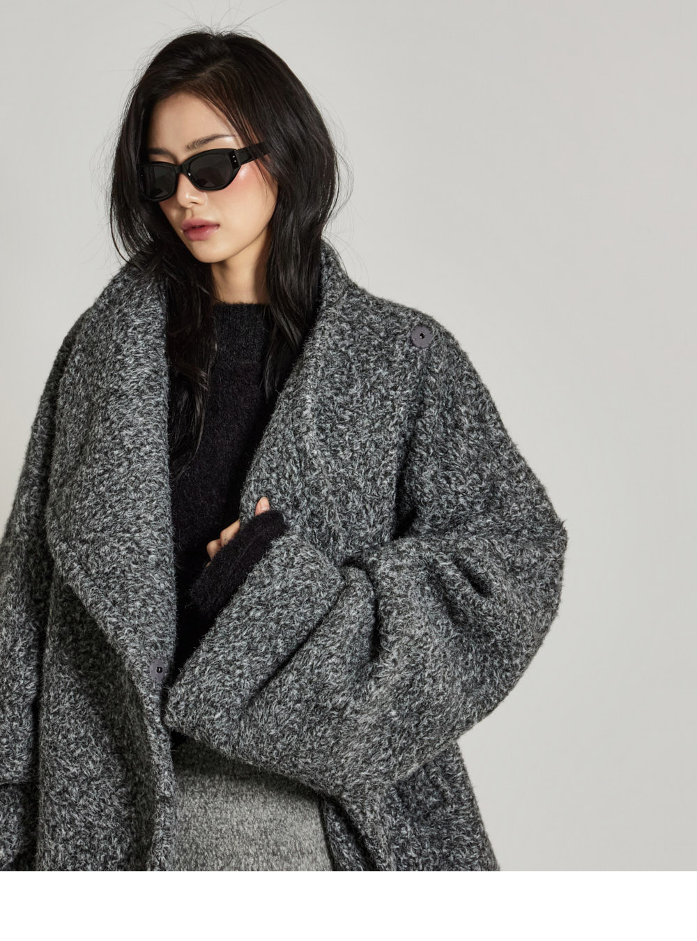 오버핏 실루엣과 소매 주름 디테일이 더해져