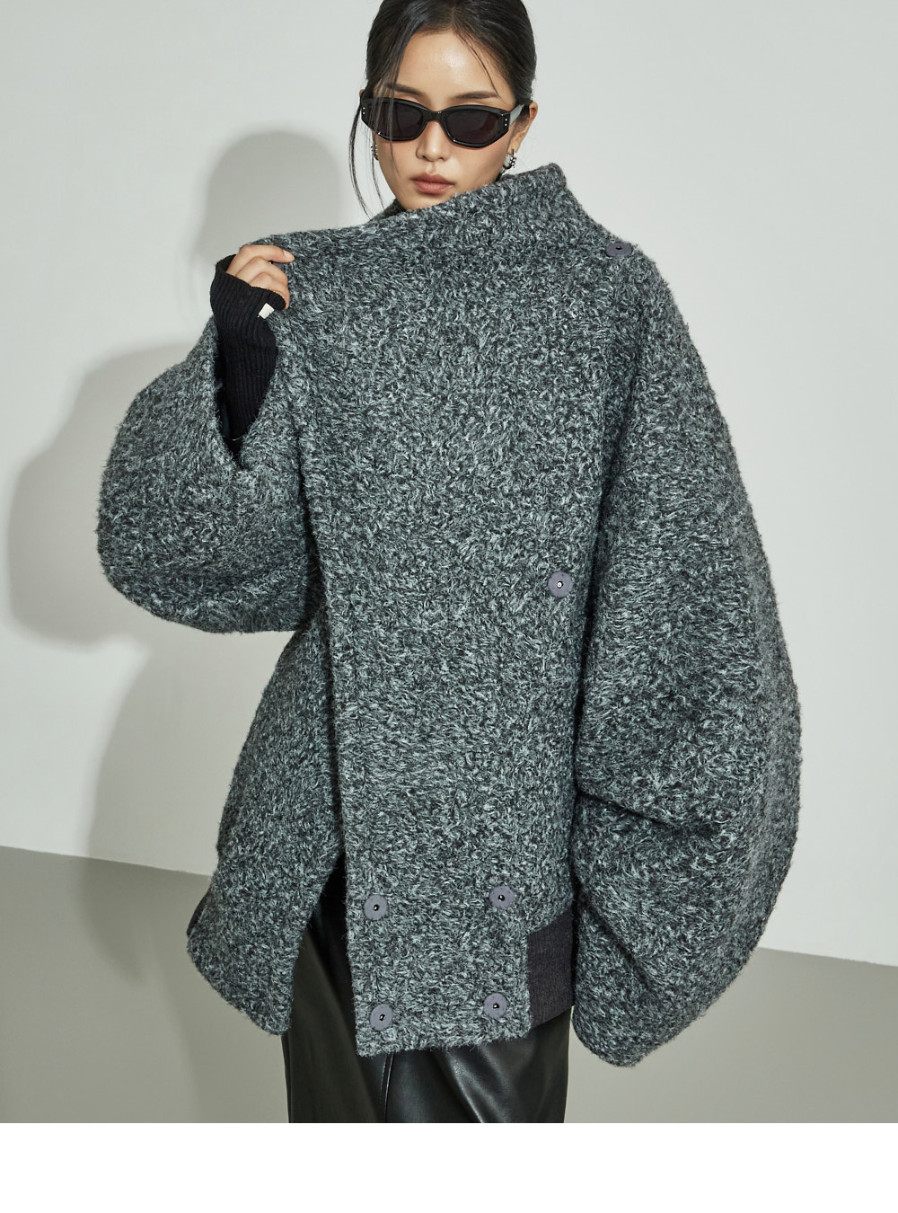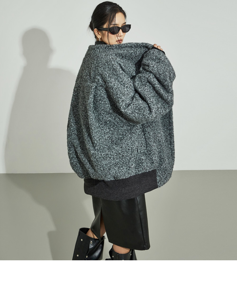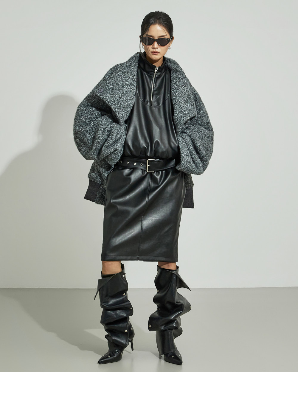 모던한 무드의 하이넥 벌룬 점퍼입니다.