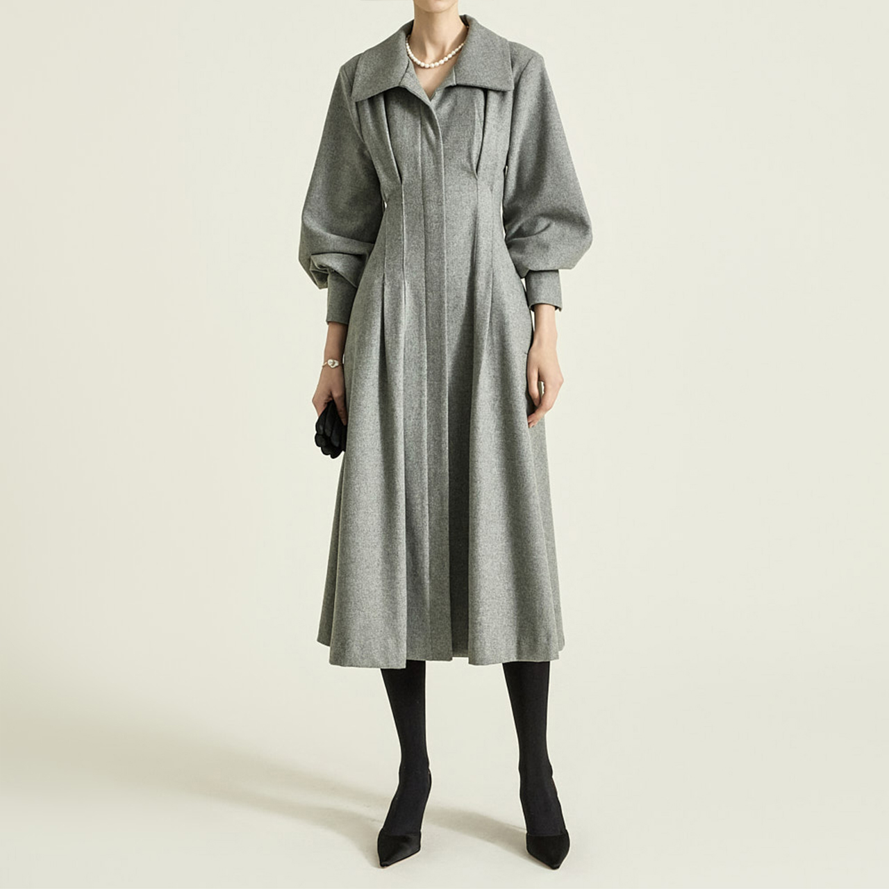 플레어한 스커트라인으로 자연스럽게 떨어지는 실루엣이 우아하고