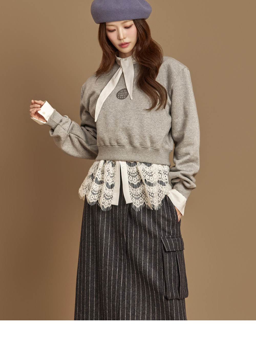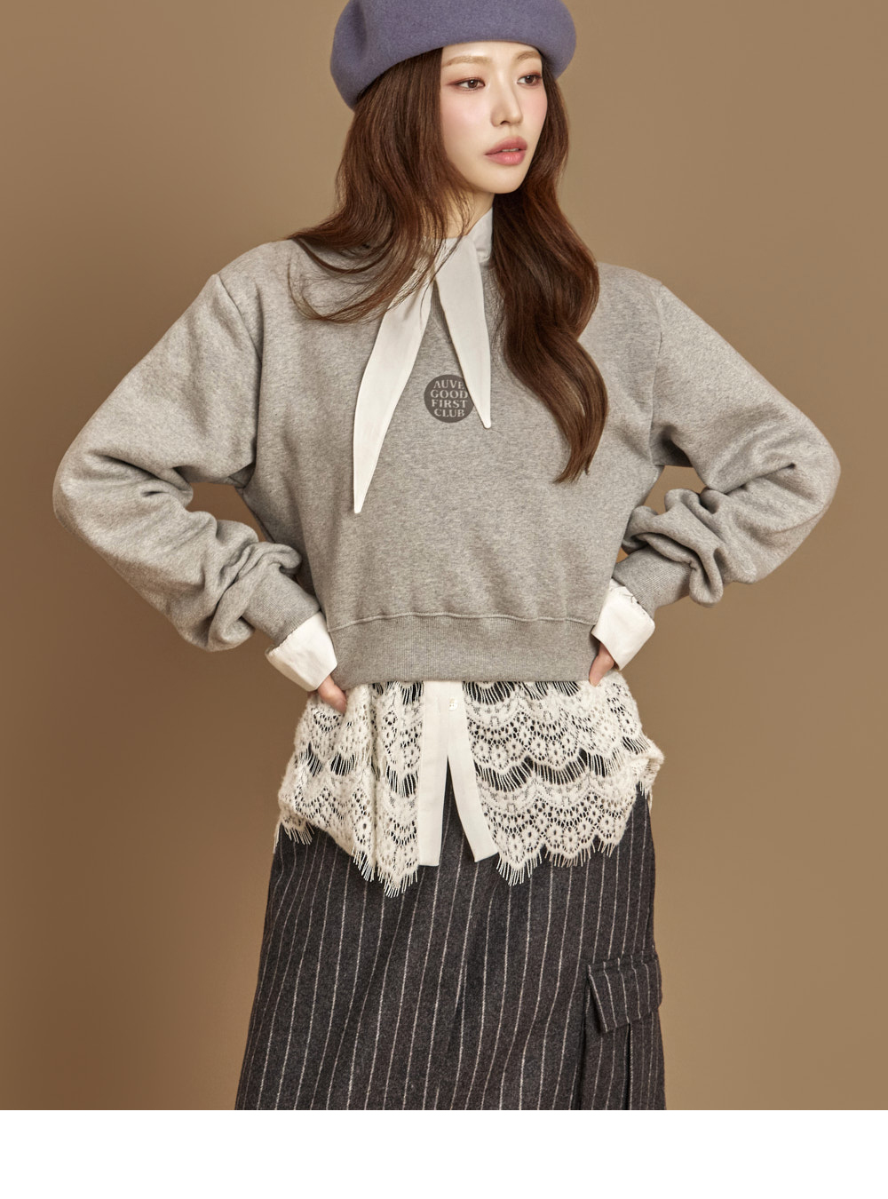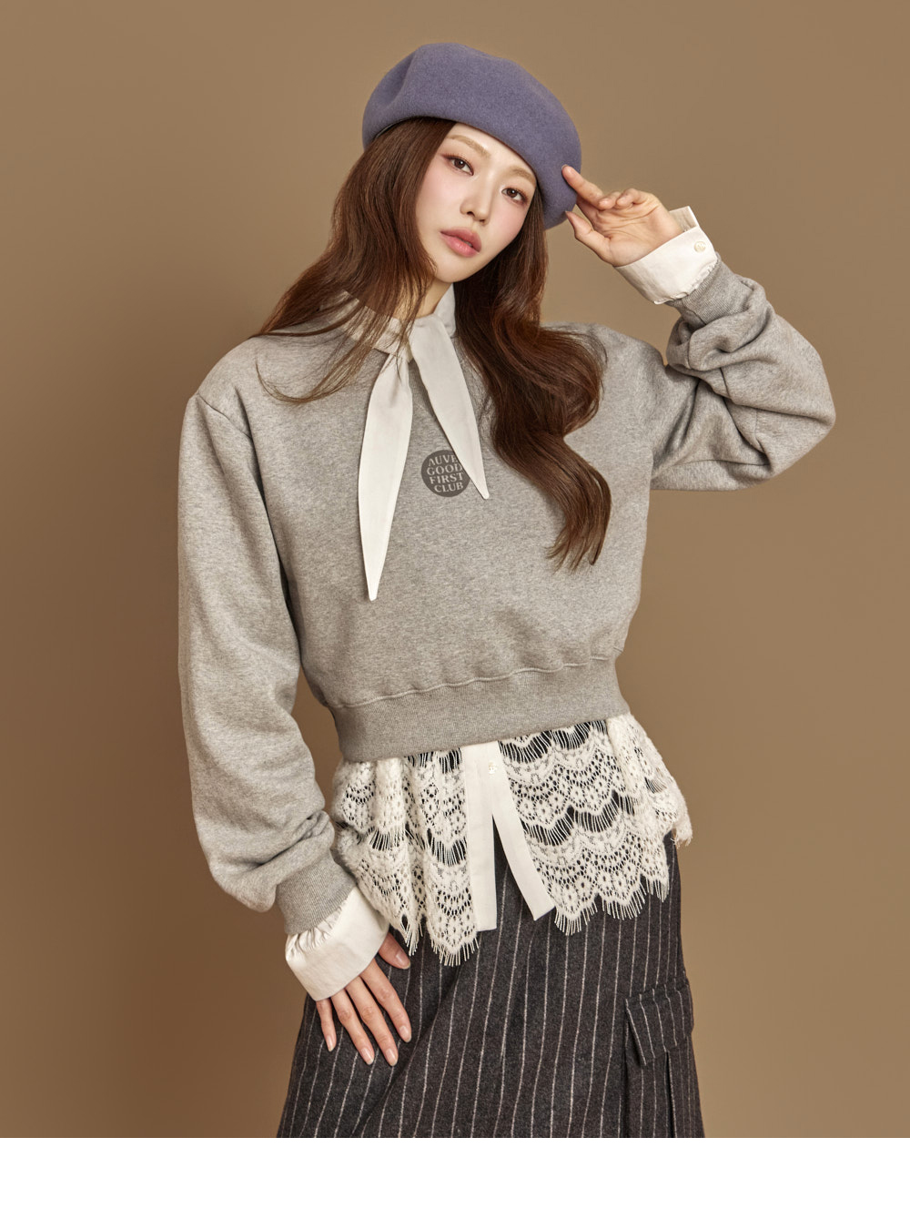 자연스럽게 흐르는 라인의 네크 스카프 디테일이