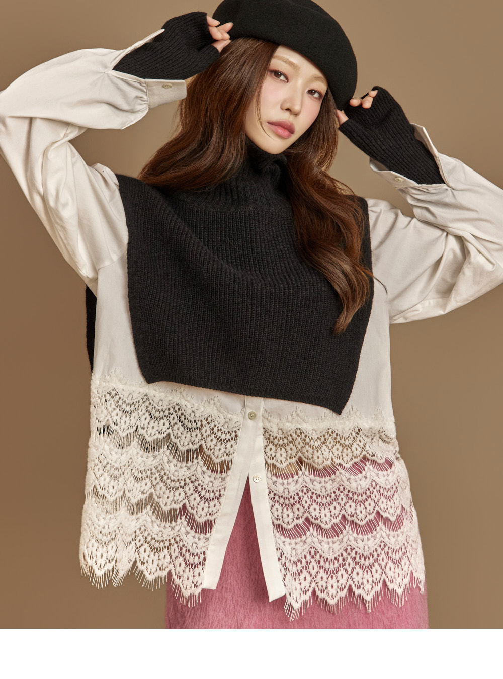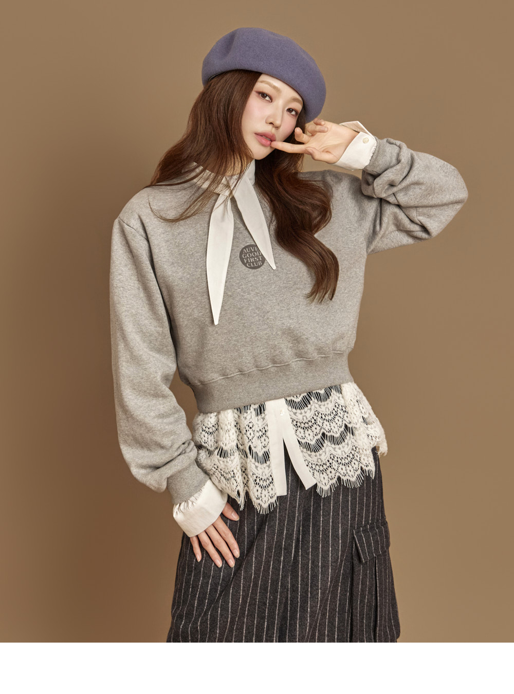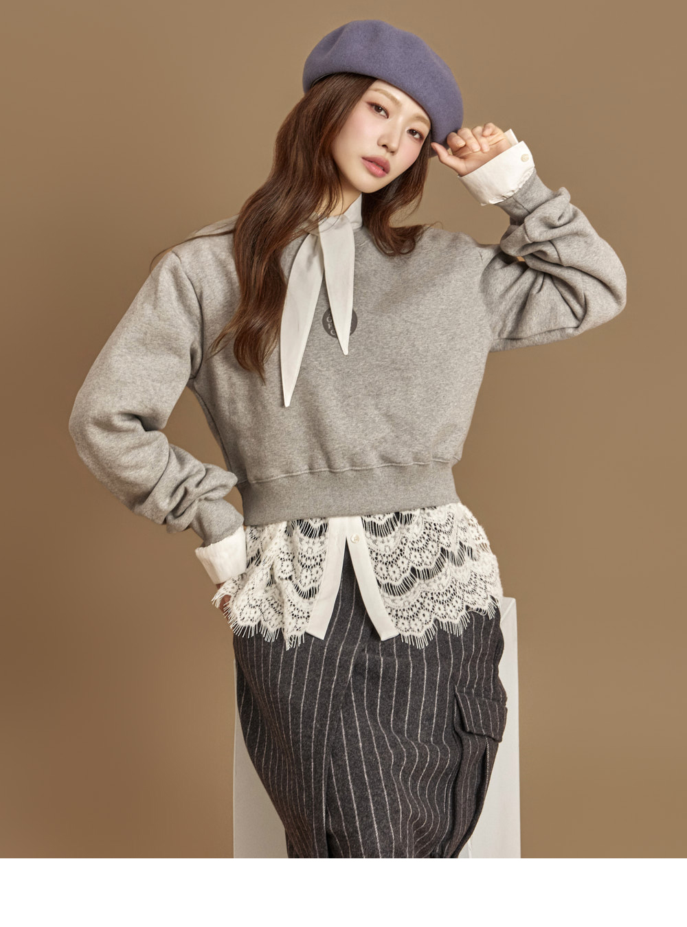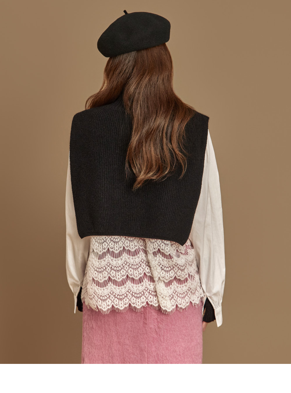 자연스럽게 흐르는 라인의 네크 스카프 디테일이