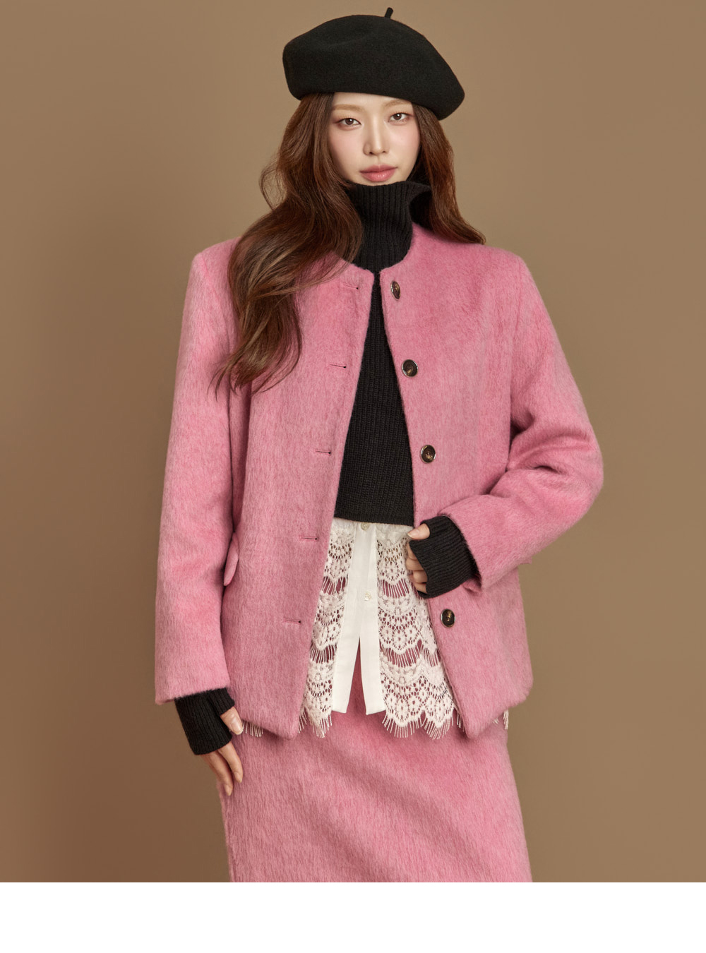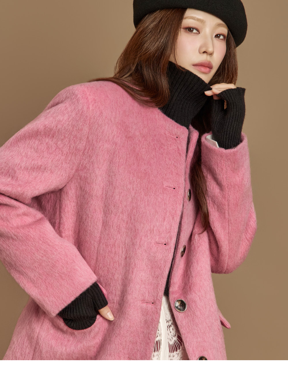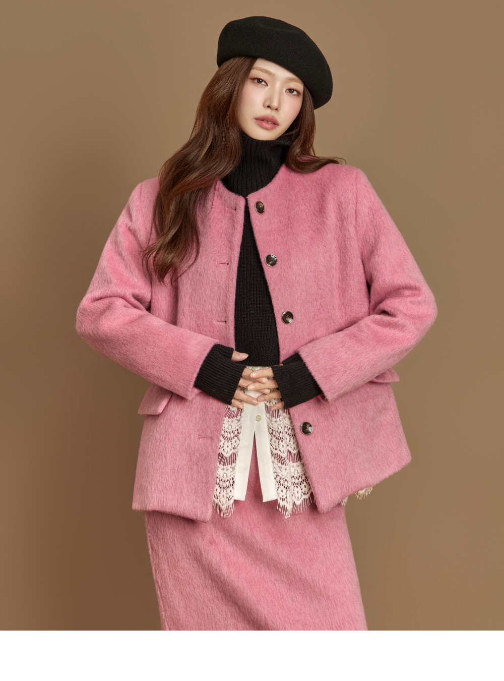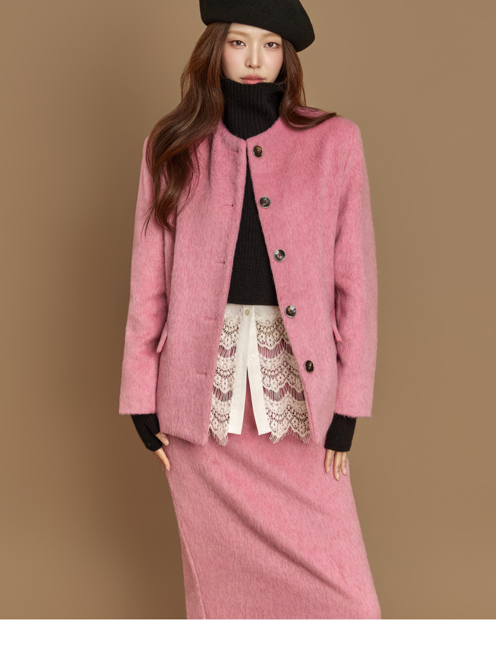 전면 버튼 여밈으로 깔끔하게 마무리되었고