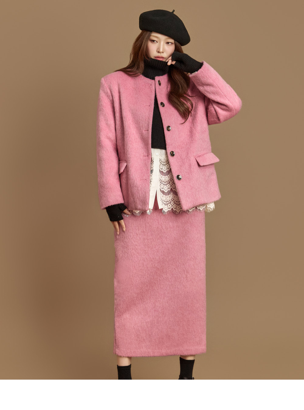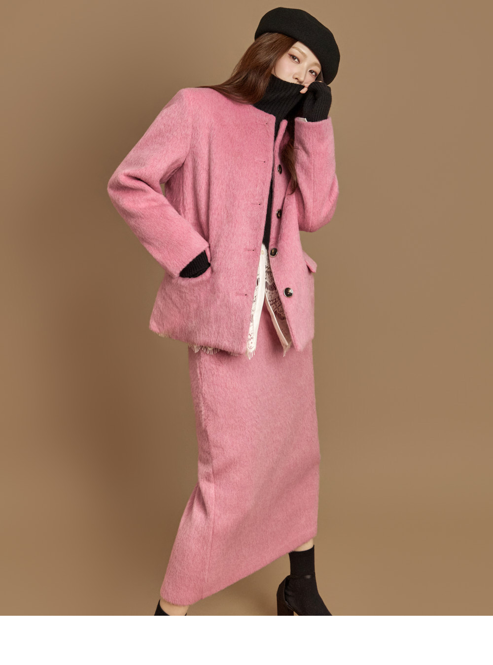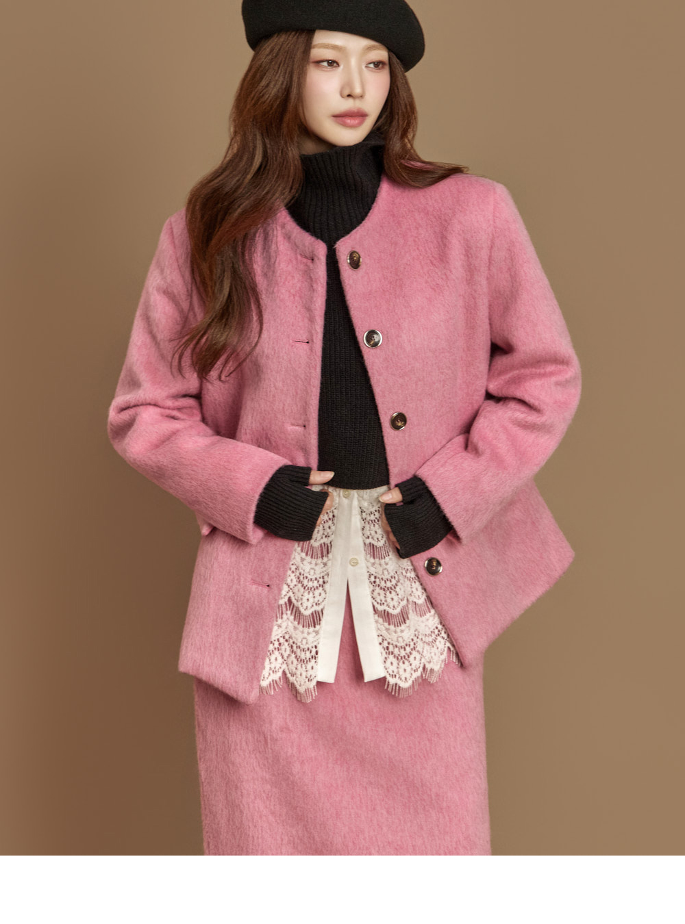 전면 버튼 여밈으로 깔끔하게 마무리되었고