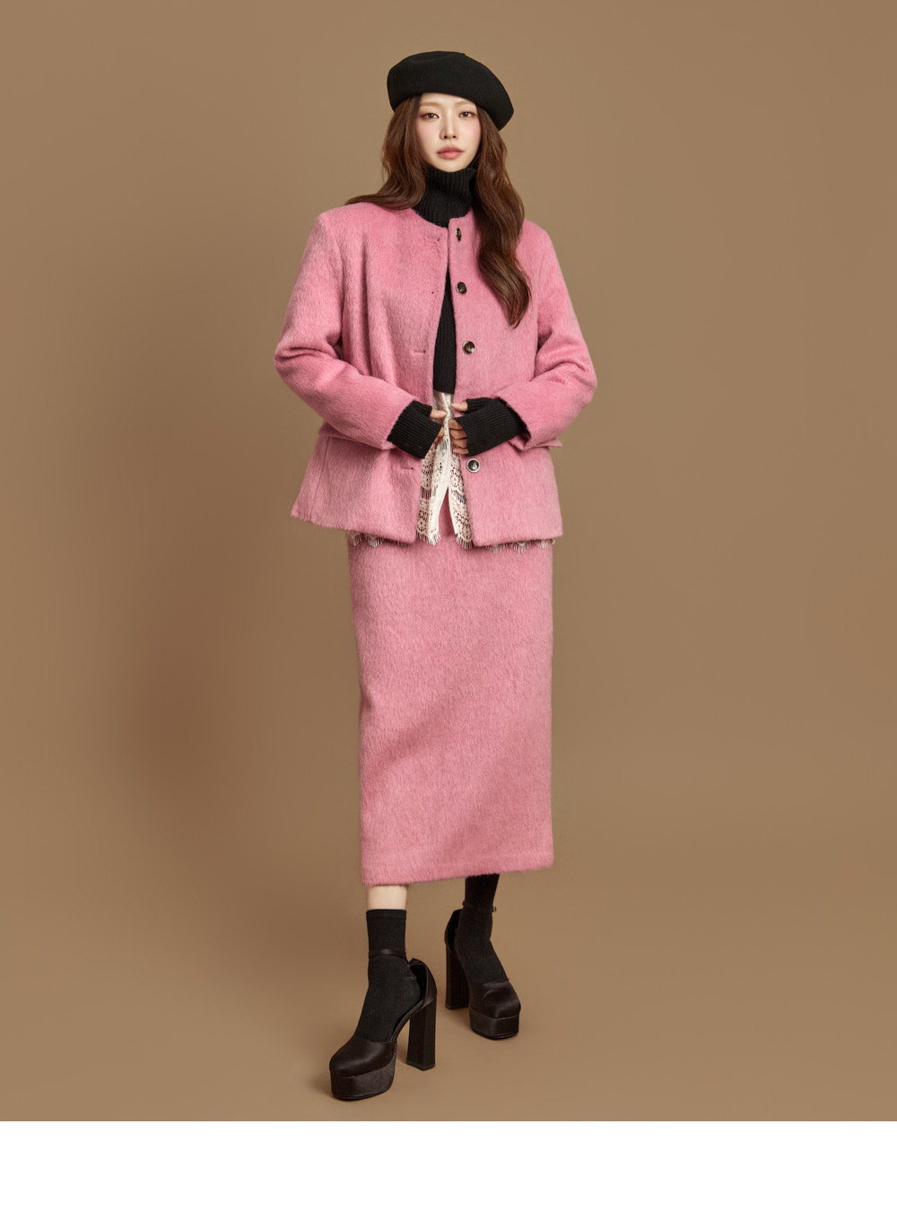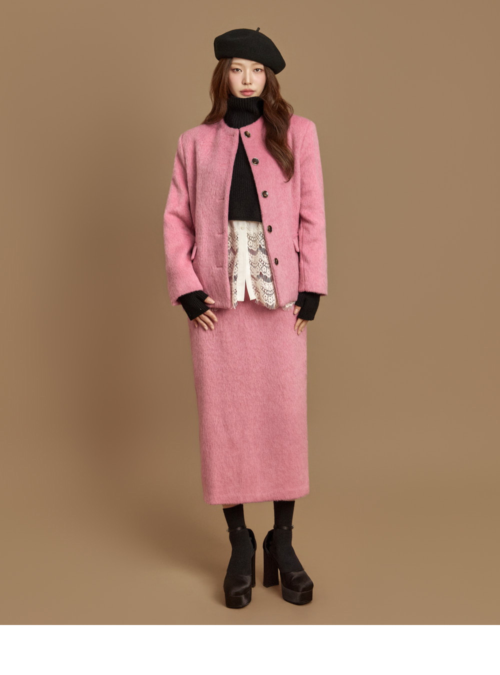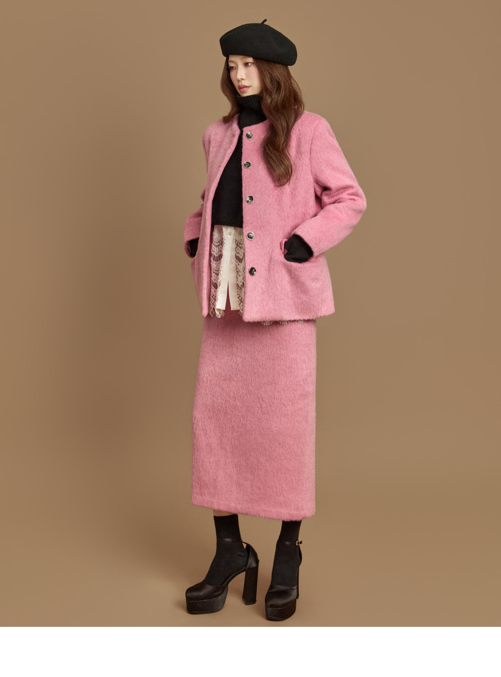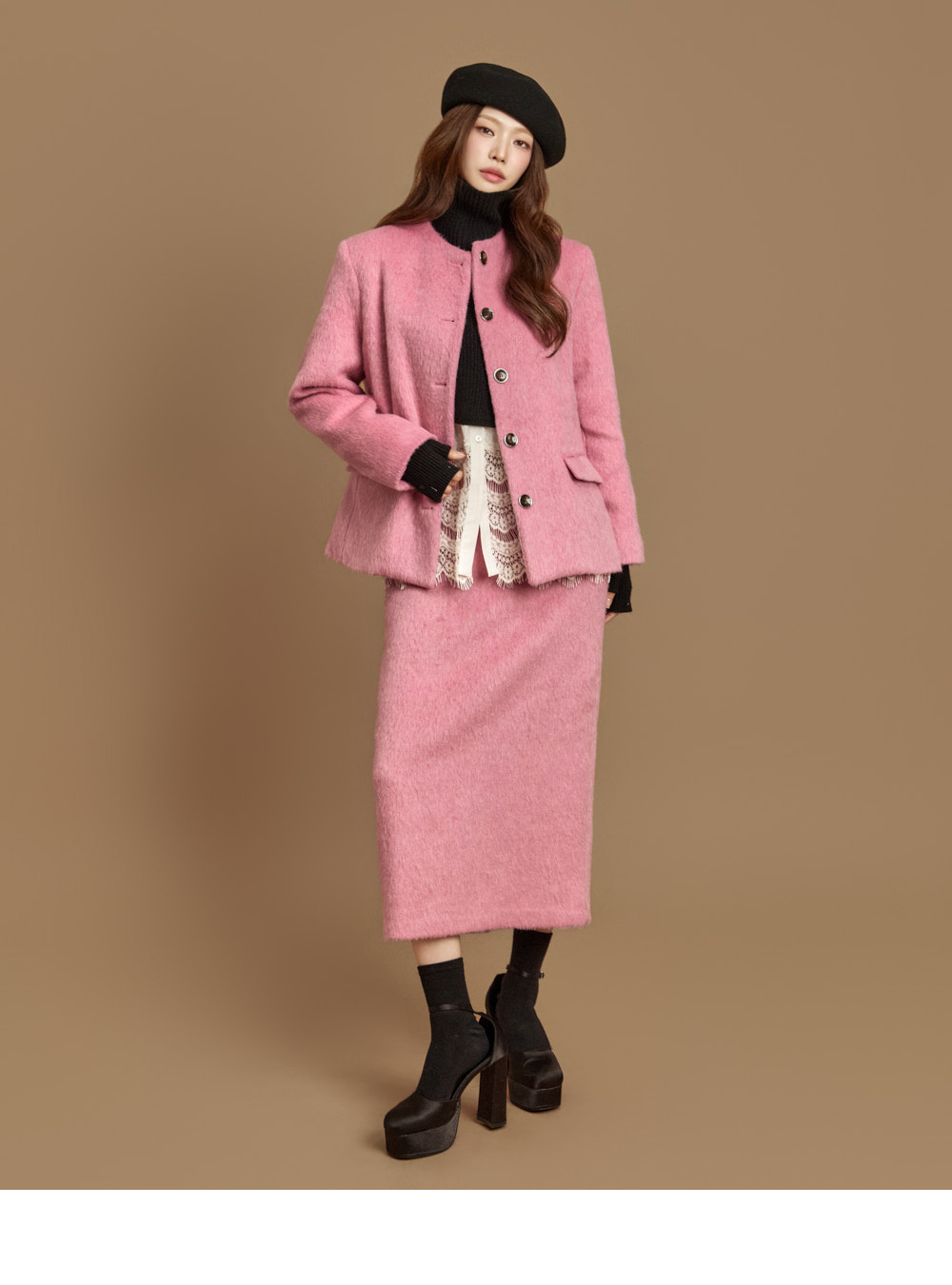 전면 버튼 여밈으로 깔끔하게 마무리되었고