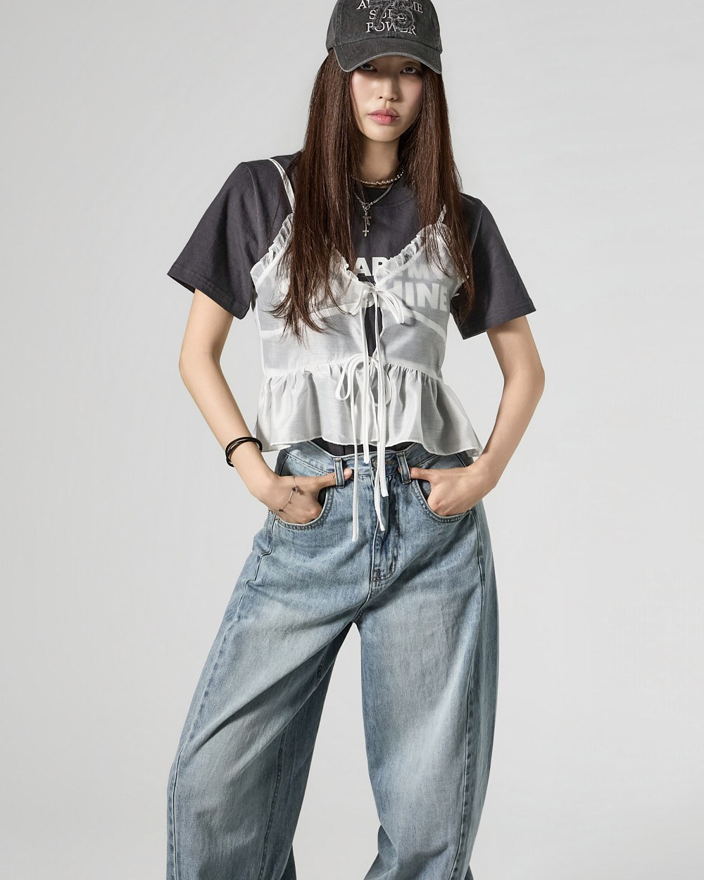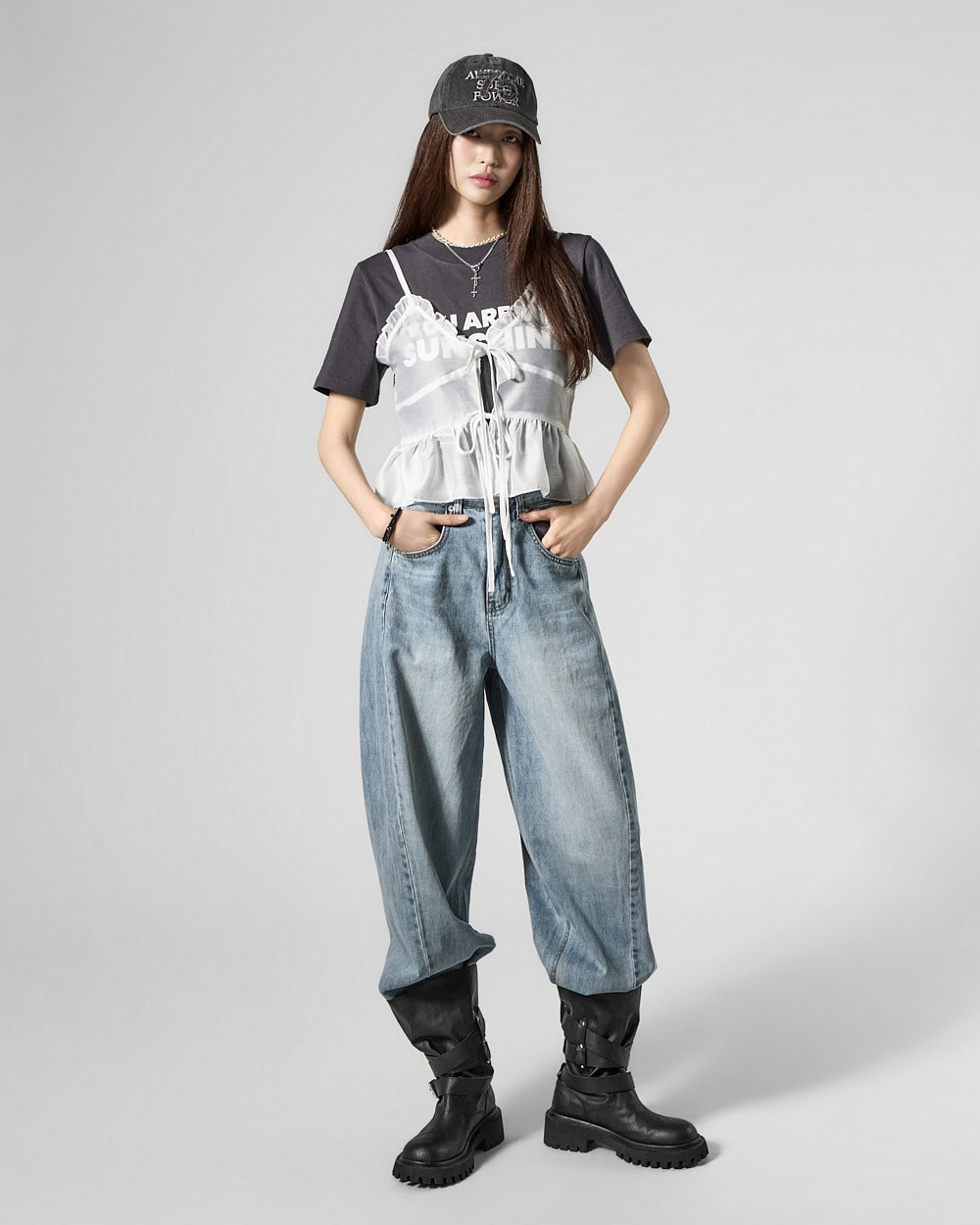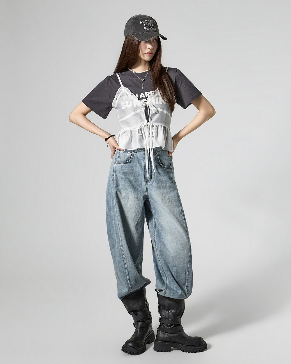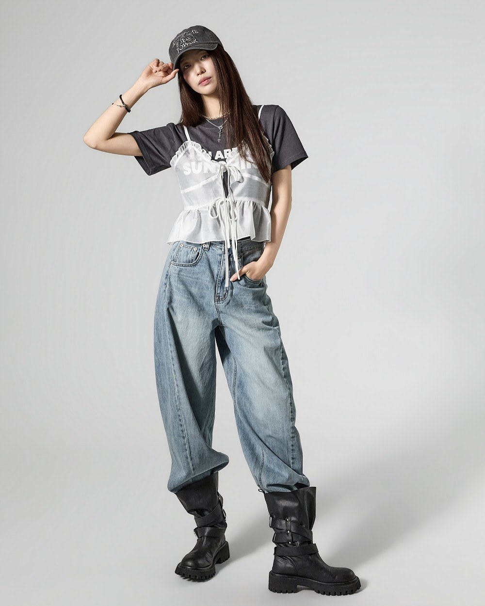 세미 벌룬 핏과 커브진 실루엣이 어우러져
