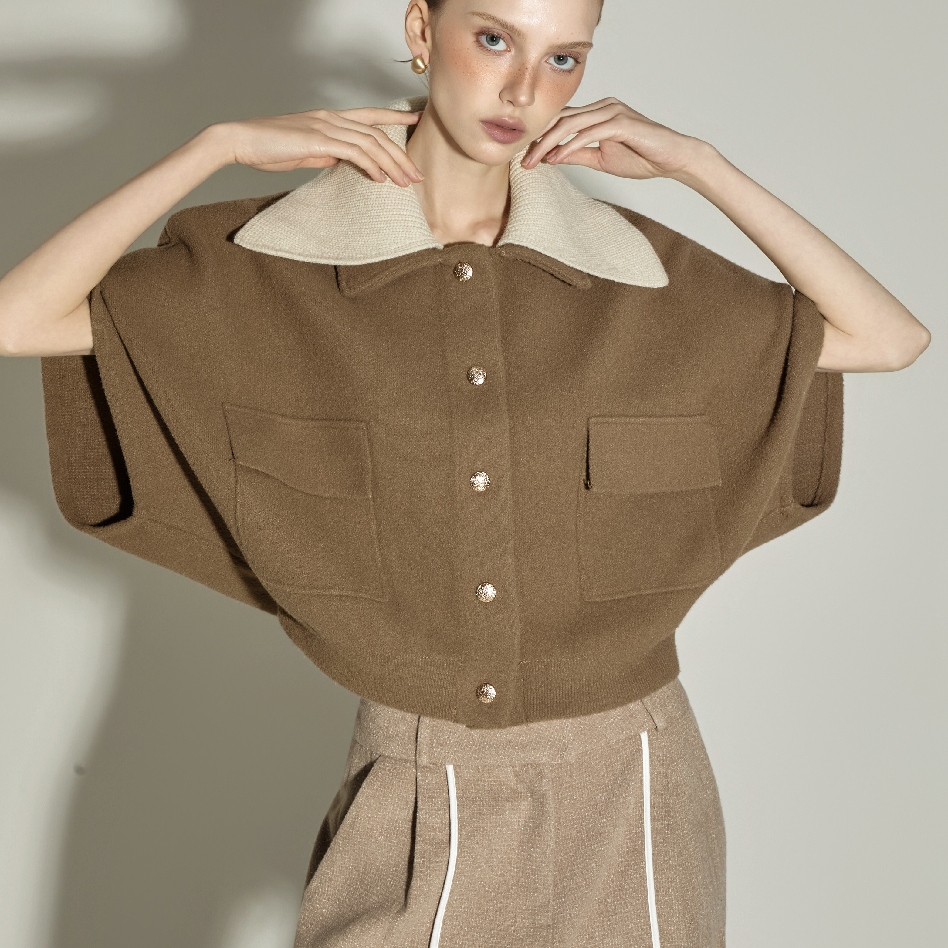 캐주얼한 무드의 니트 케이프 가디건입니다.
