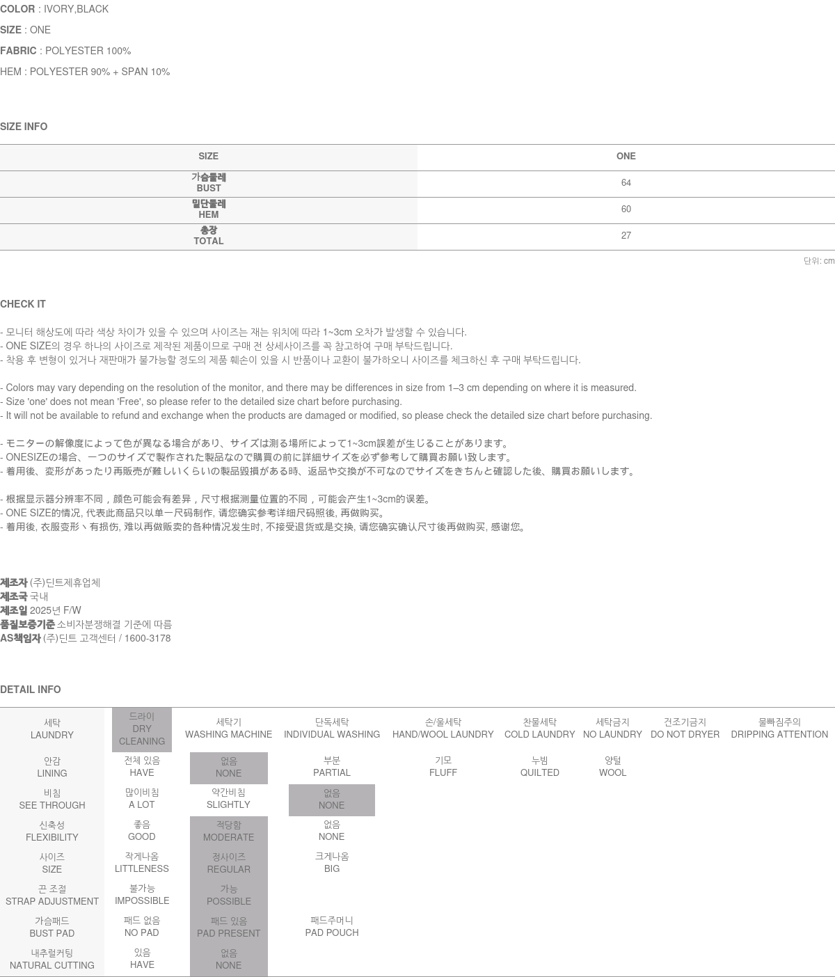 173CM 모델 ONE 사이즈, IVORY 컬러 착용하였습니다.