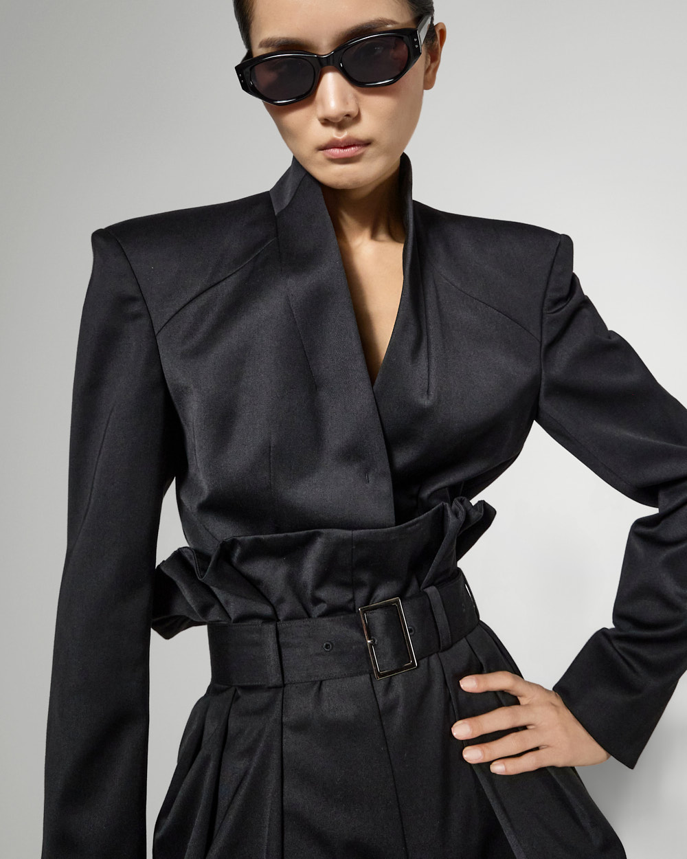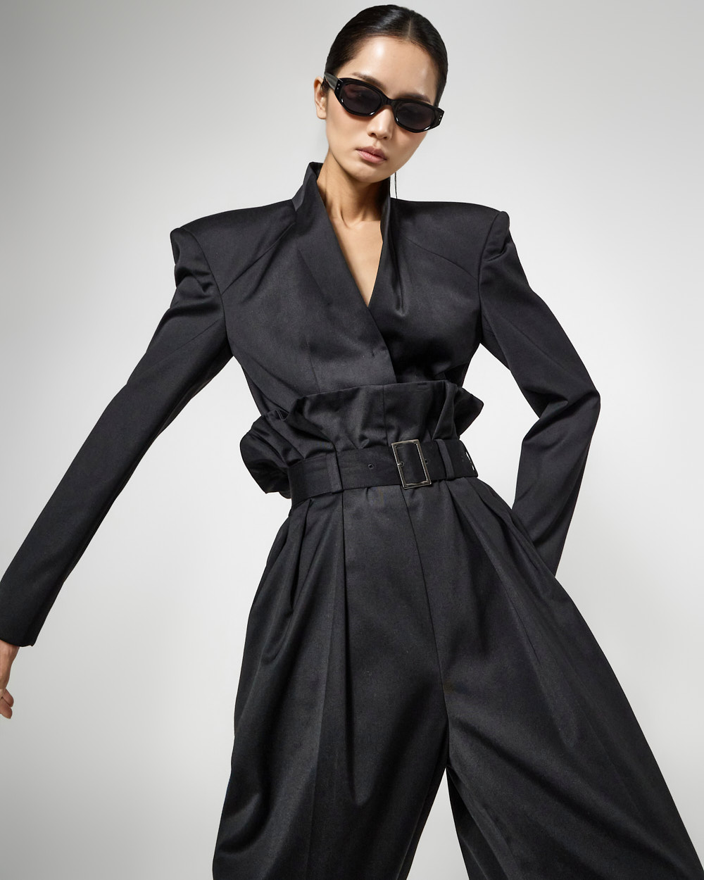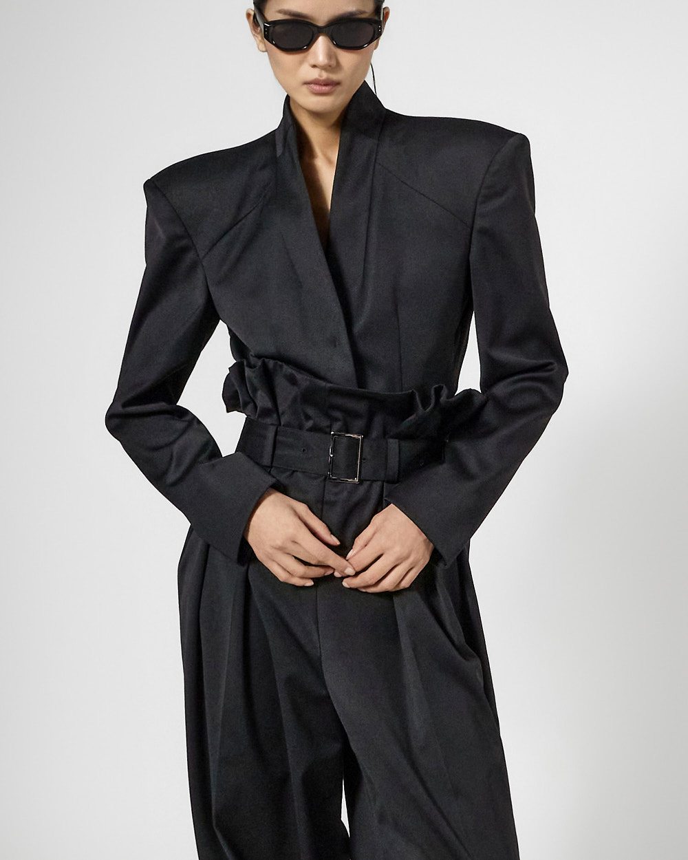 롱한 기장으로 스타일리시한 무드를 자아내 줍니다.