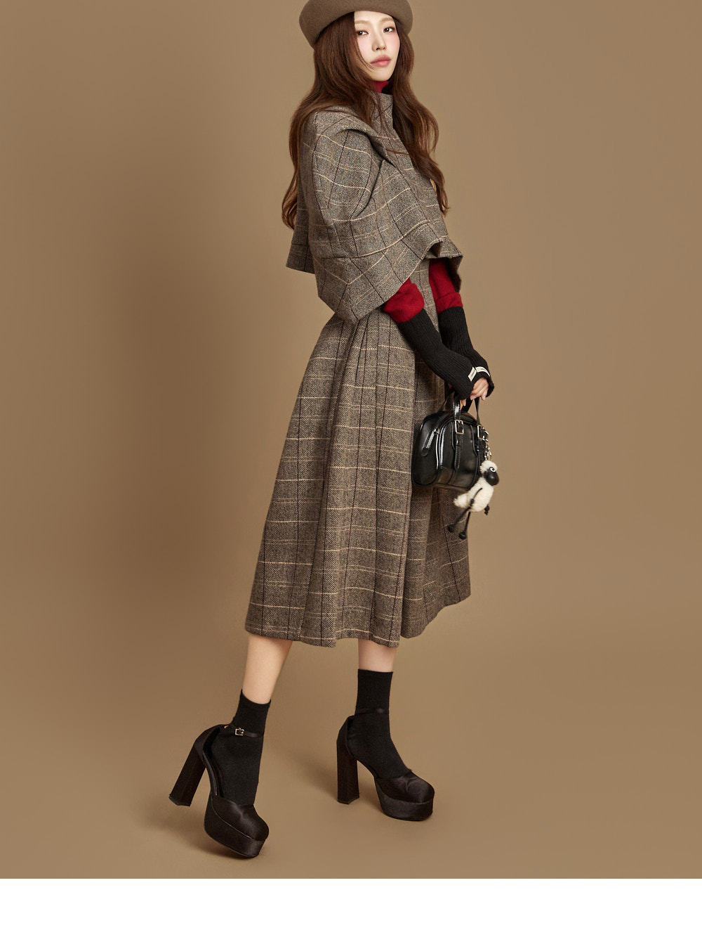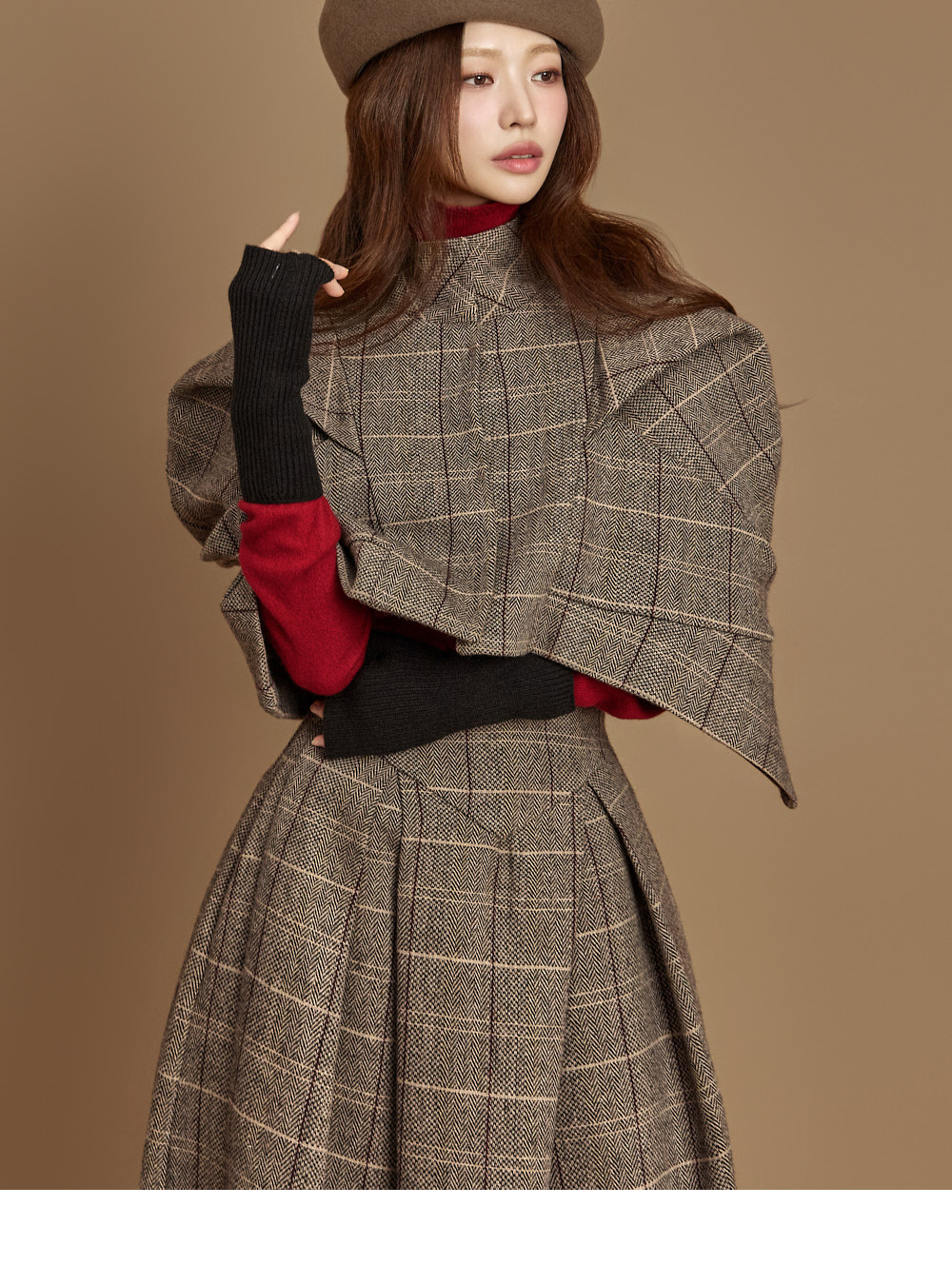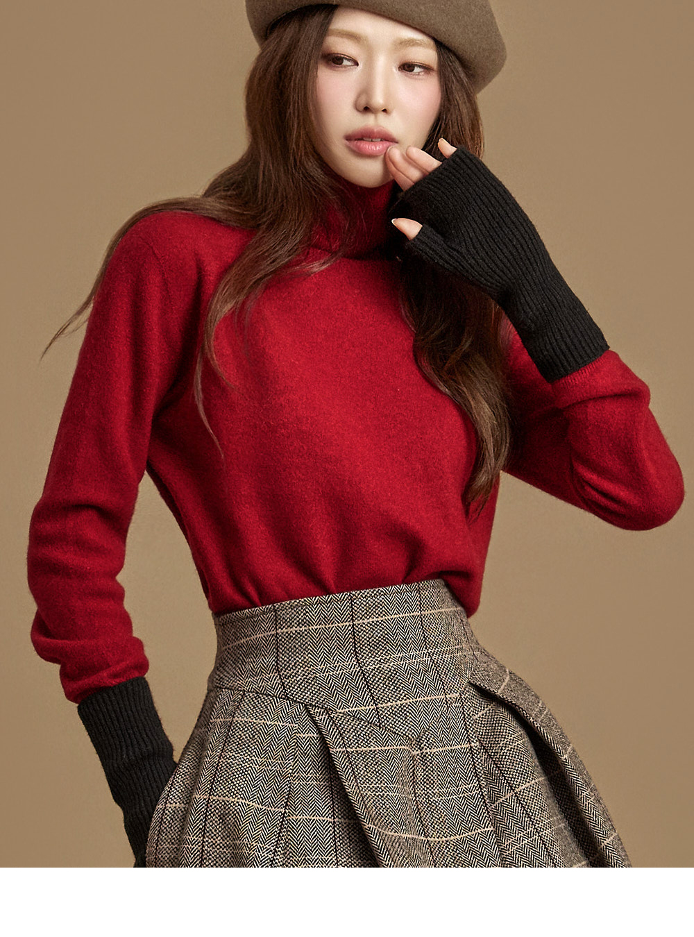 넥이 올라오는 니트 디자인으로 단독으로는 물론,
