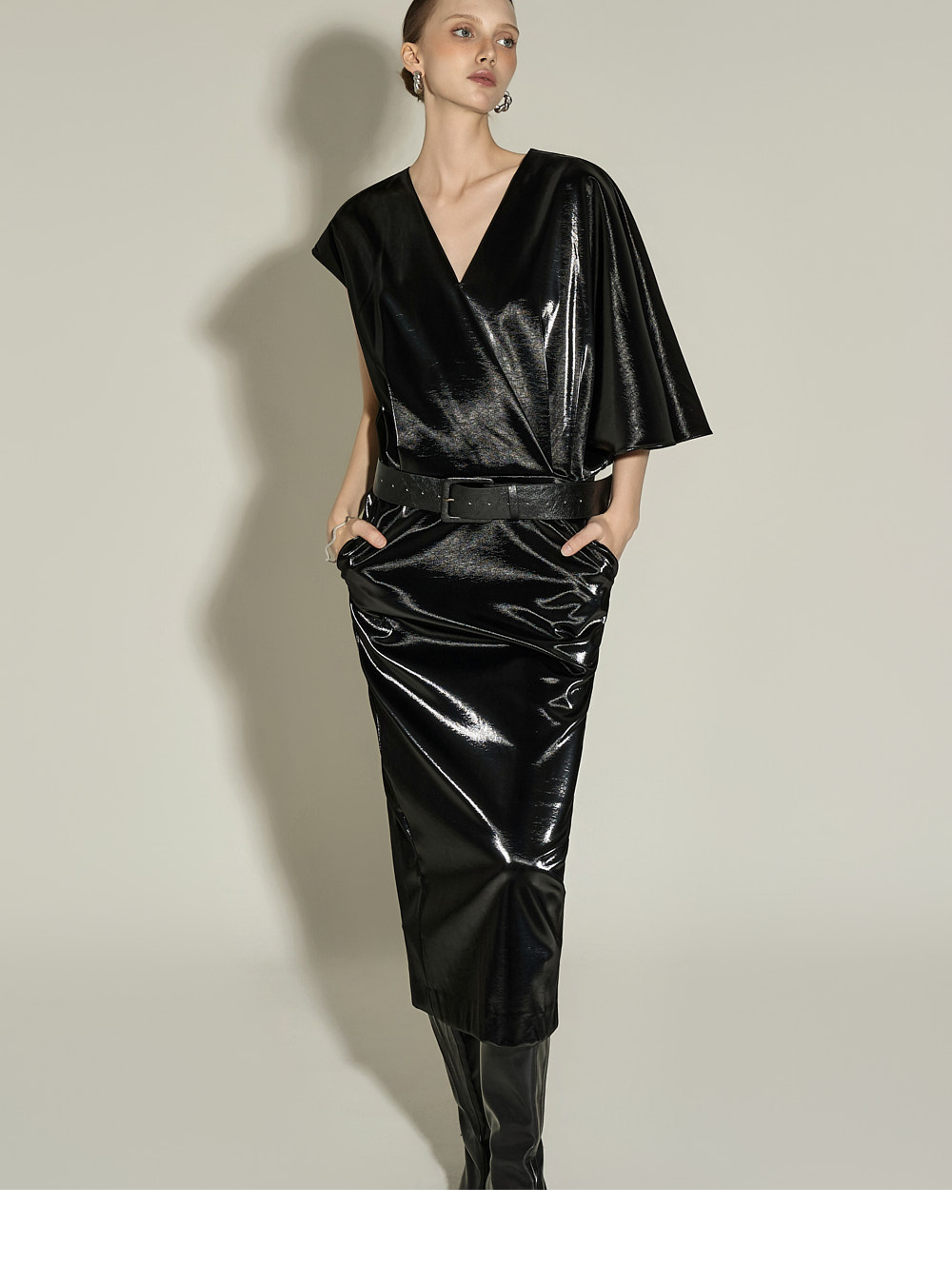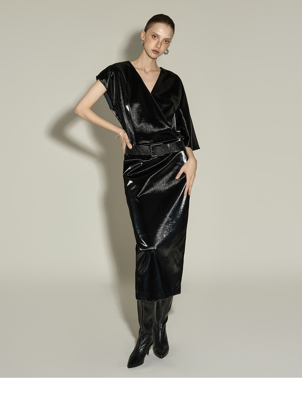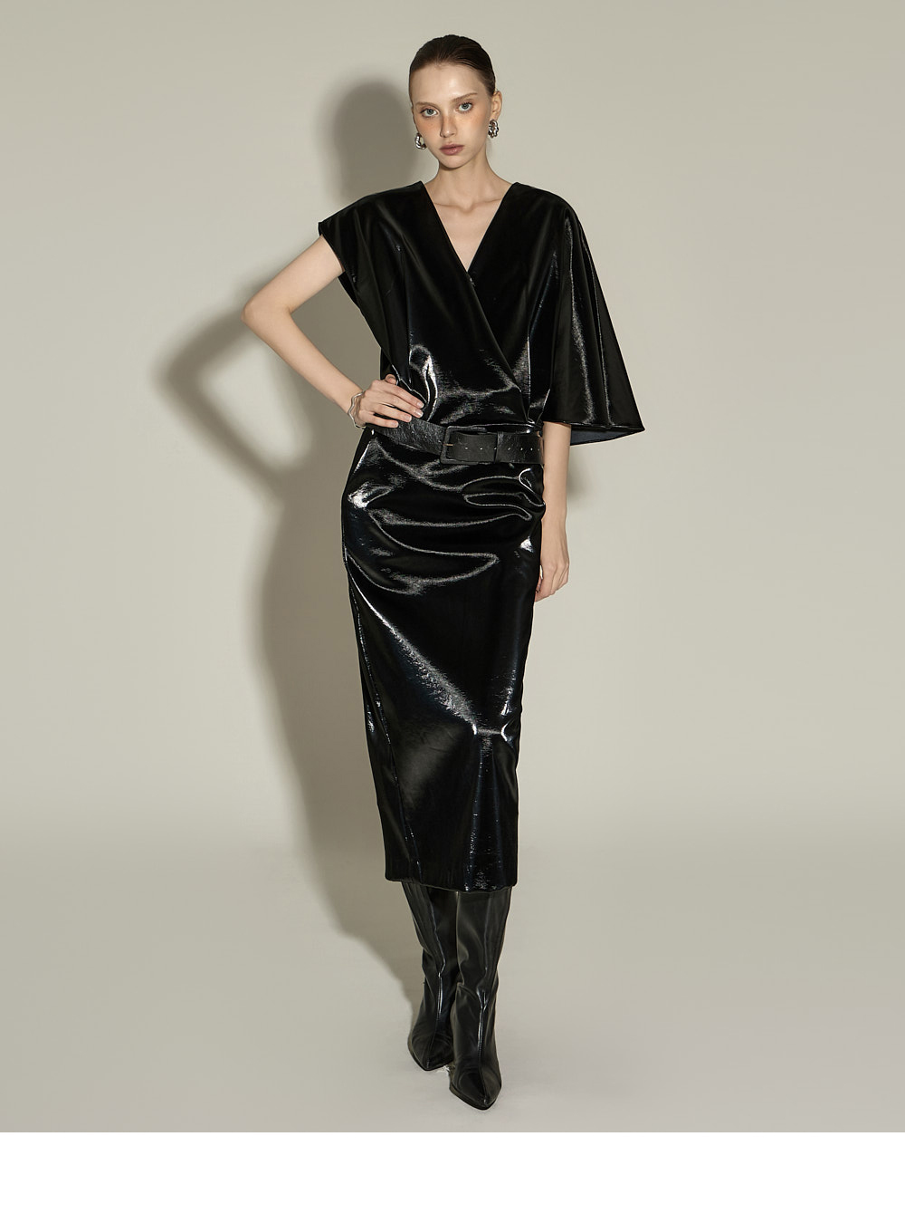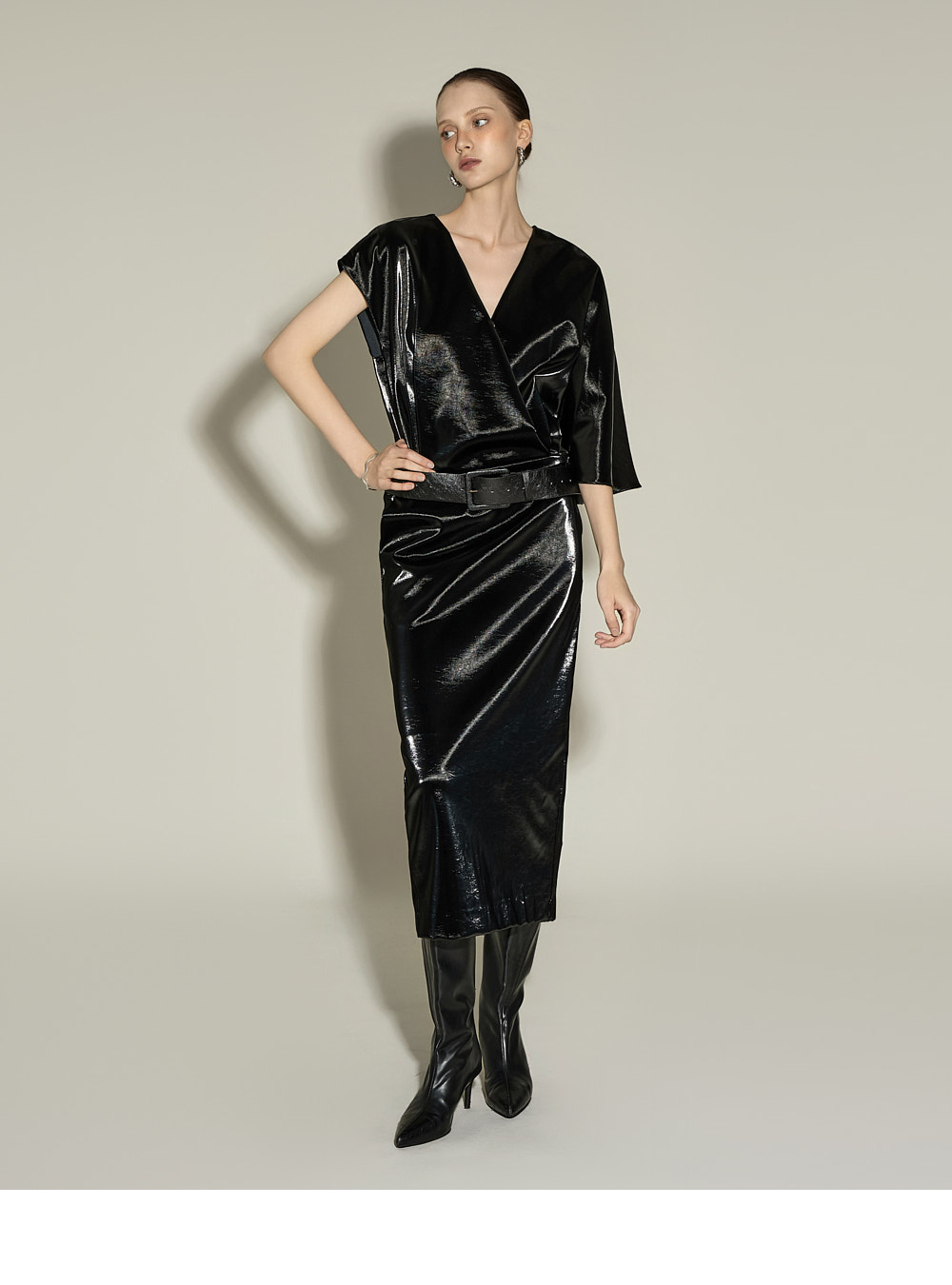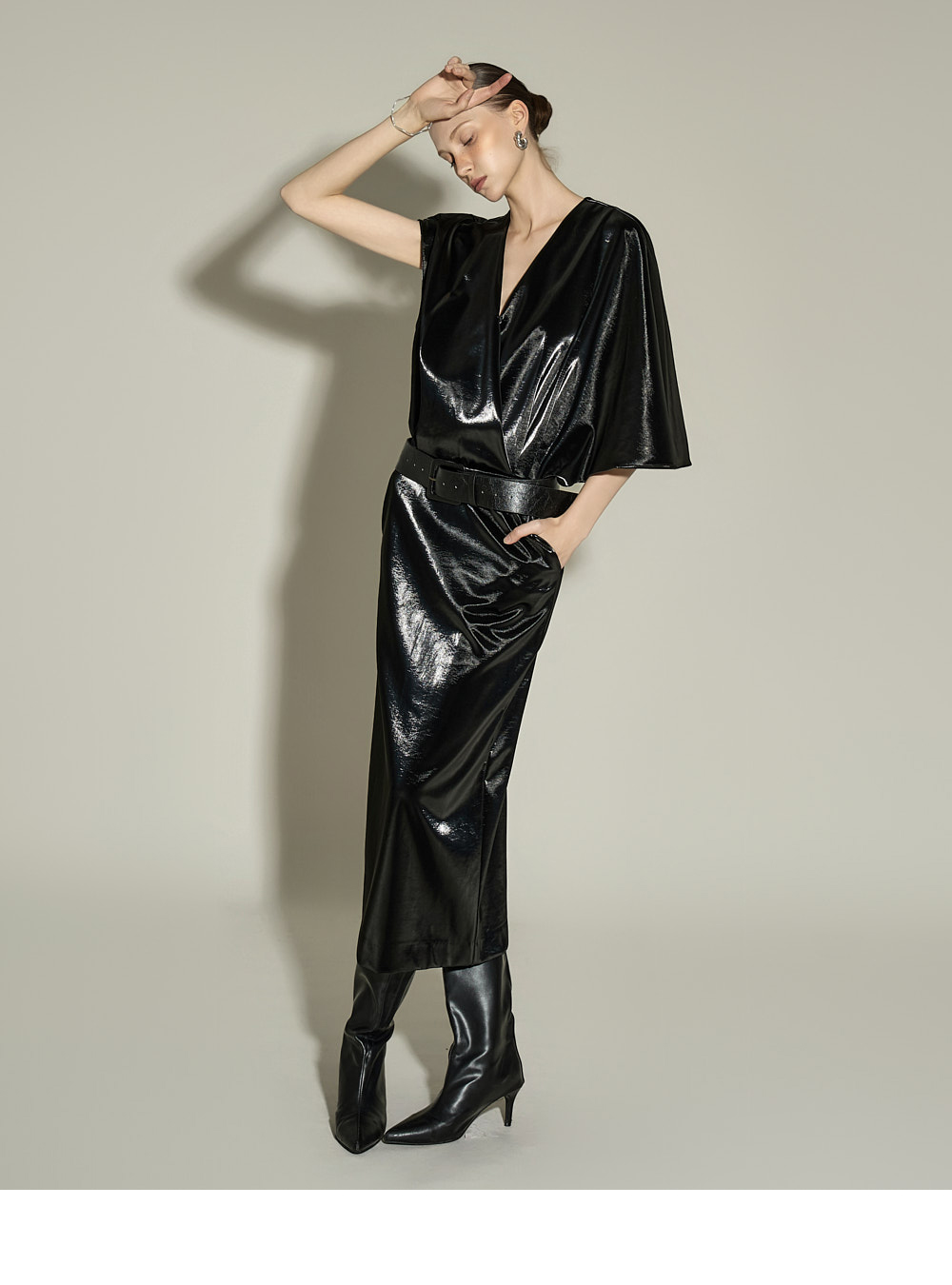 캐주얼하면서도 유니크한 무드의 벨트 세트 레더 랩 원피스입니다.