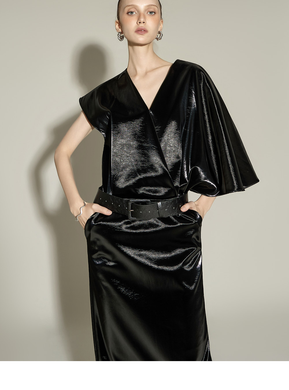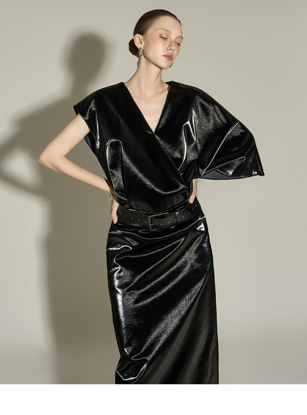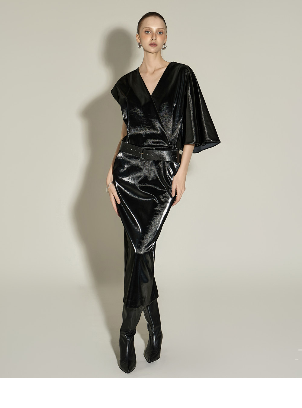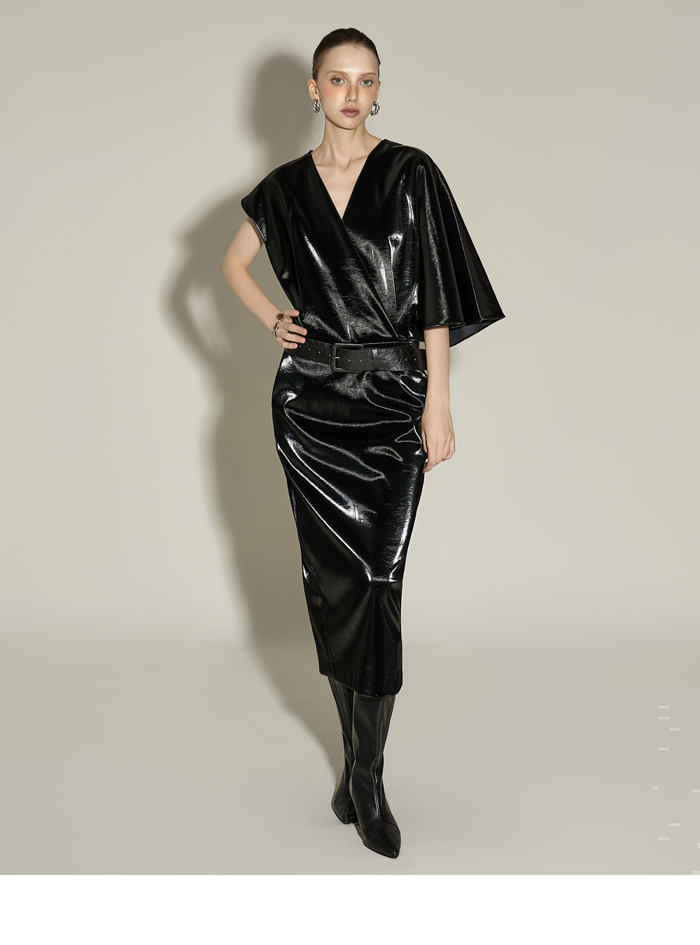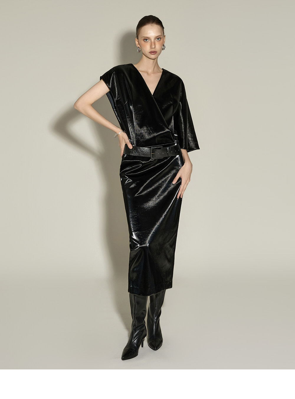 캐주얼하면서도 유니크한 무드의 벨트 세트 레더 랩 원피스입니다.