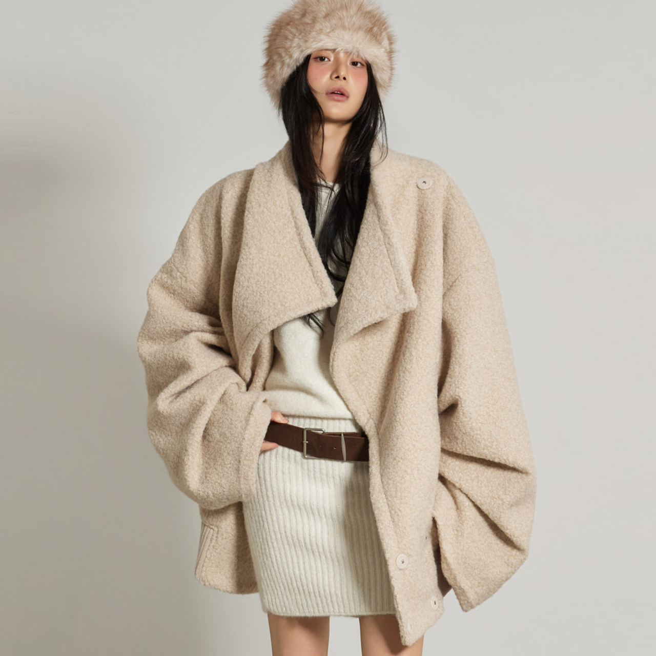 173CM 모델 ONE 사이즈, LIGHT BEIGE 컬러 착용하였습니다.