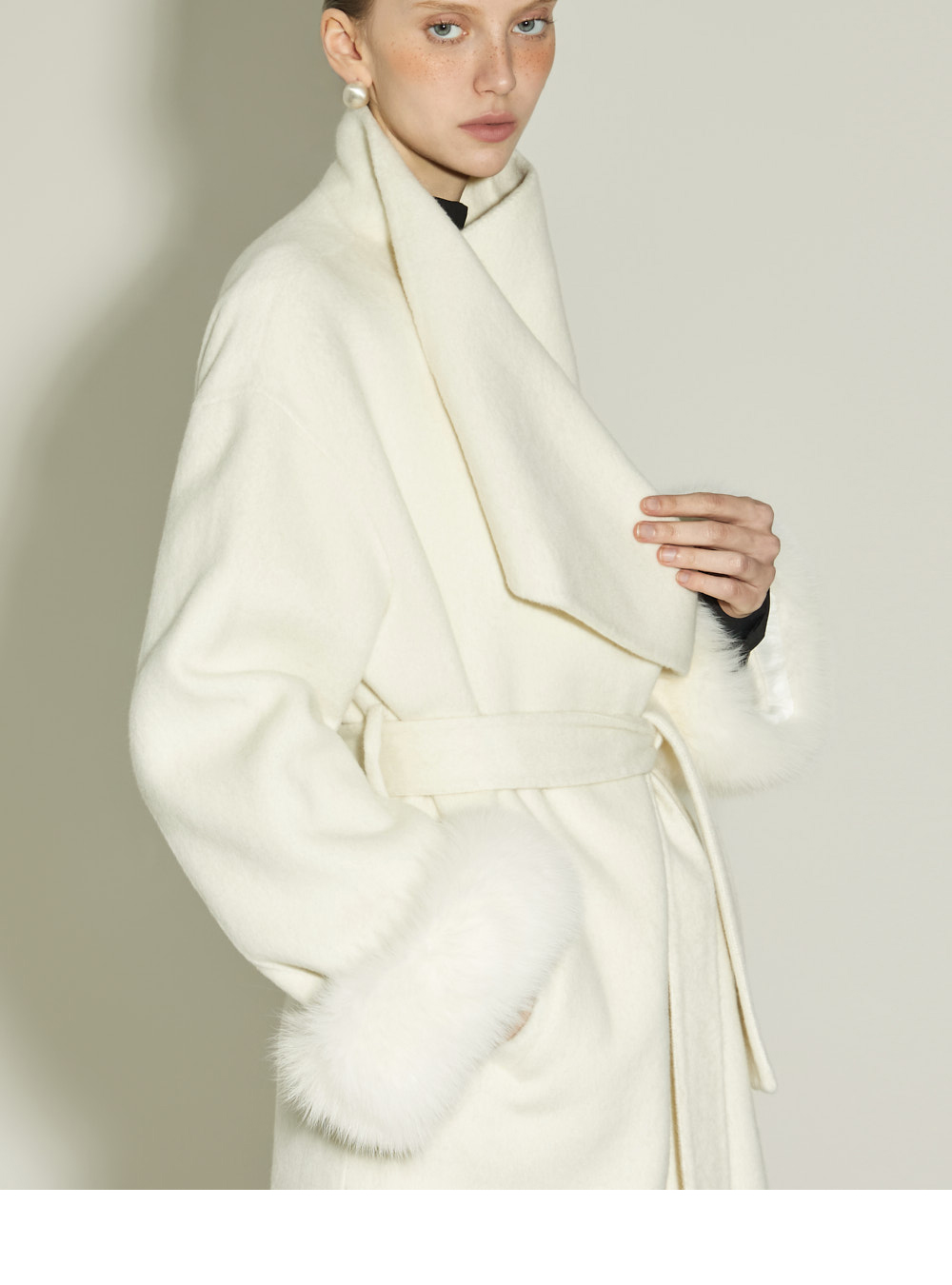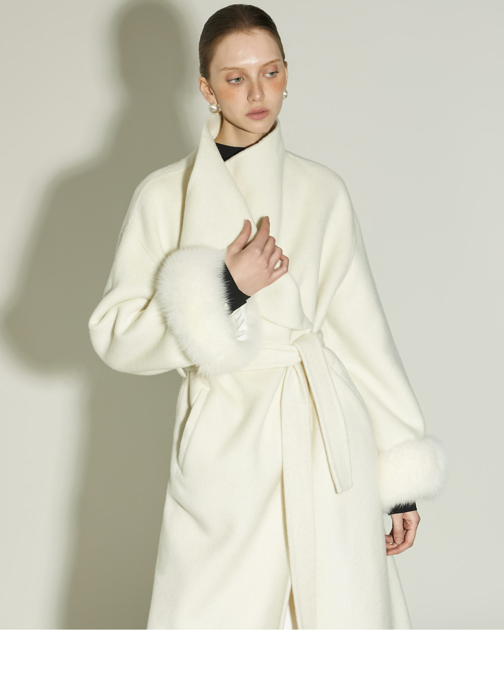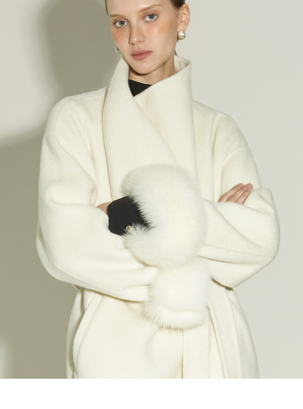 소매의 퍼 디테일은 단추로 탈착이 가능해