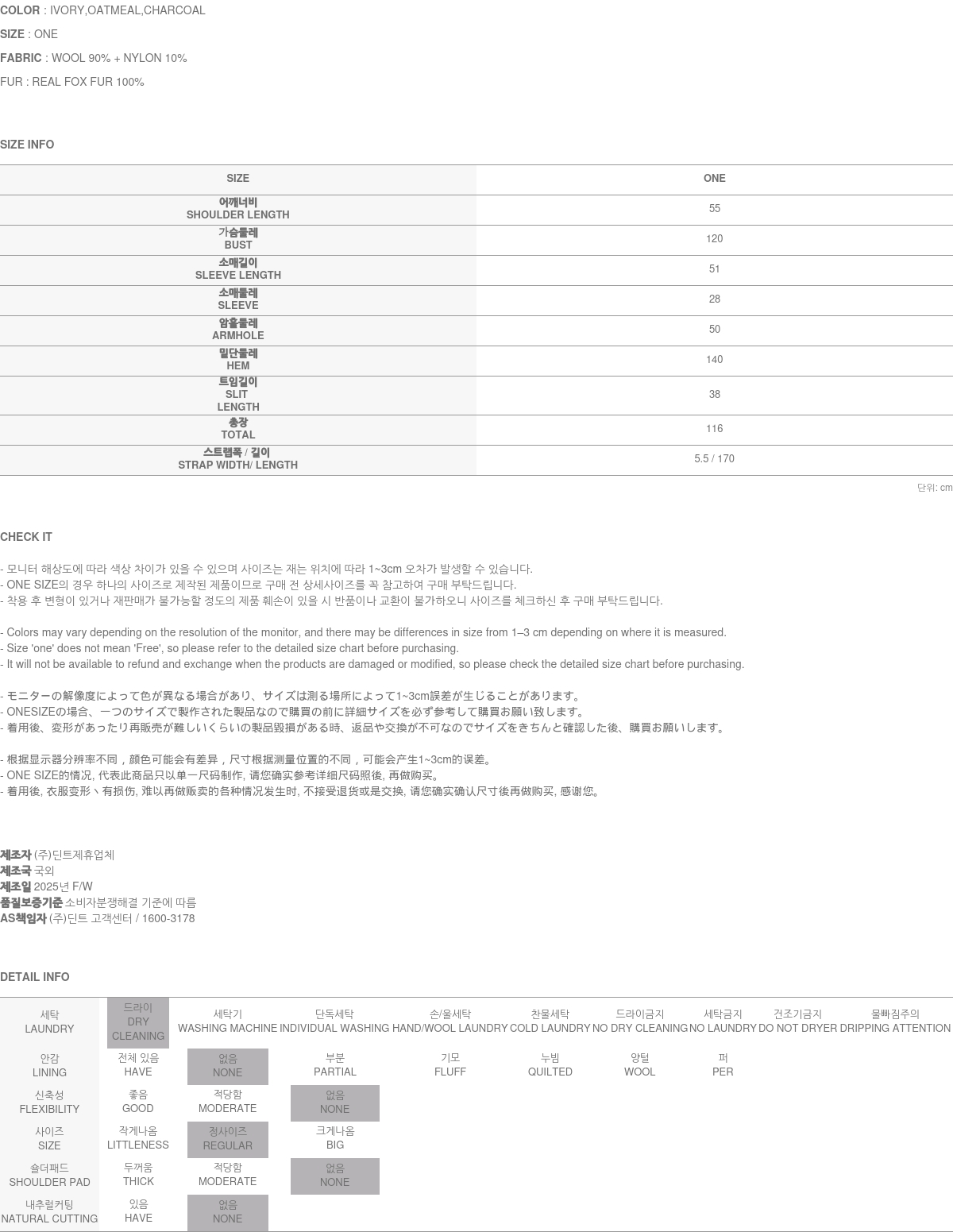 174CM 모델 ONE 사이즈, IVORY 컬러 착용하였습니다.