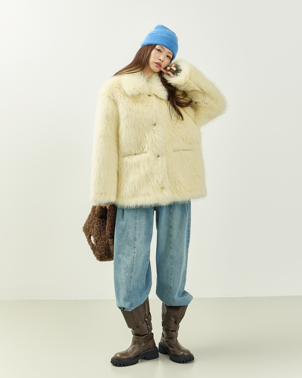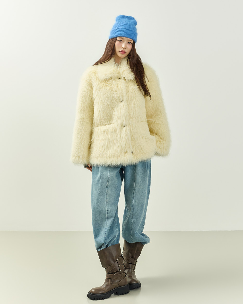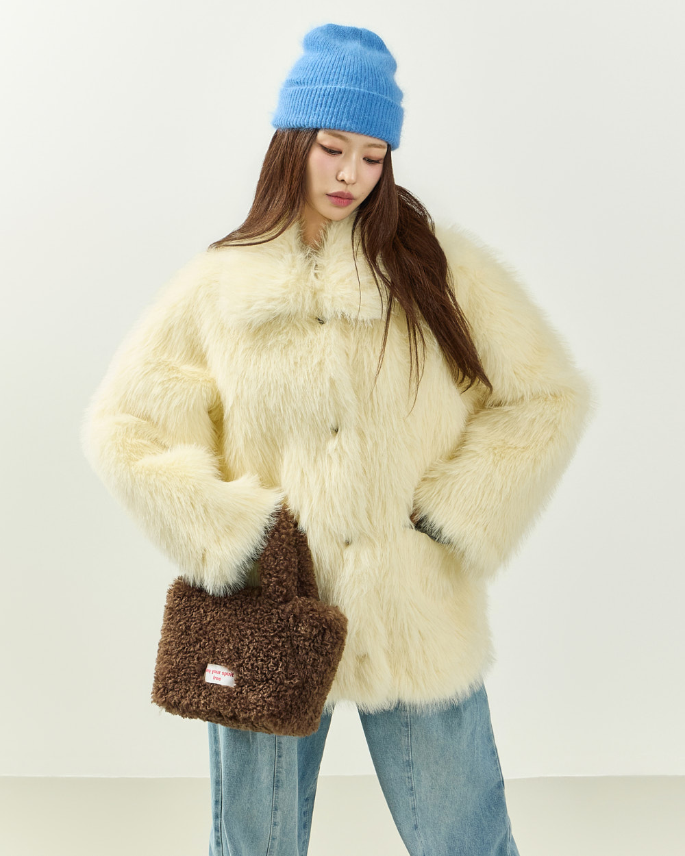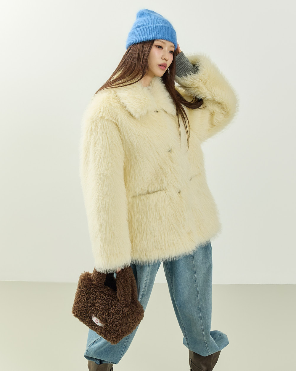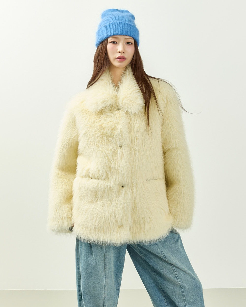 로맨틱 페미닌 무드의 헤어리 퍼 자켓입니다.