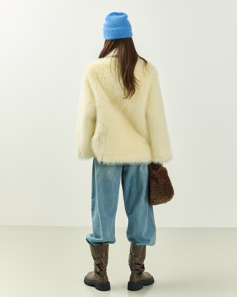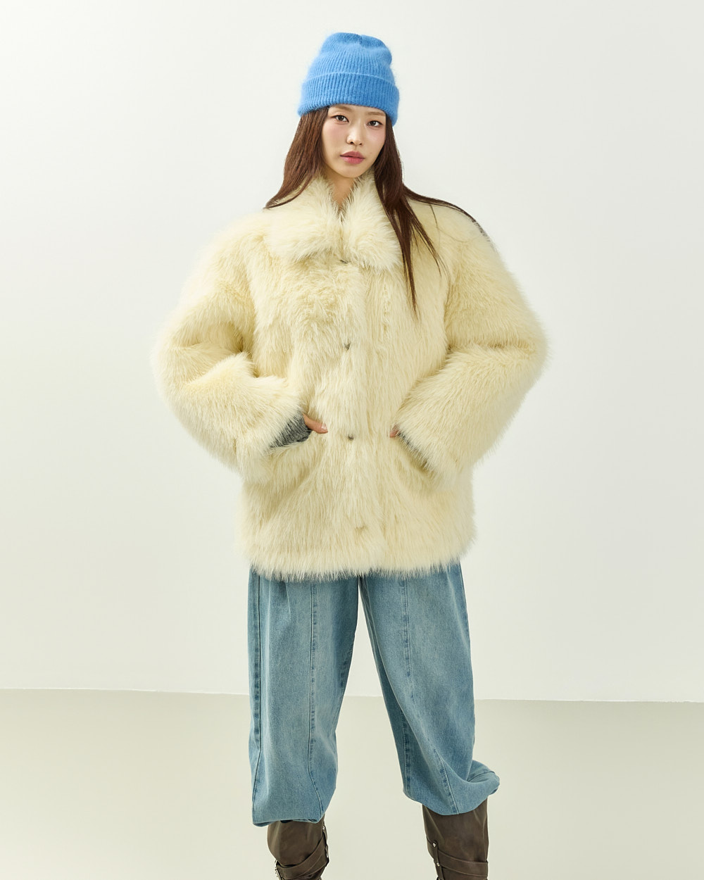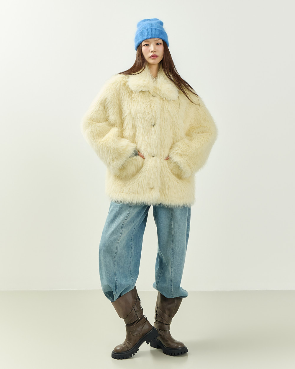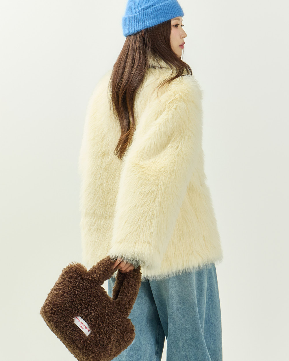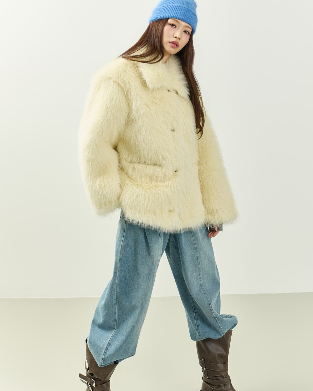로맨틱 페미닌 무드의 헤어리 퍼 자켓입니다.