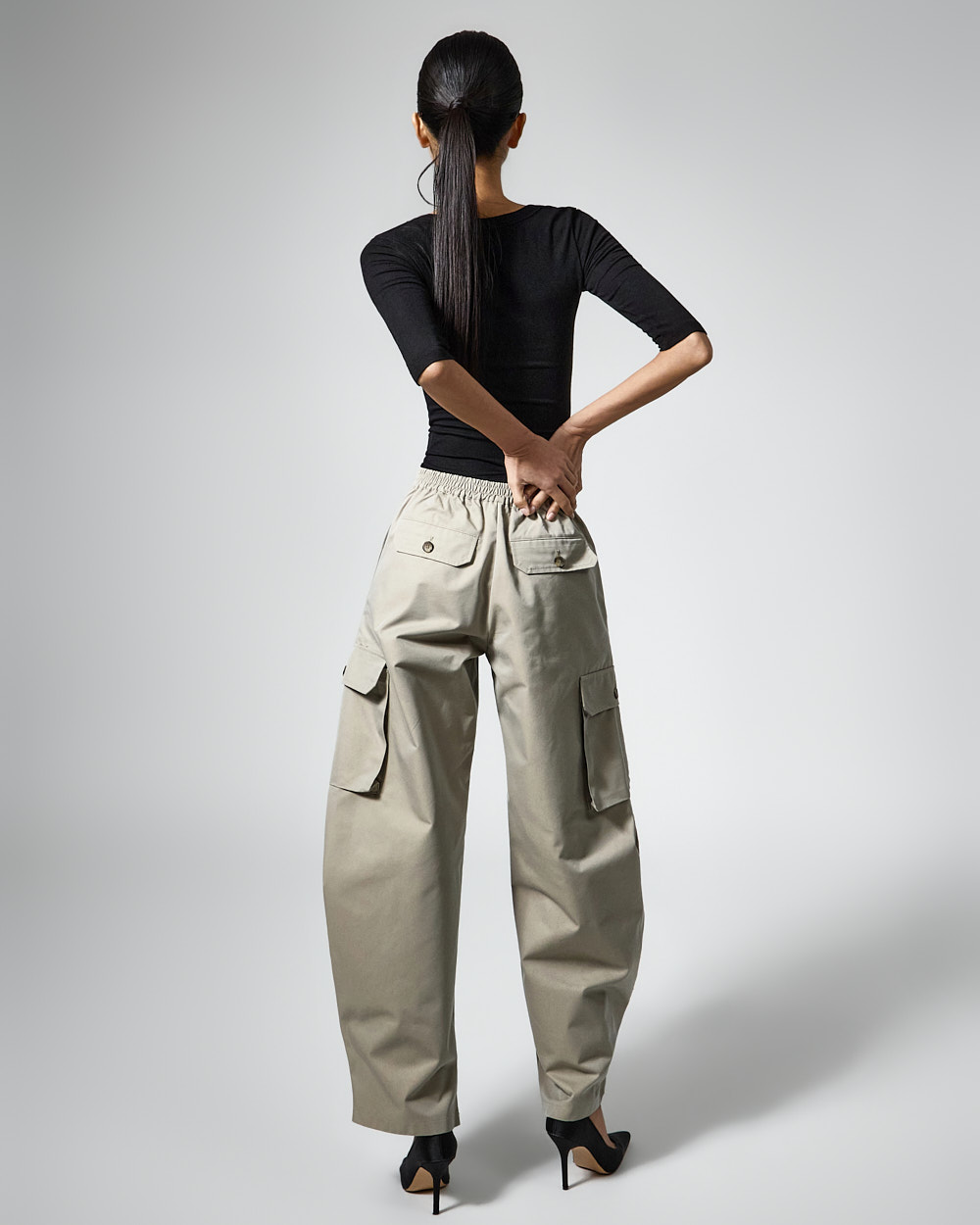 카고 포켓과 백 밴딩으로 실용성과 편안함을 갖추었습니다.