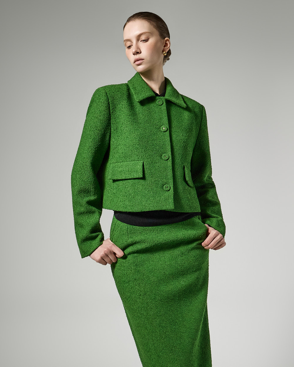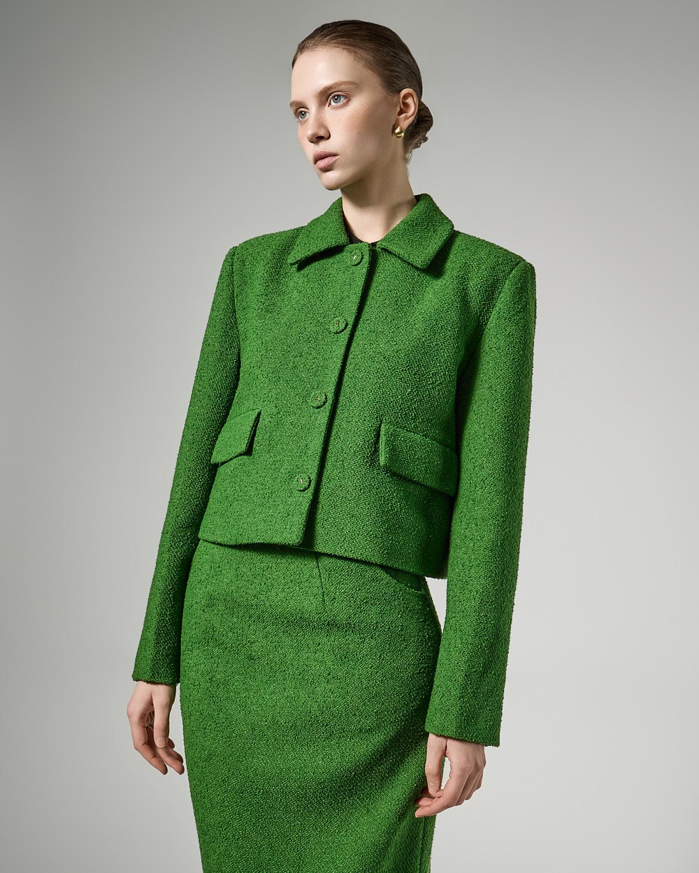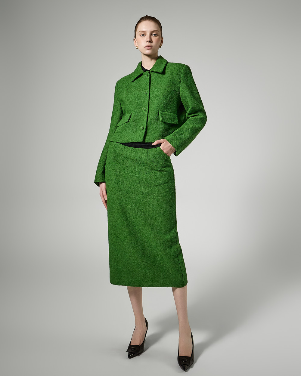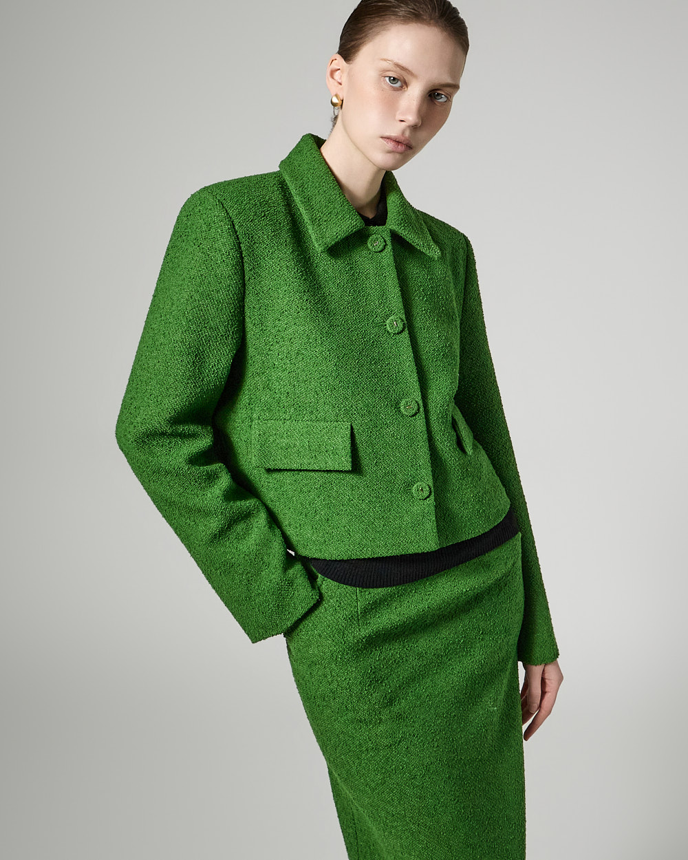 트위드 특유의 고급스러운 조직감이 느껴지며,