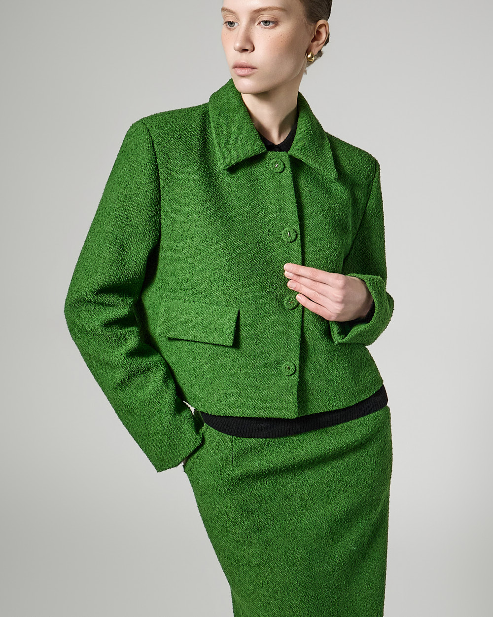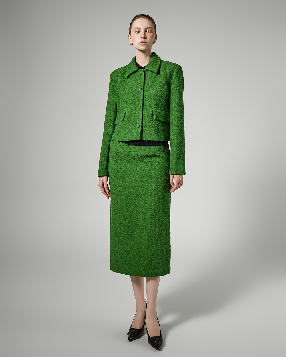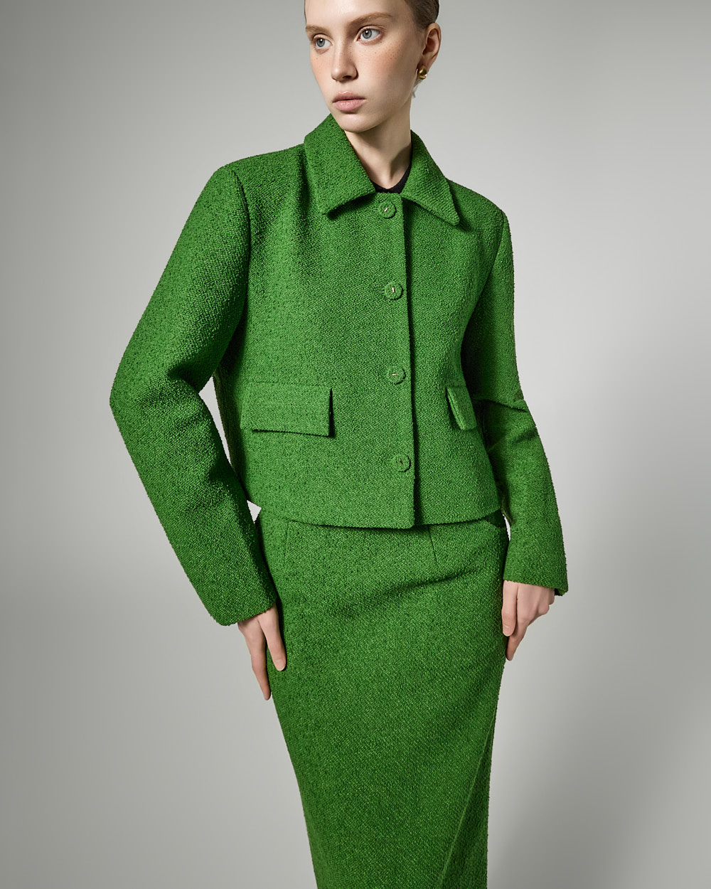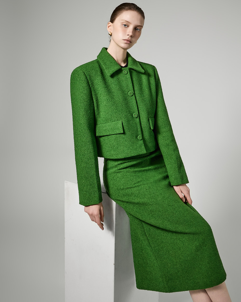 트위드 특유의 고급스러운 조직감이 느껴지며,