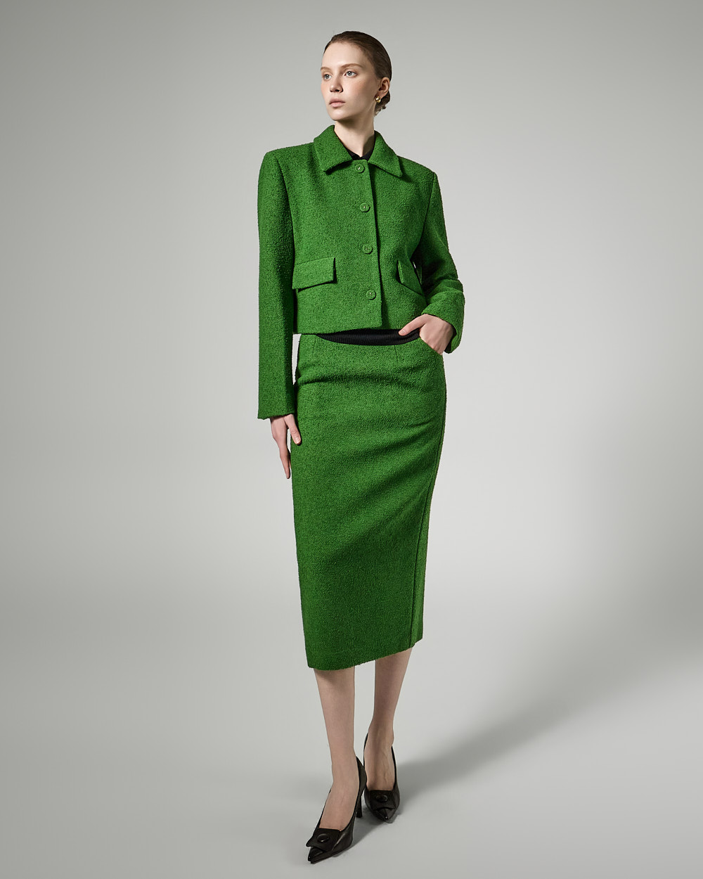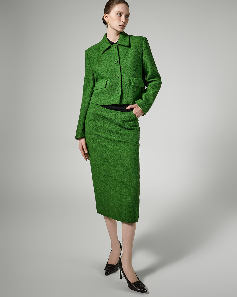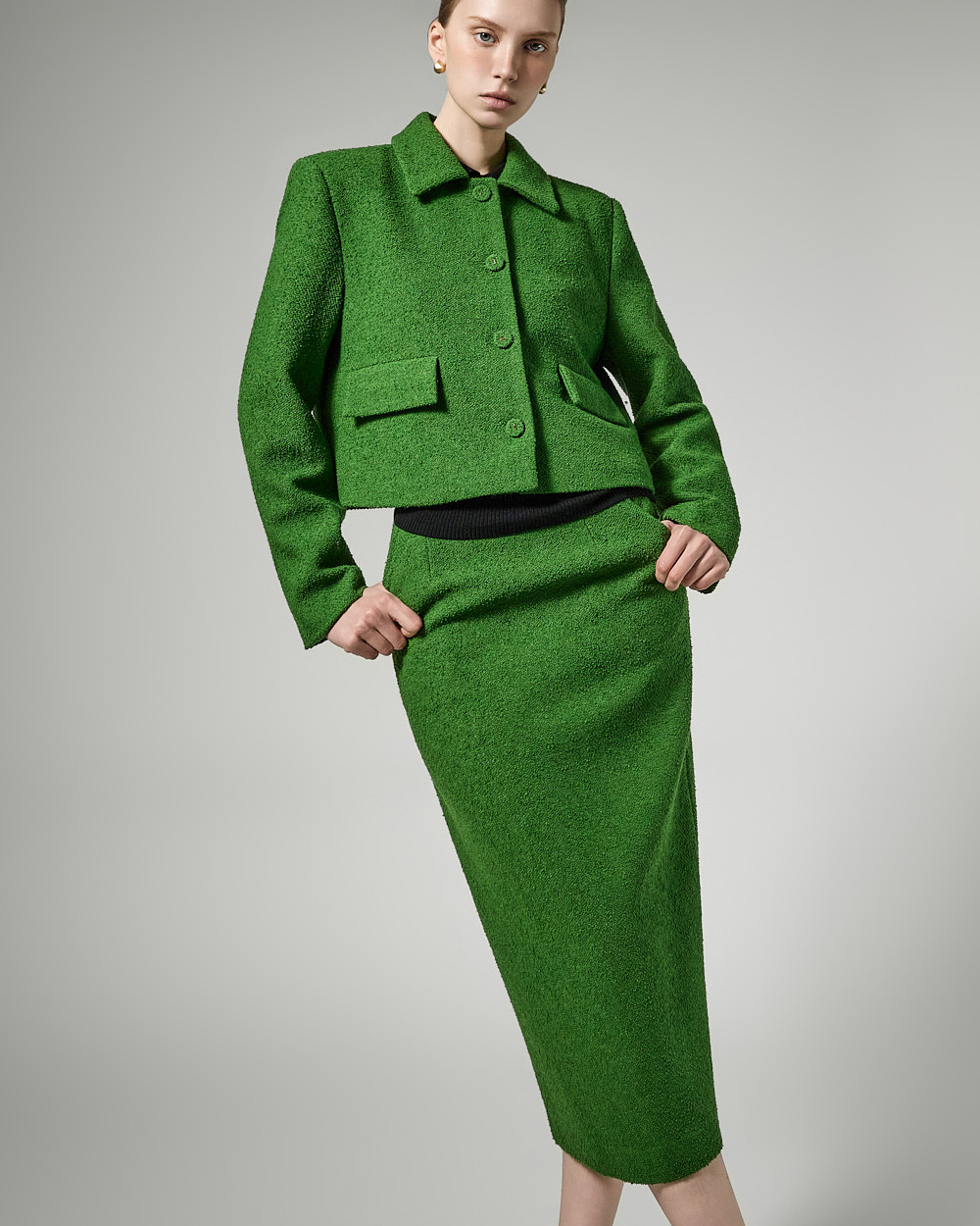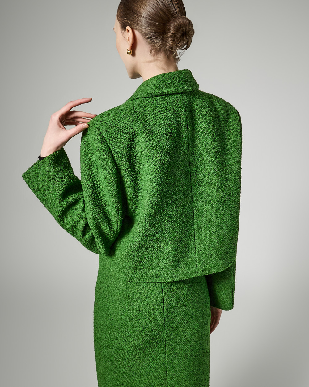 트위드 특유의 고급스러운 조직감이 느껴지며,