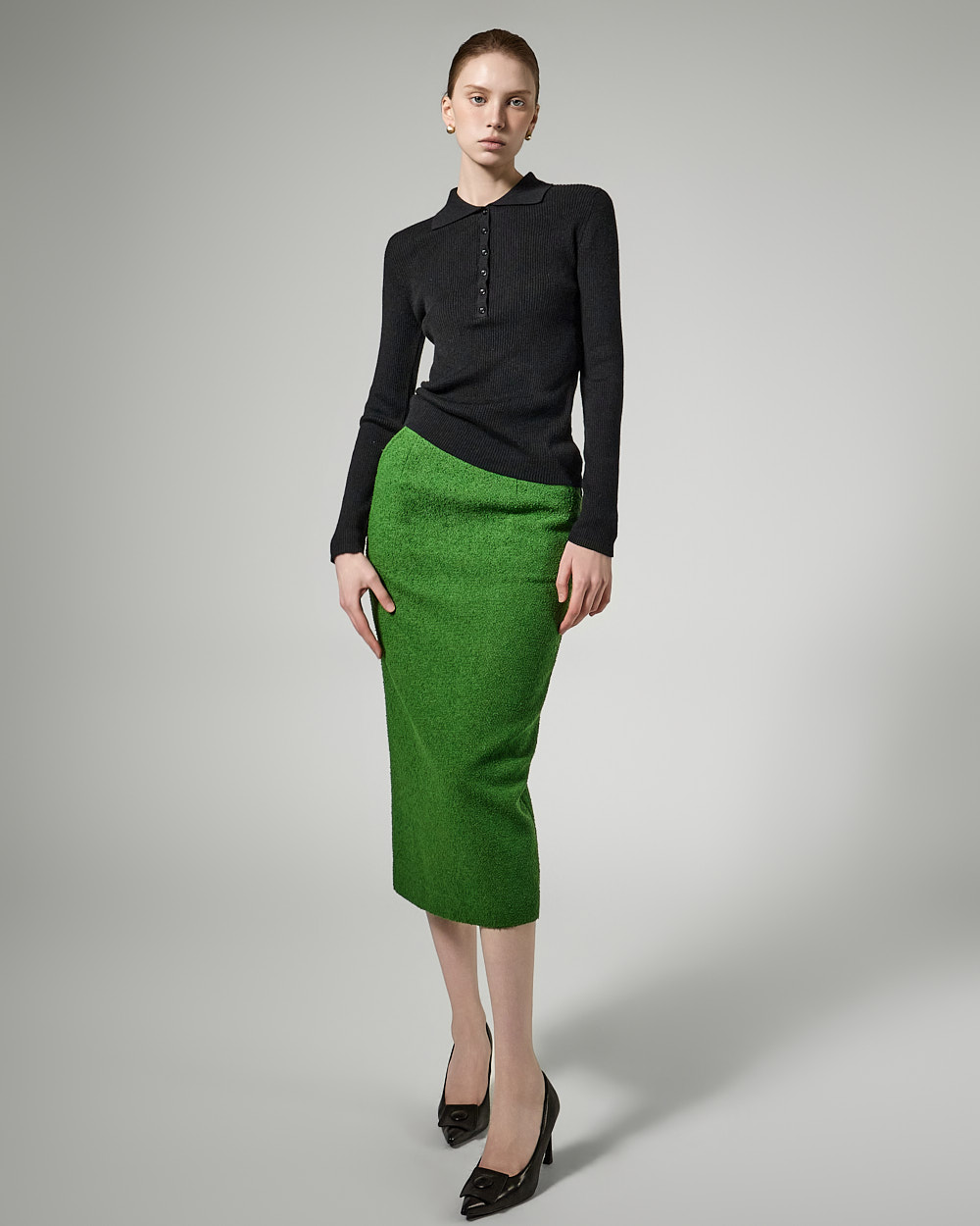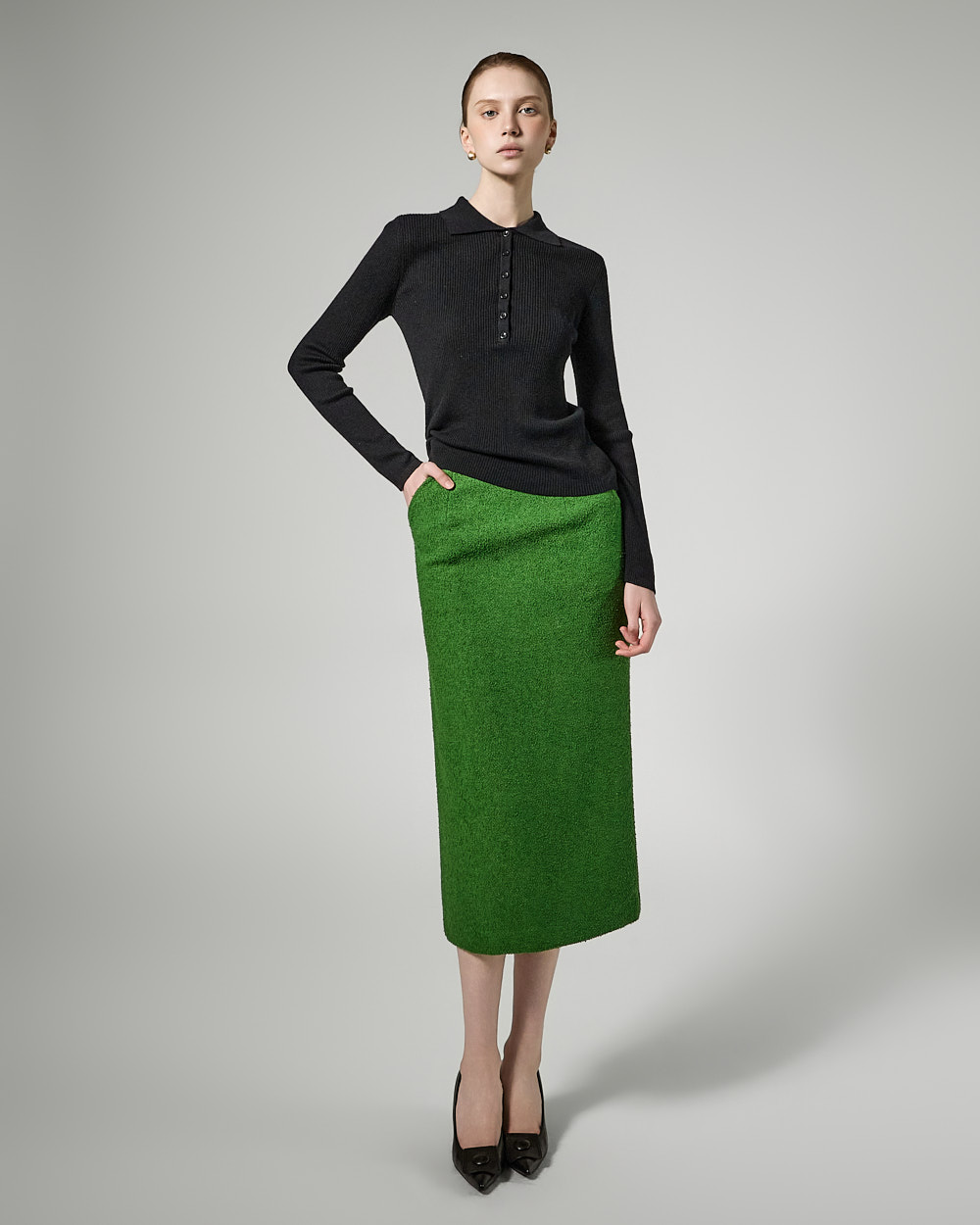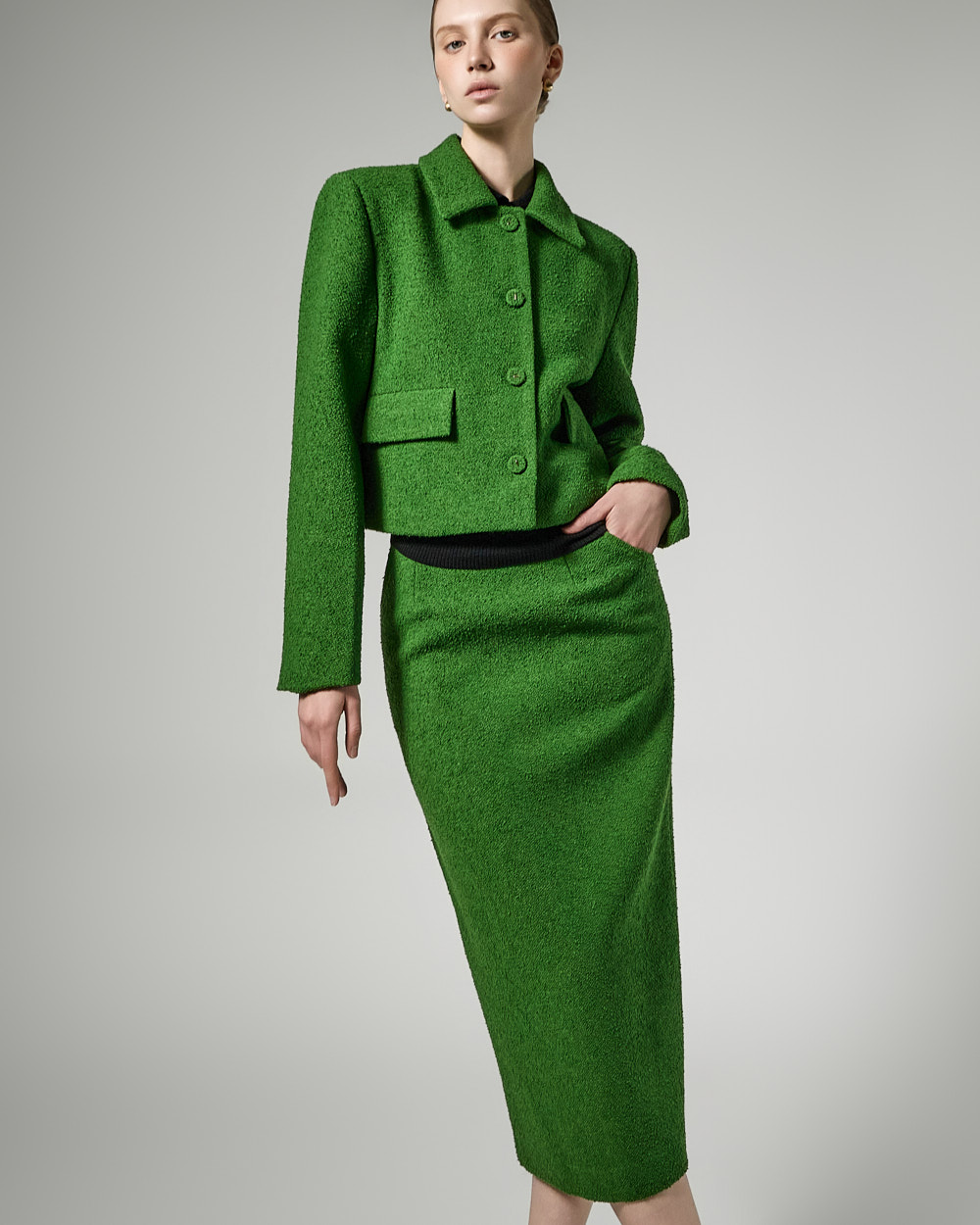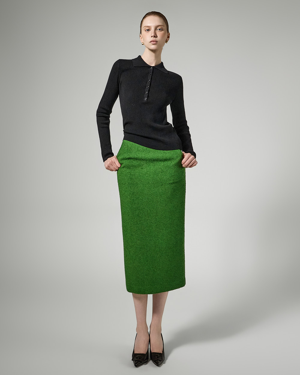 트위드 특유의 고급스러운 조직감이 느껴지며,