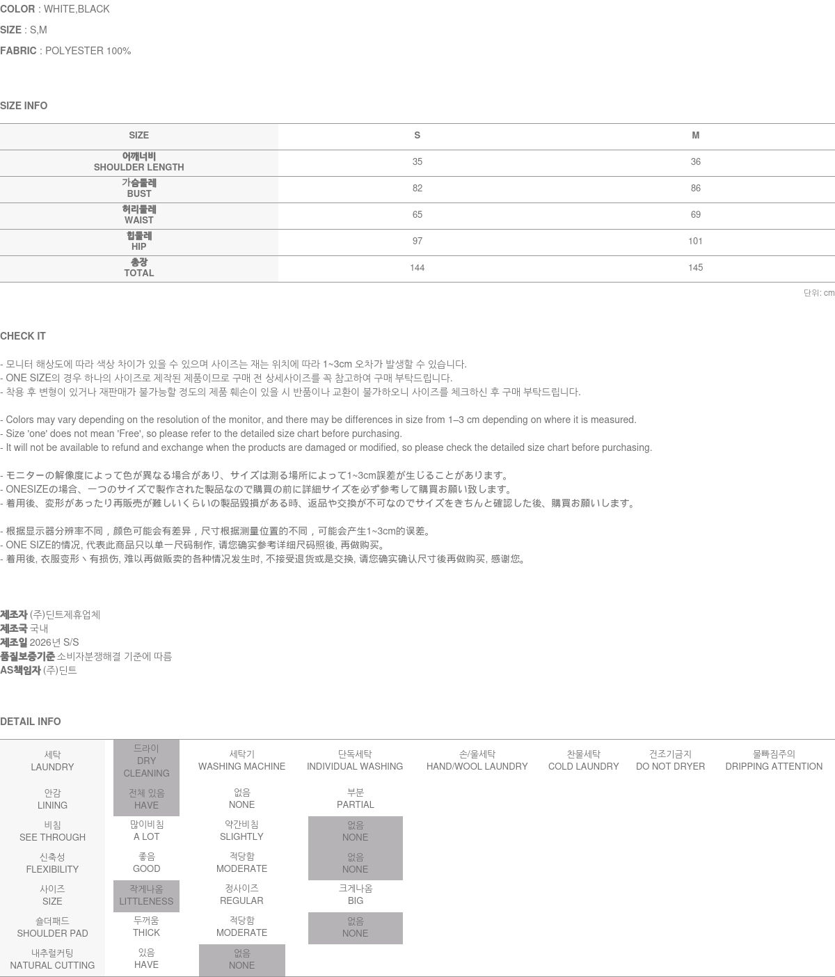 정확한 사이즈는 반드시 구매 전 상세 사이즈를 확인해 주시기 바랍니다.