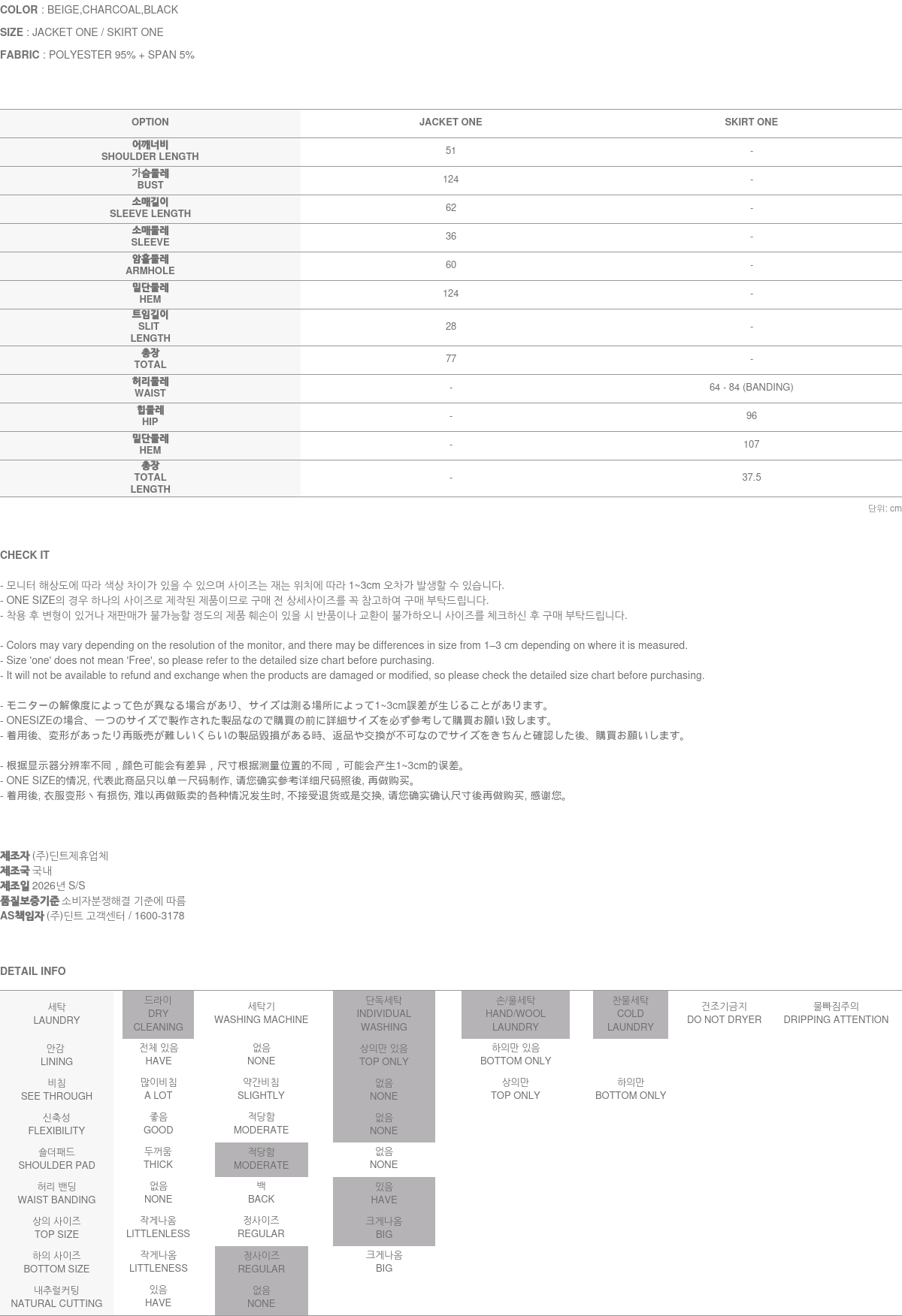 171CM 모델 자켓 ONE / 스커트 ONE 사이즈,