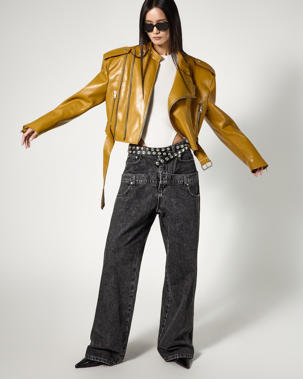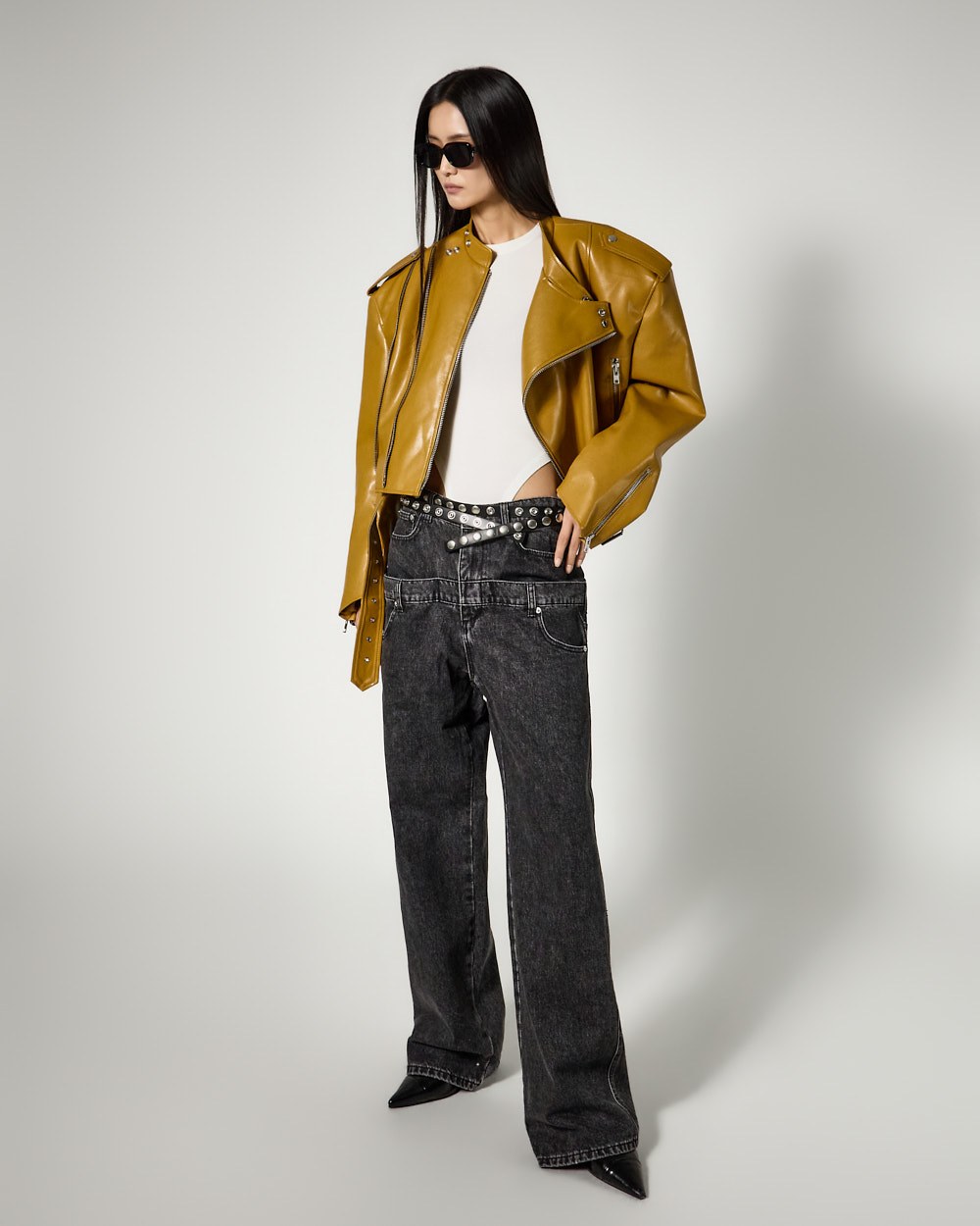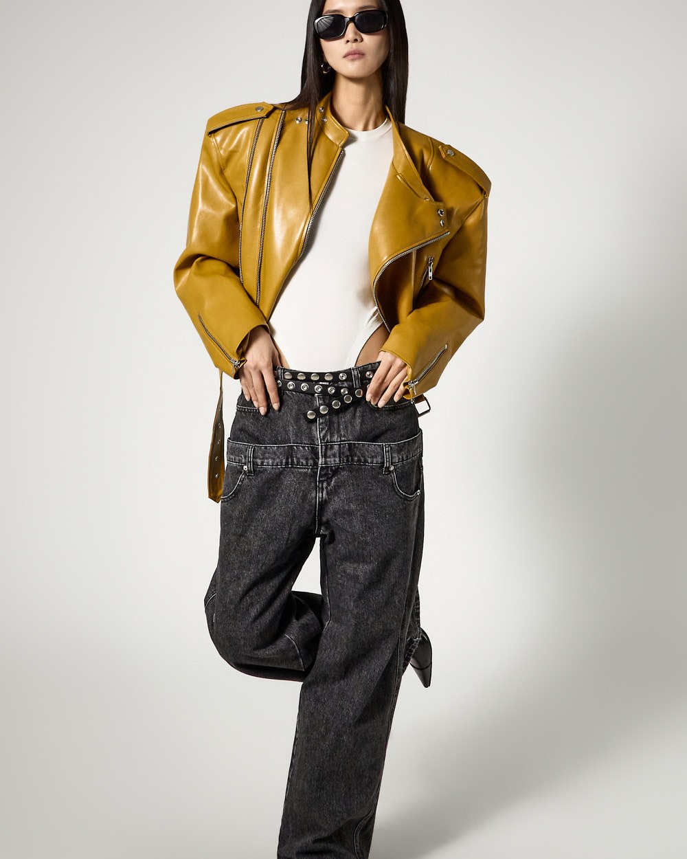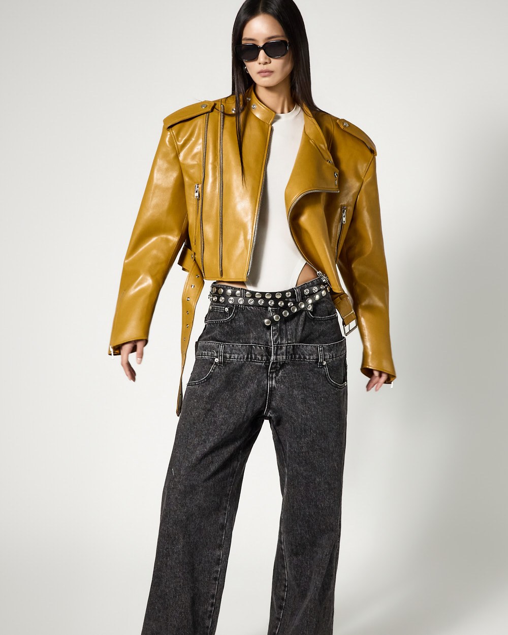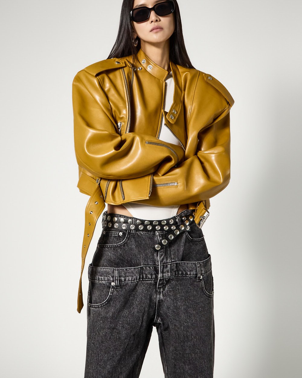 시크한 무드의 비건레더 바이커 자켓입니다.