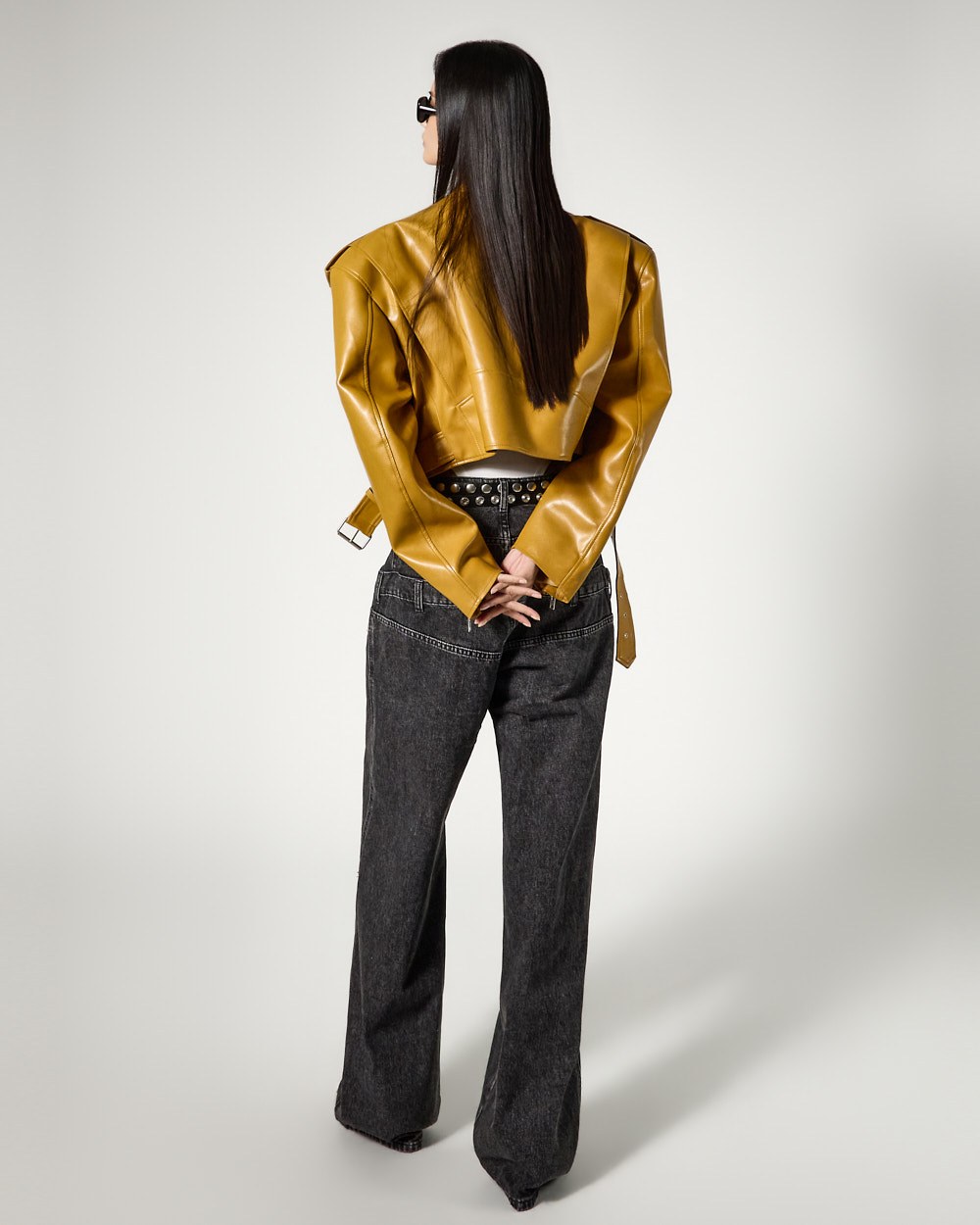 강조된 어깨 패드로 구조적인 핏을 연출합니다.