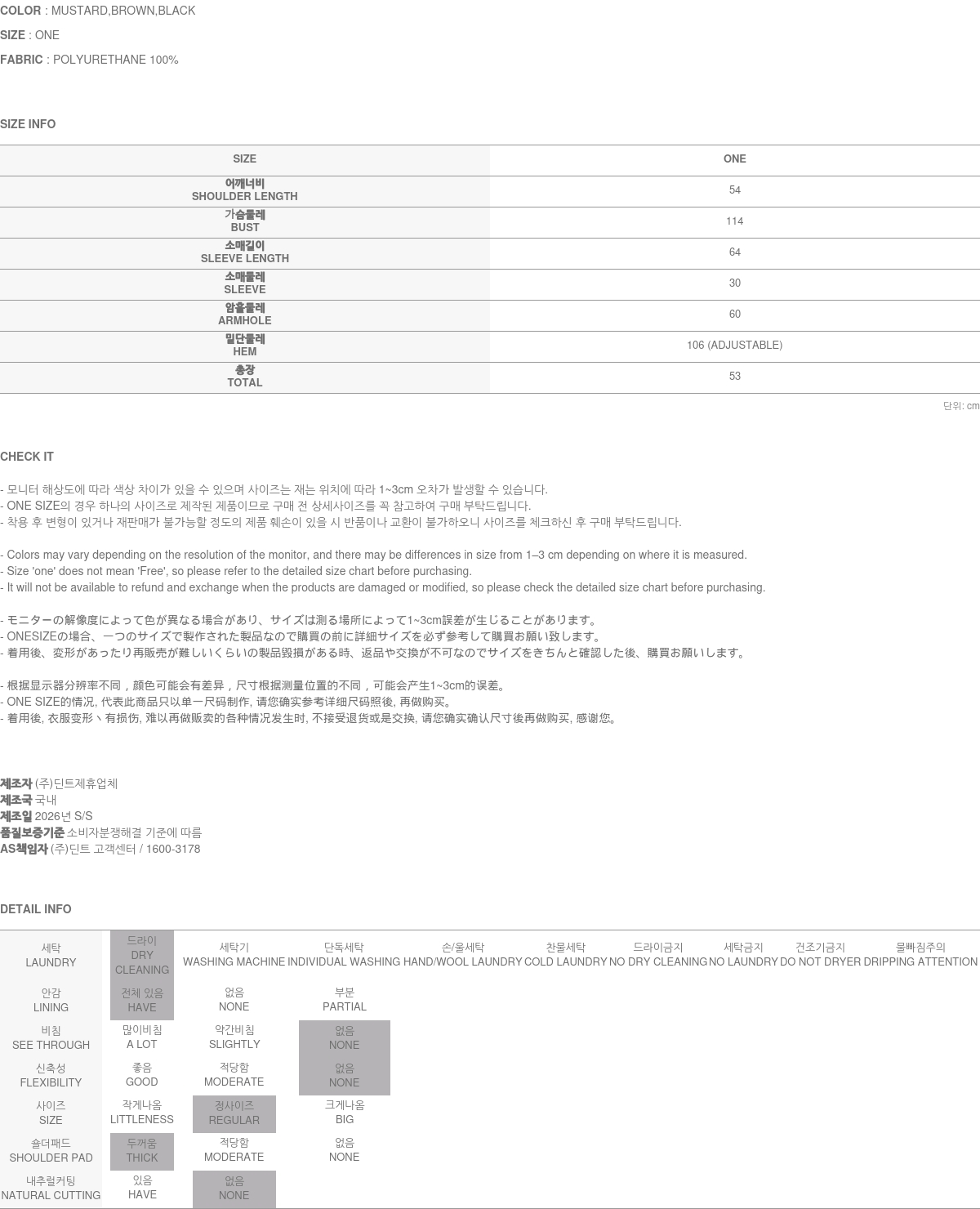 173CM 모델 ONE 사이즈, MUSTARD 컬러 착용하였습니다.
