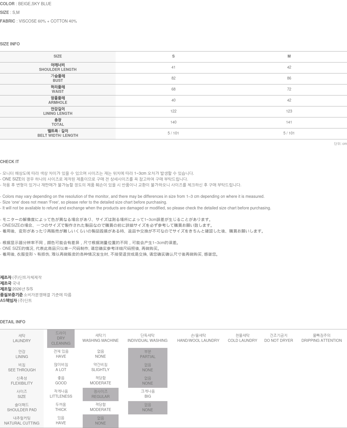 174CM 모델 S 사이즈, BEIGE 컬러 착용하였습니다.