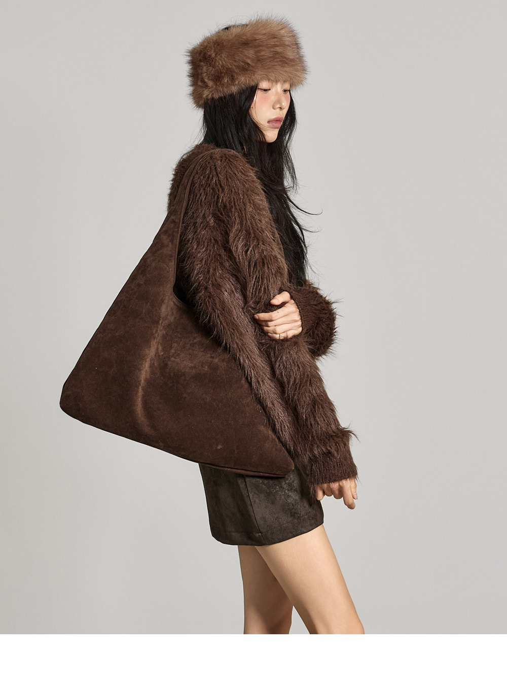 빈티지한 컬러감과 스웨이드 소재 특유의 분위기가 어우러져