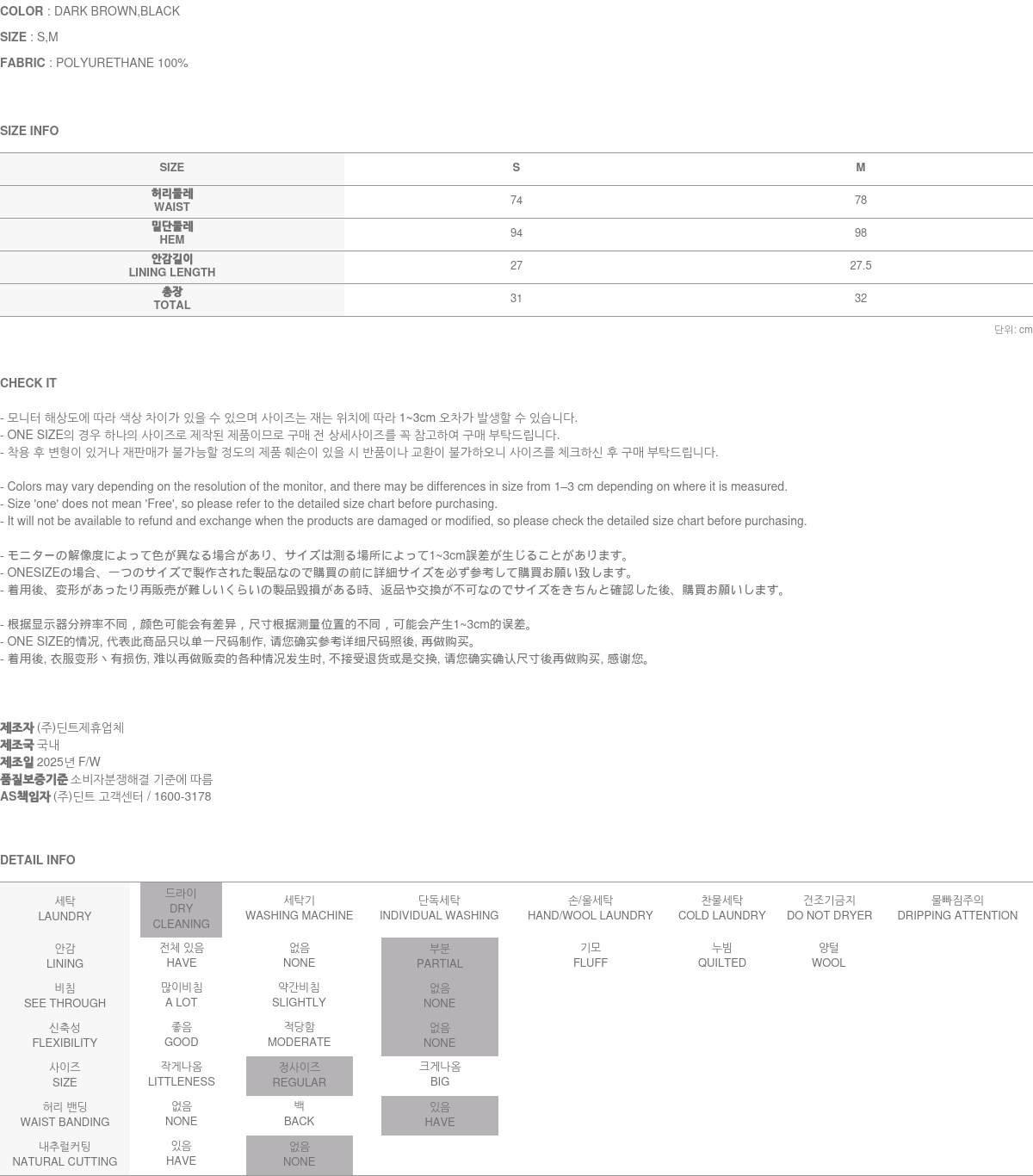 171CM 모델 S 사이즈, DARK BROWN 컬러 착용하였습니다.