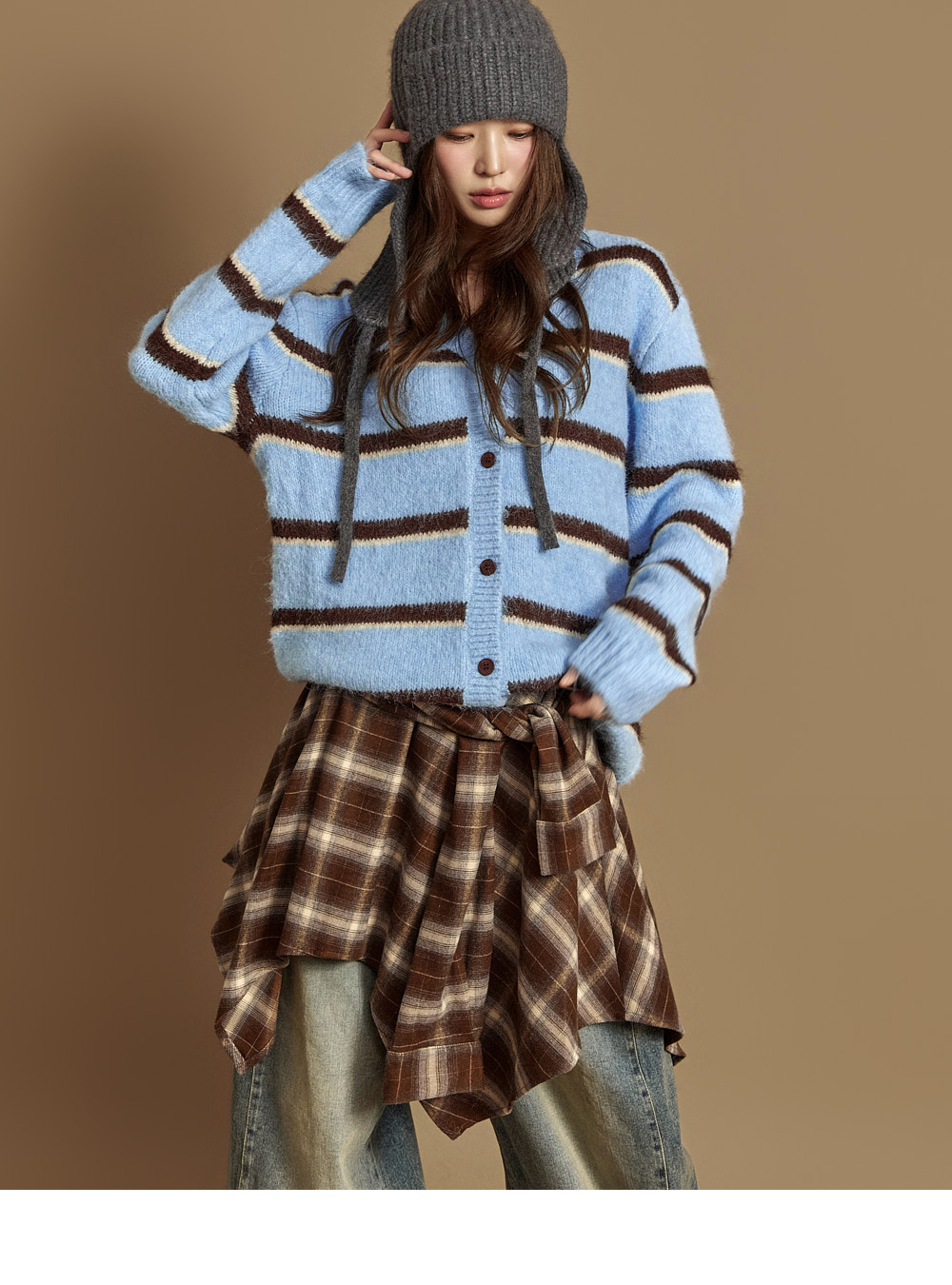 171CM 모델 ONE 사이즈, LIGHT BLUE 컬러 착용하였습니다.