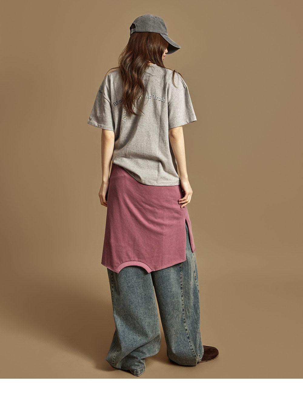 사이드 핀턱 라인으로 떨어지는 와이드 핏이