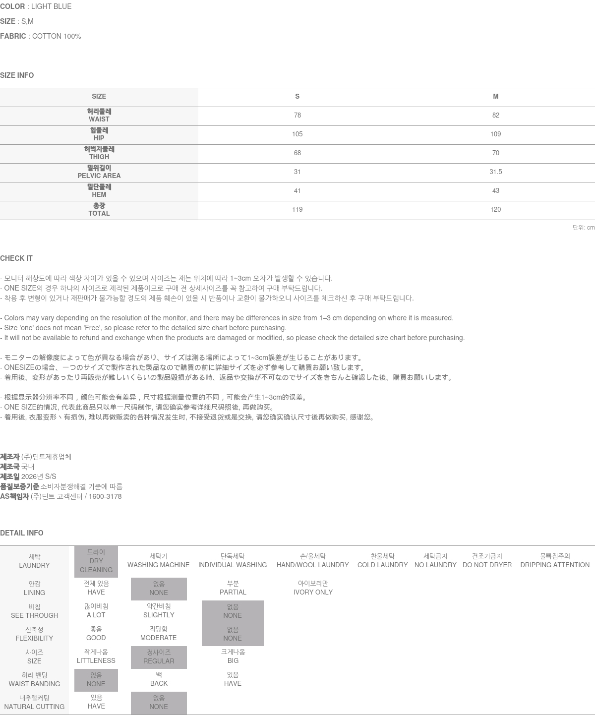 173CM 모델 S 사이즈, LIGHT BLUE 컬러 착용하였습니다.