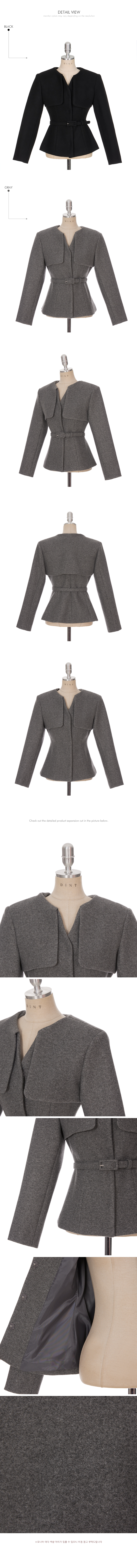 자켓은 전면 버튼 여밈과 숄더 패드로