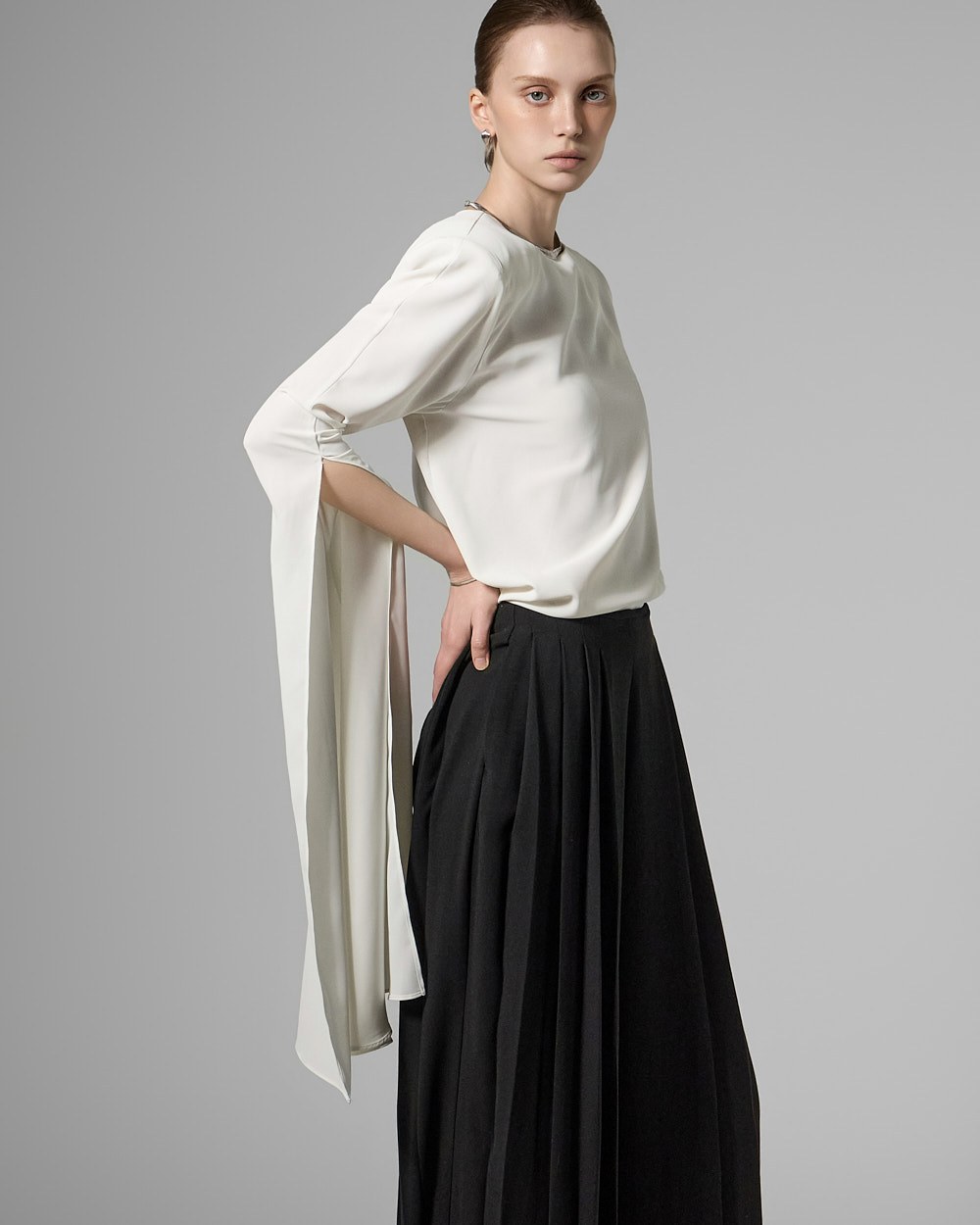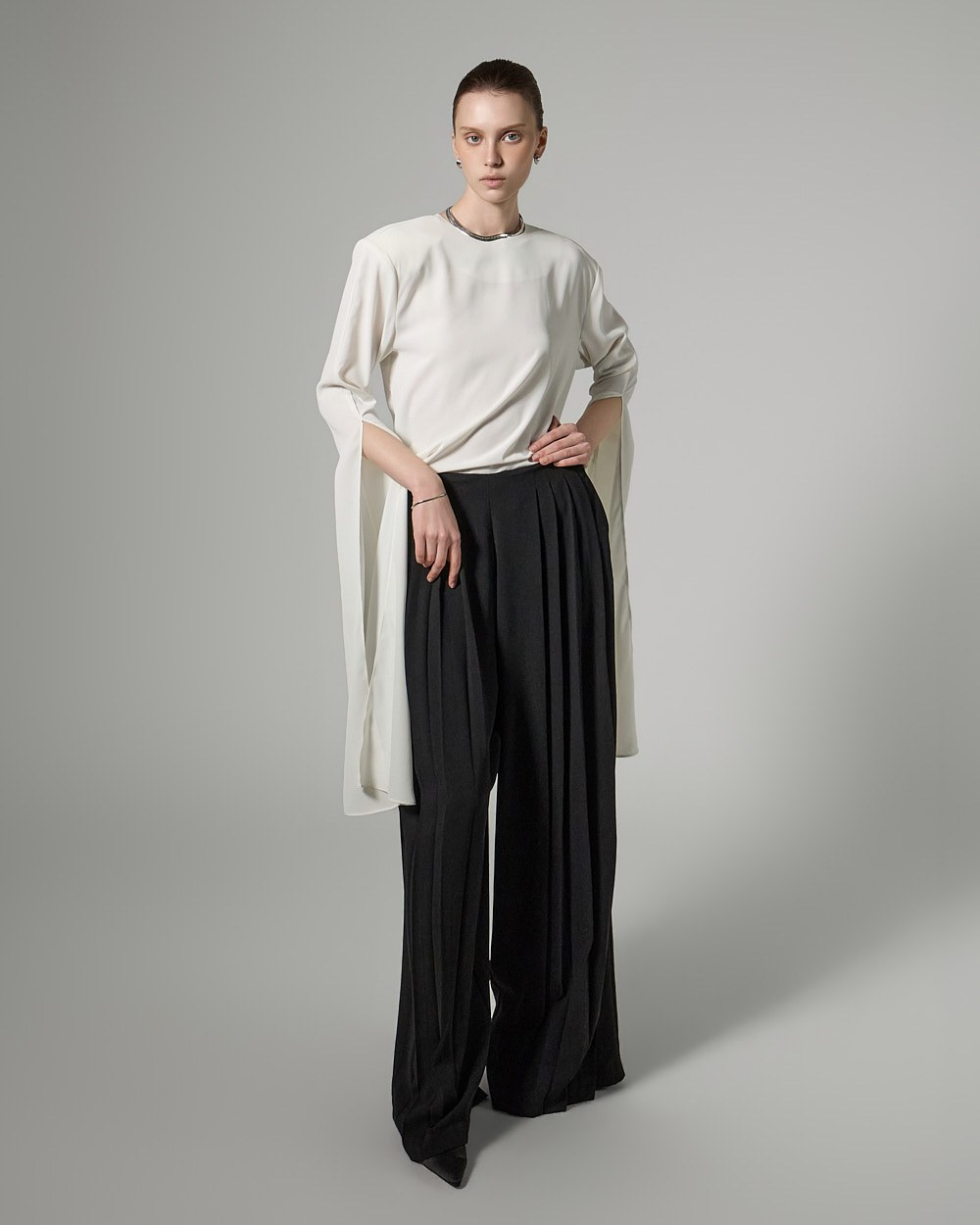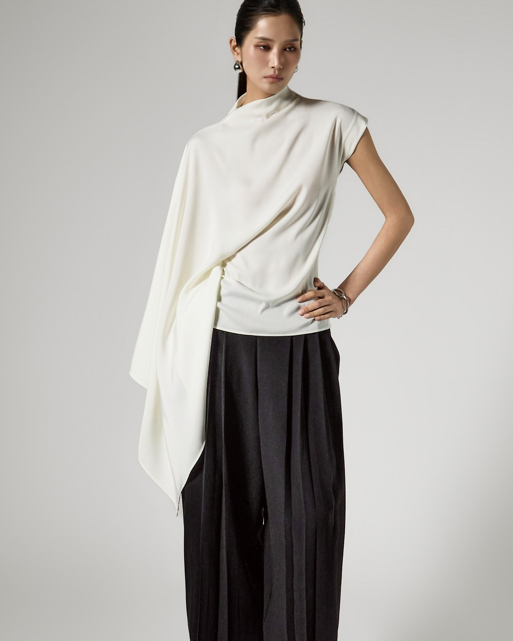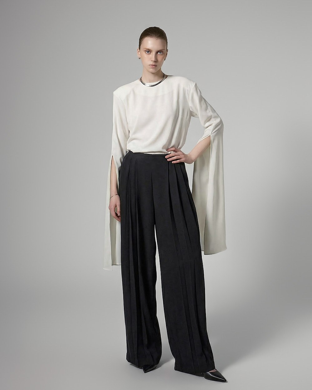 와이드핏의 플리츠 실루엣으로