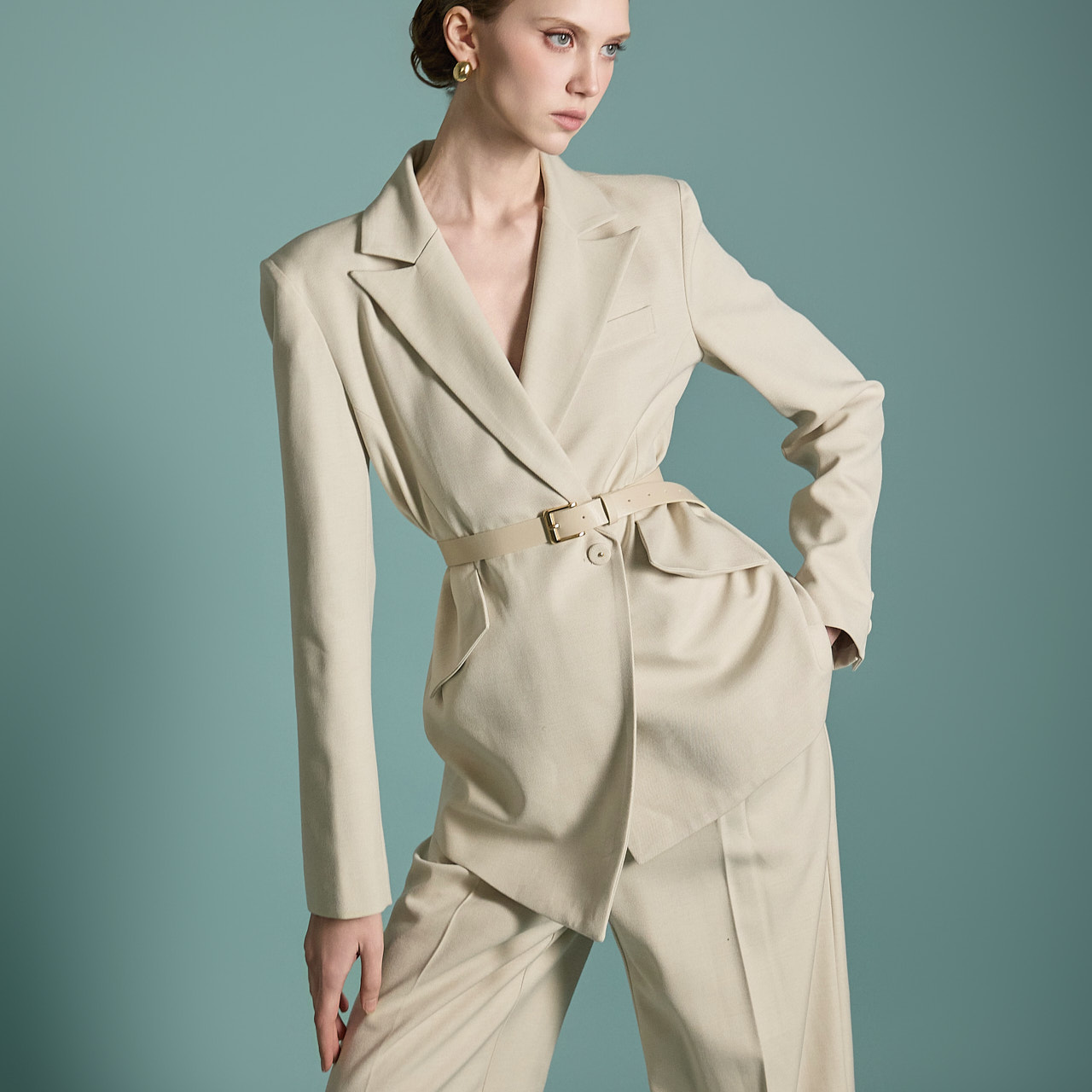 레이온, 울, 스판 혼방으로 제작되었으며,