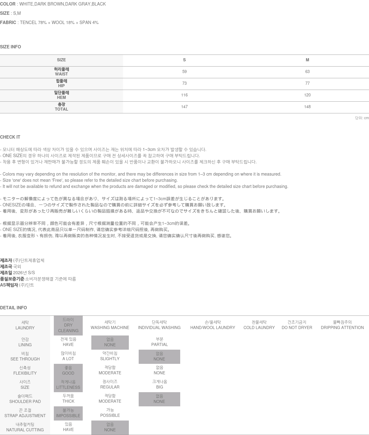 173CM 모델 S 사이즈, DARK BROWN 컬러 착용하였습니다.