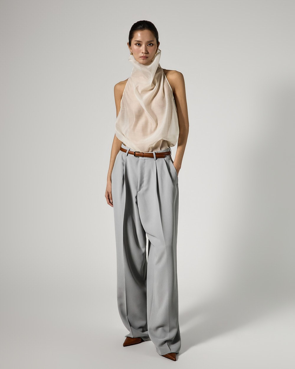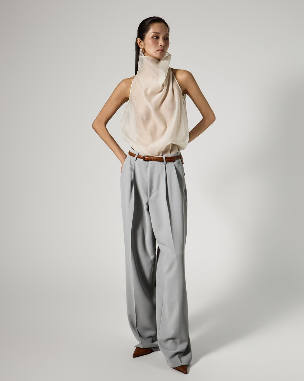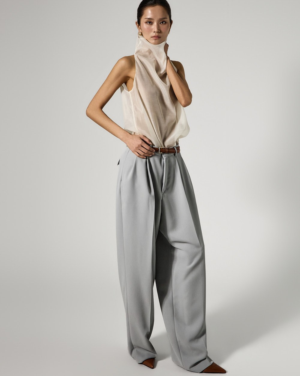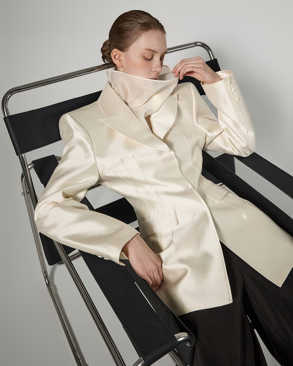 하이넥 라인으로 목을 감싸듯 부드럽게 떨어져
