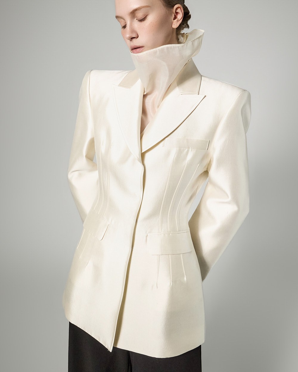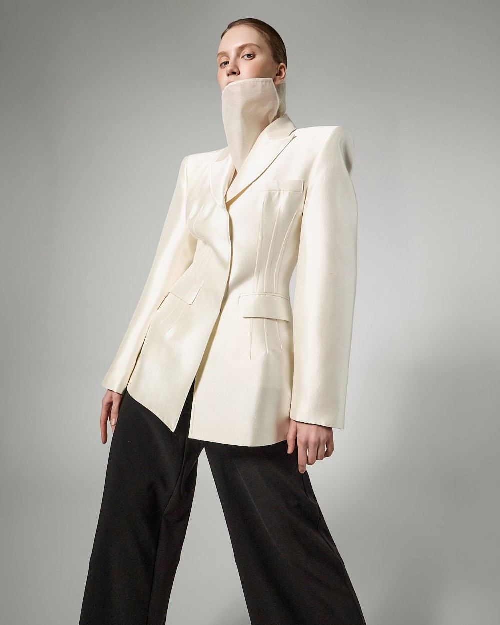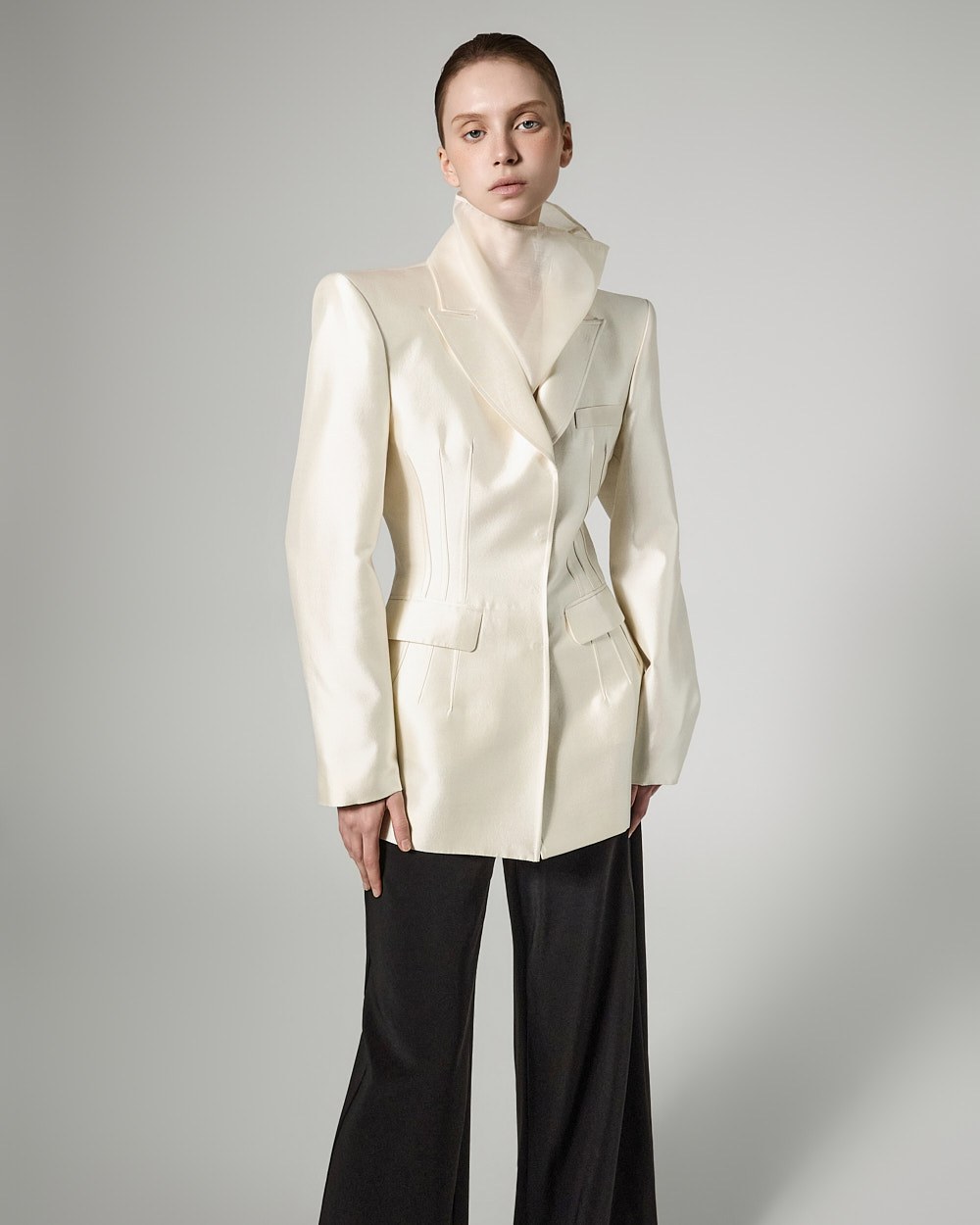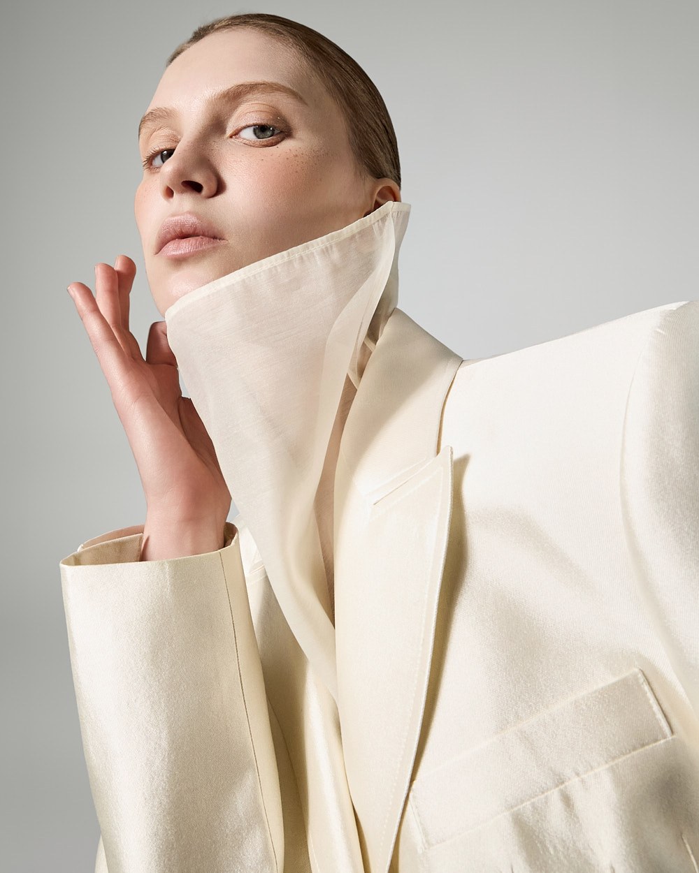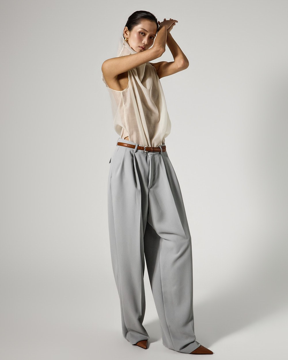 하이넥 라인으로 목을 감싸듯 부드럽게 떨어져