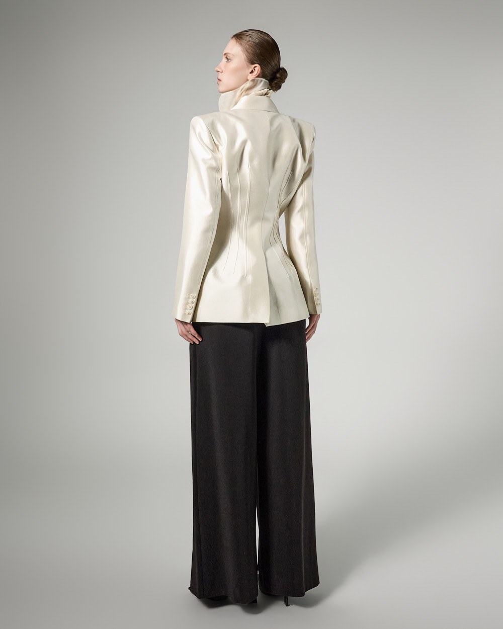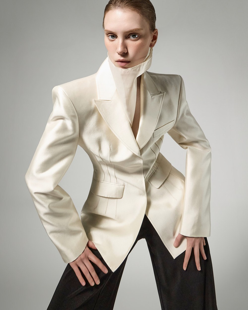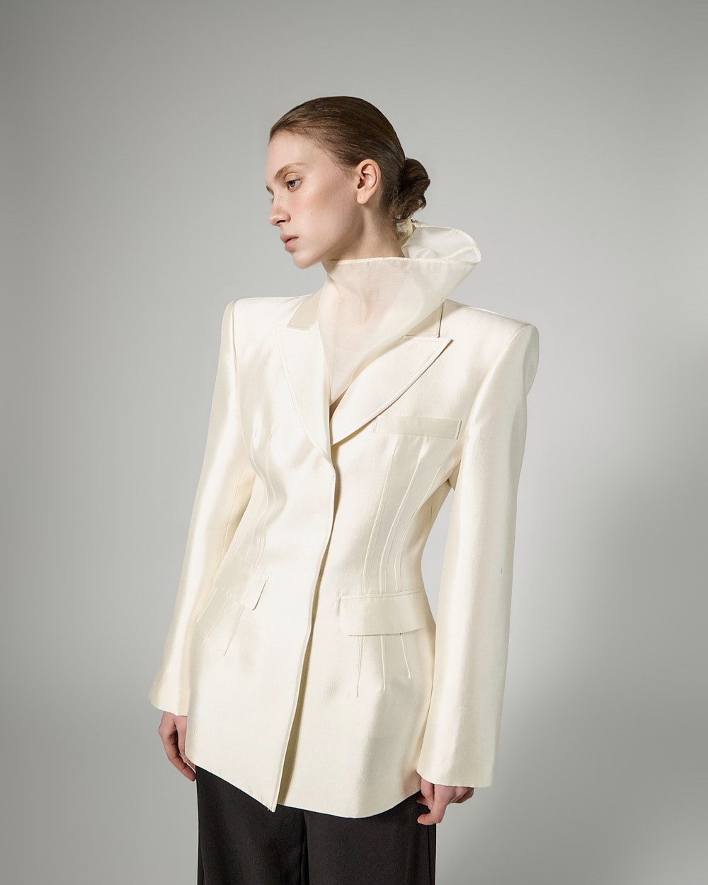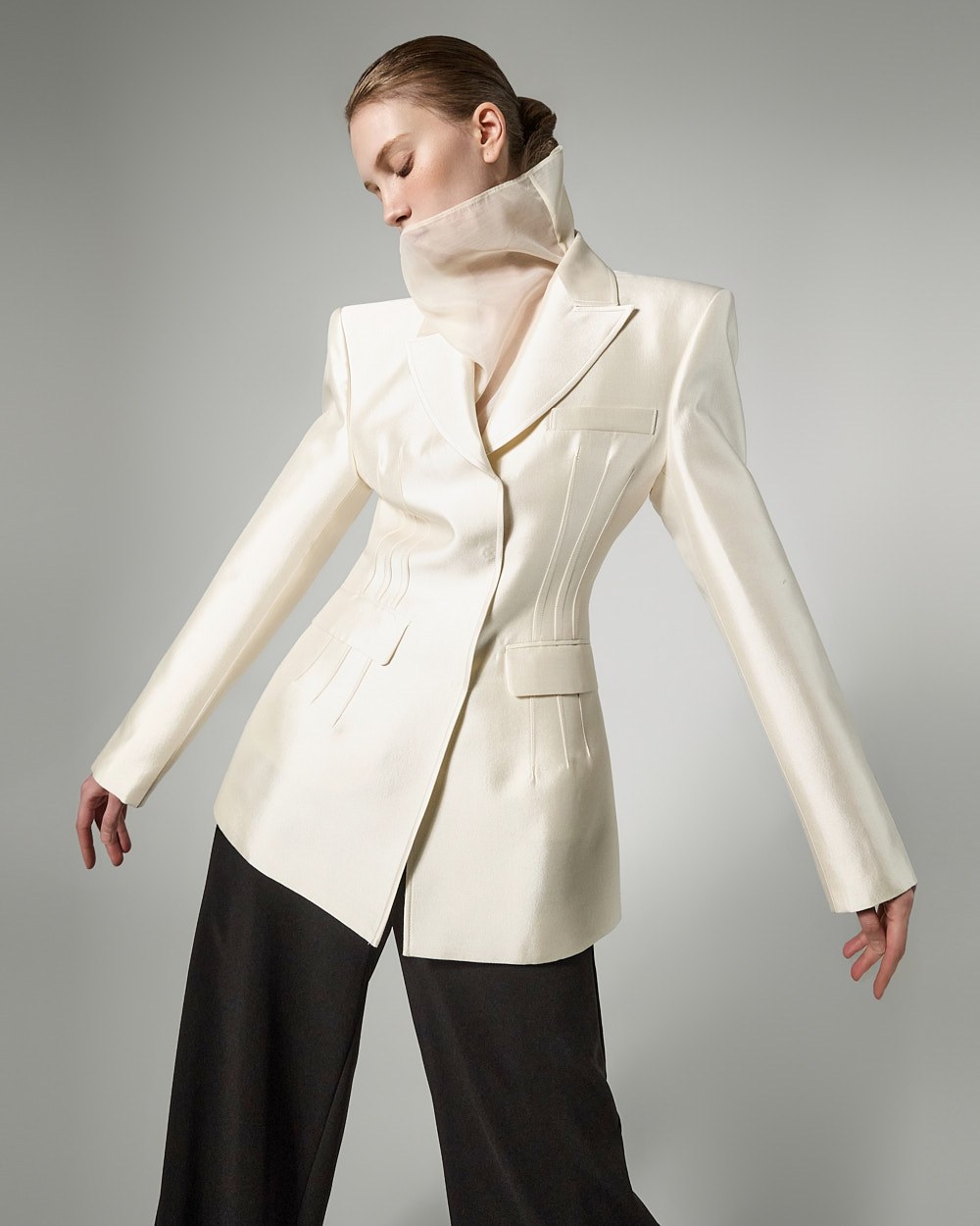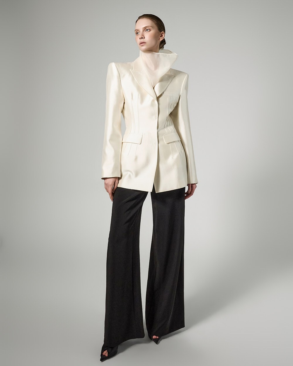 하이넥 라인으로 목을 감싸듯 부드럽게 떨어져