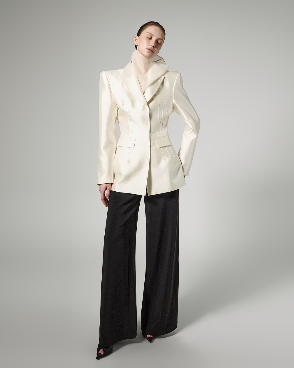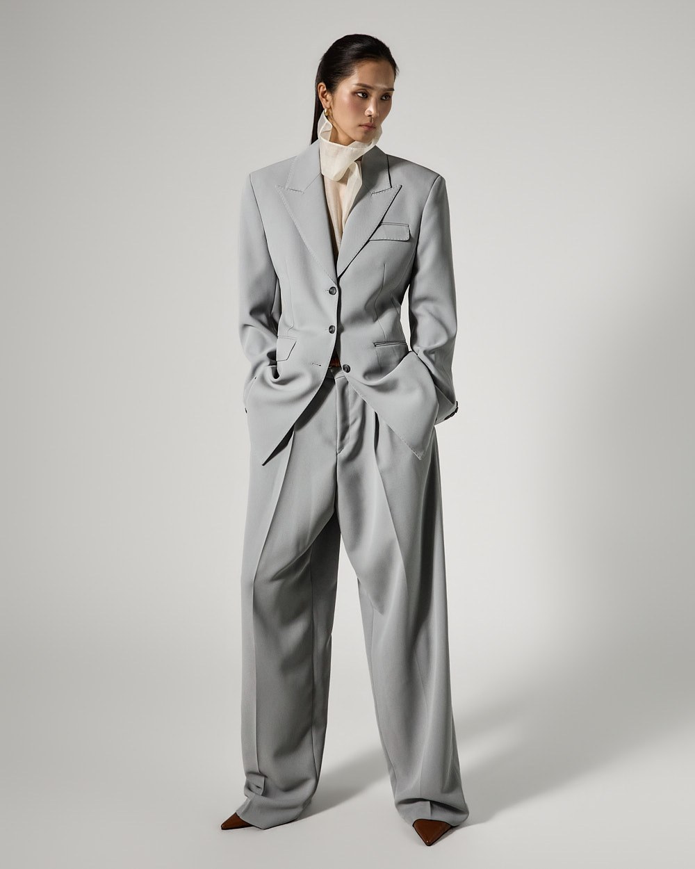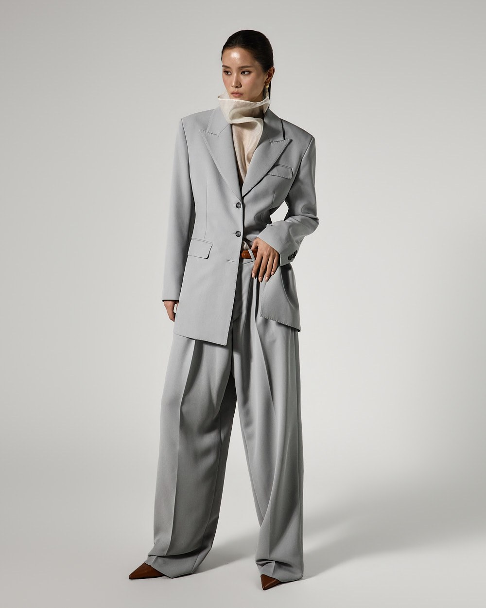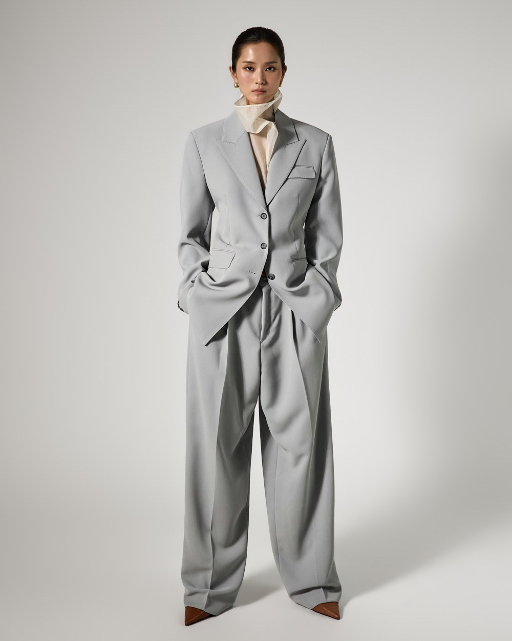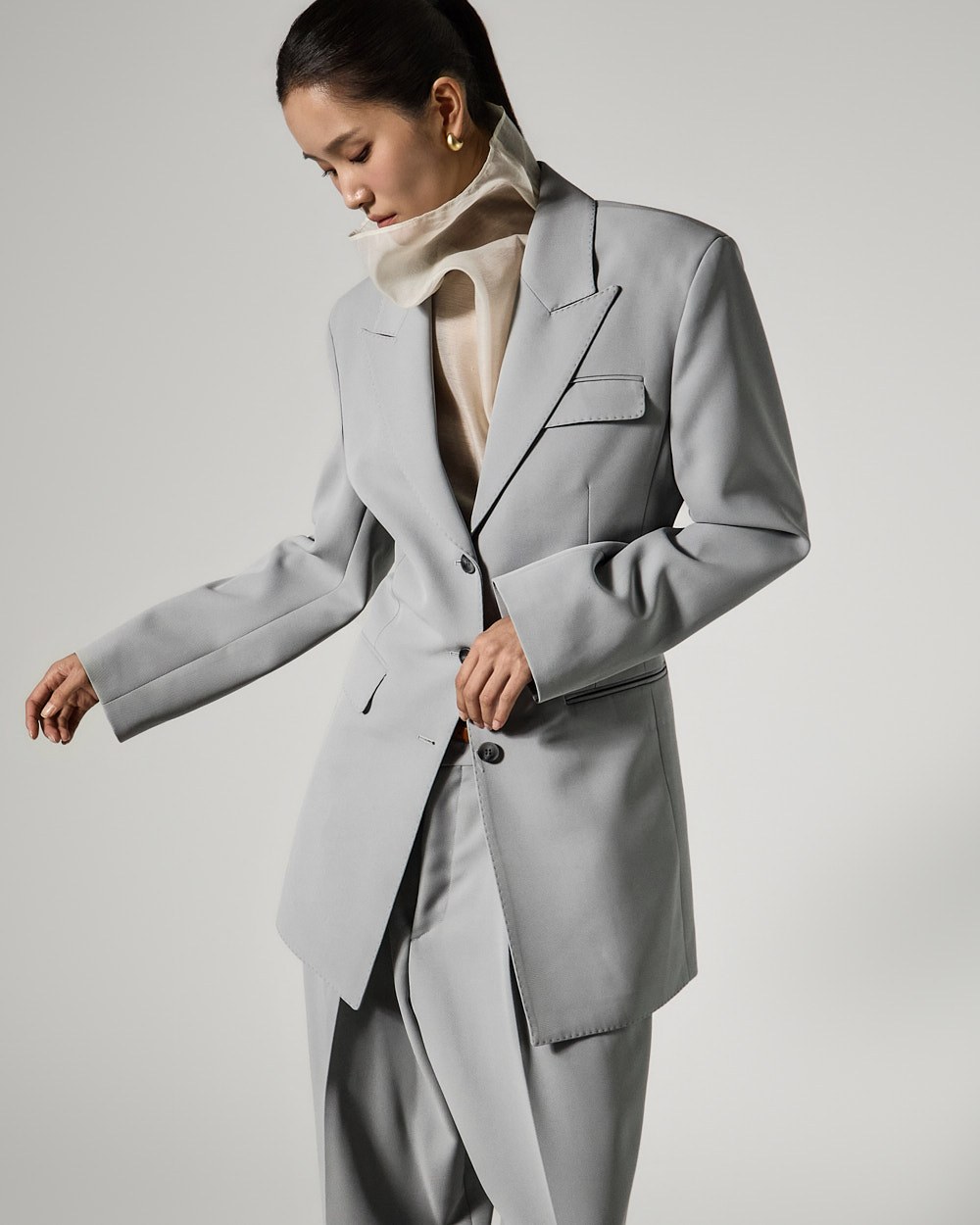은은한 광택감과 함께 가볍게 흐르는 착용감을 제공합니다.