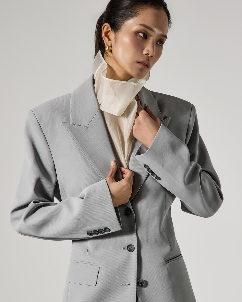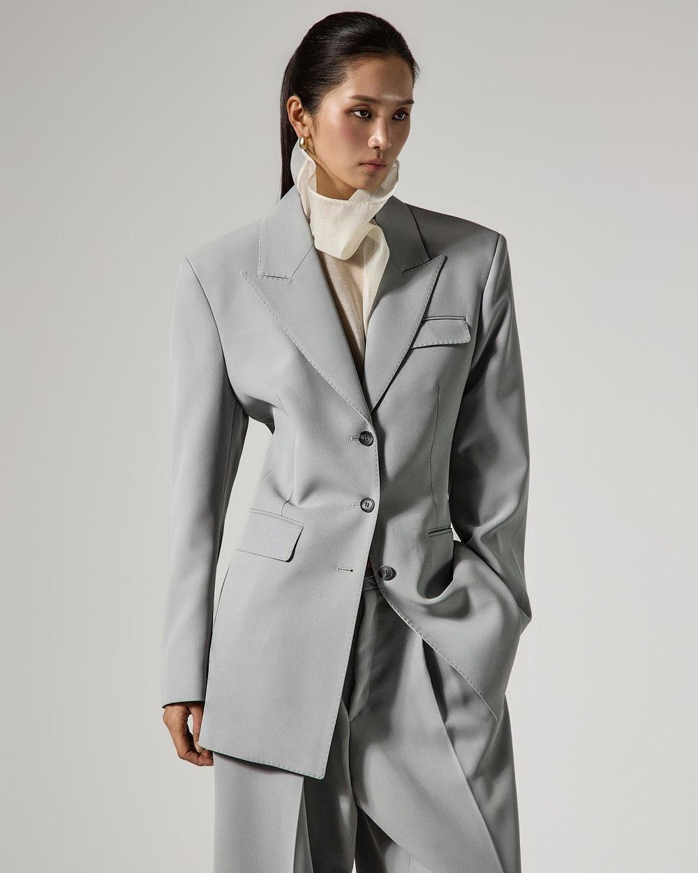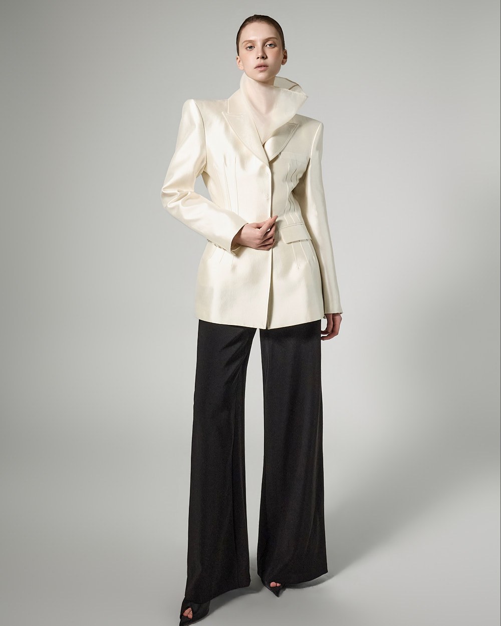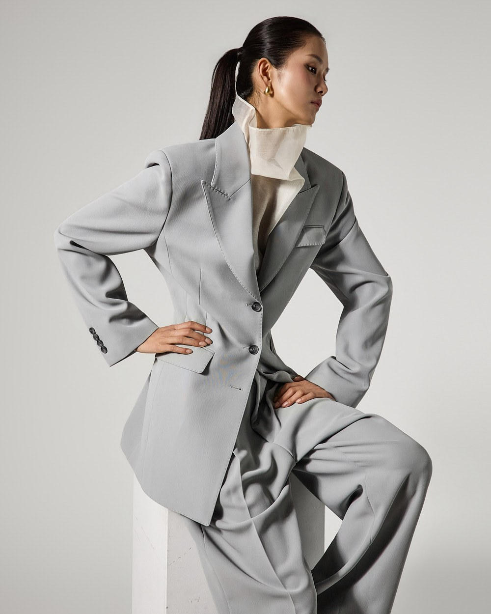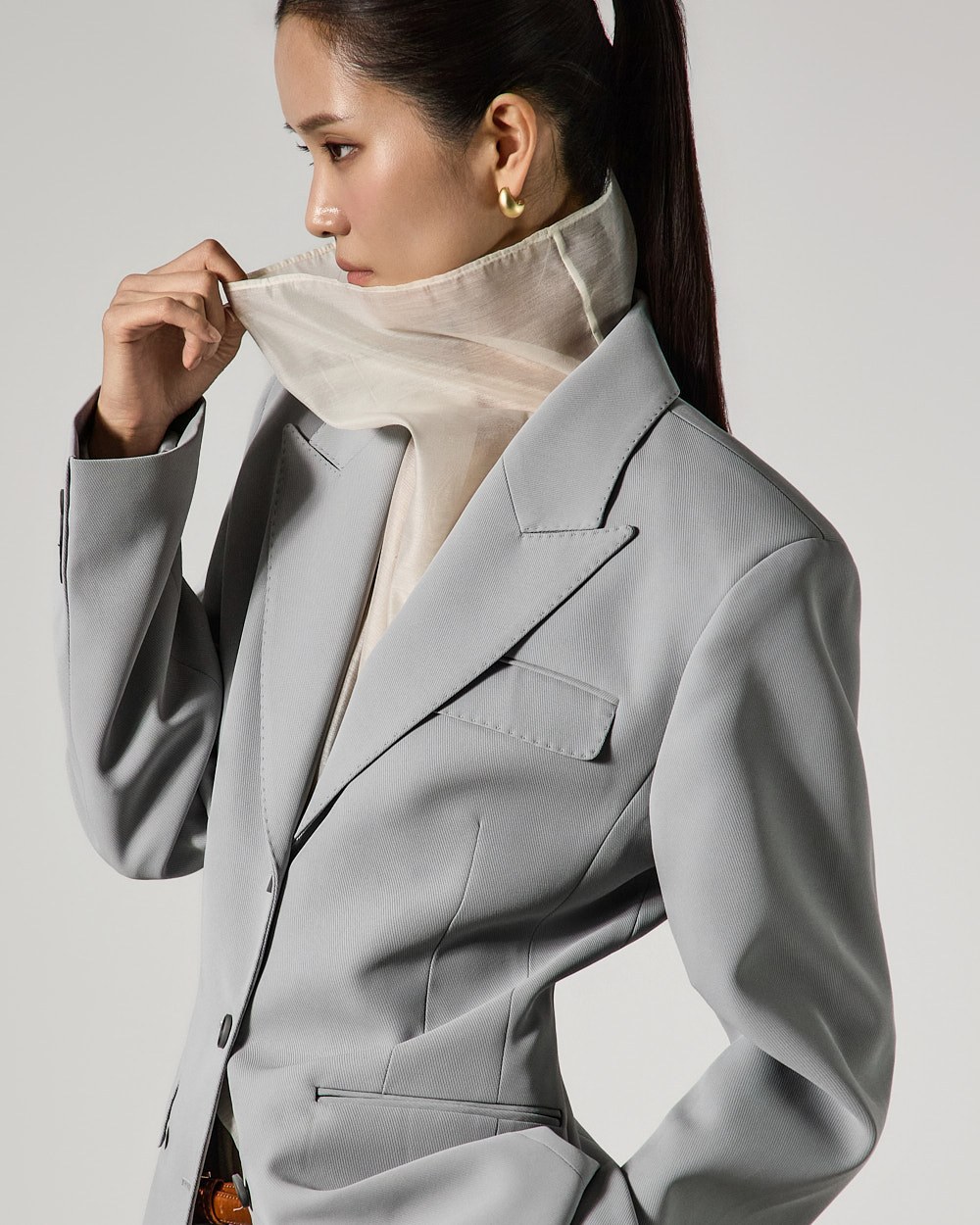 은은한 광택감과 함께 가볍게 흐르는 착용감을 제공합니다.