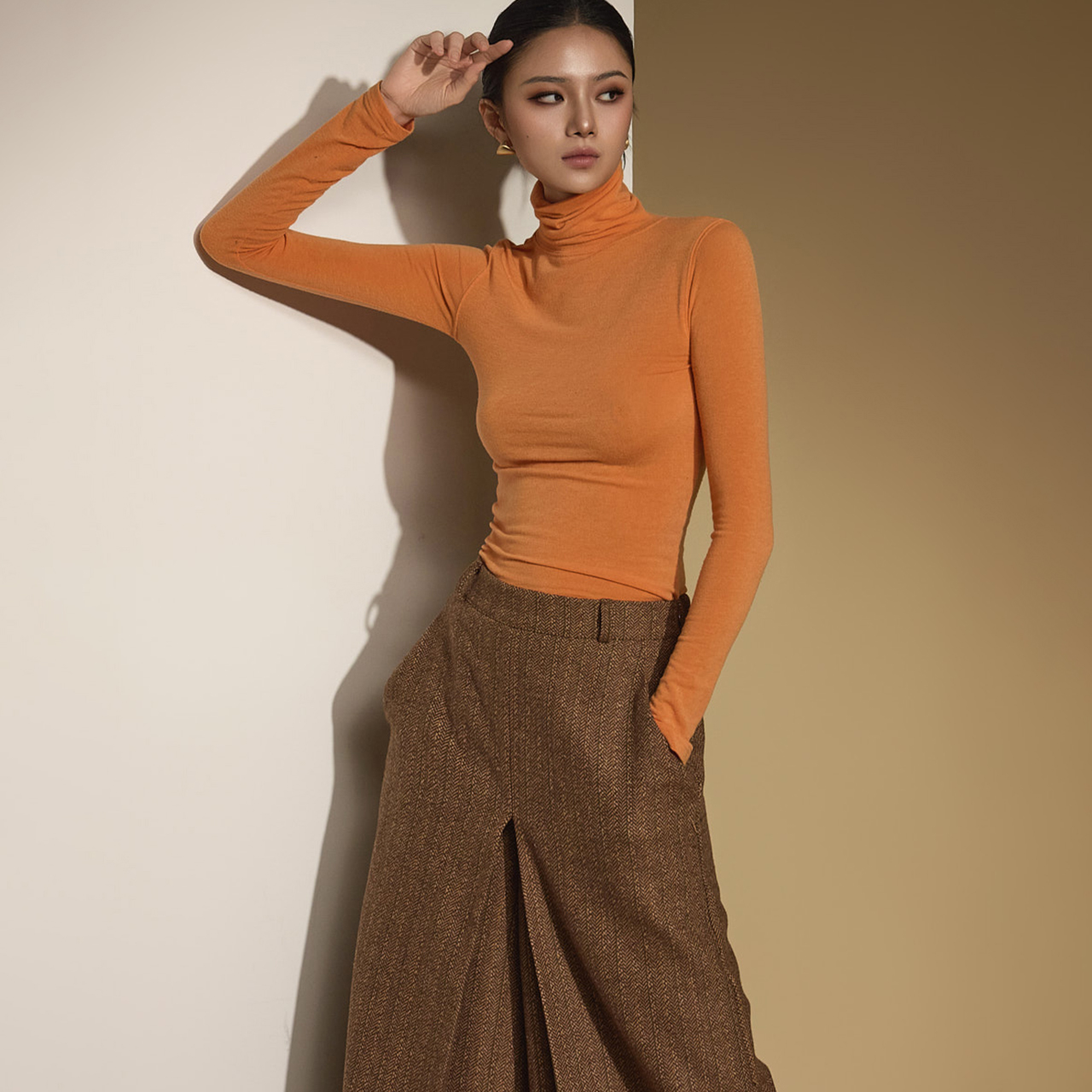 터틀넥 라인으로 세련된 넥라인을 돋보여드리며,