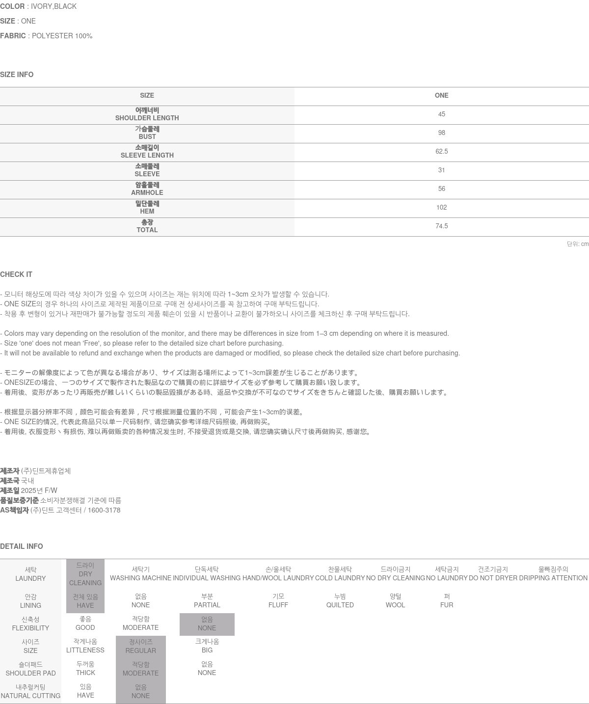 정확한 사이즈는 반드시 구매 전 상세 사이즈를 확인해 주시기 바랍니다.