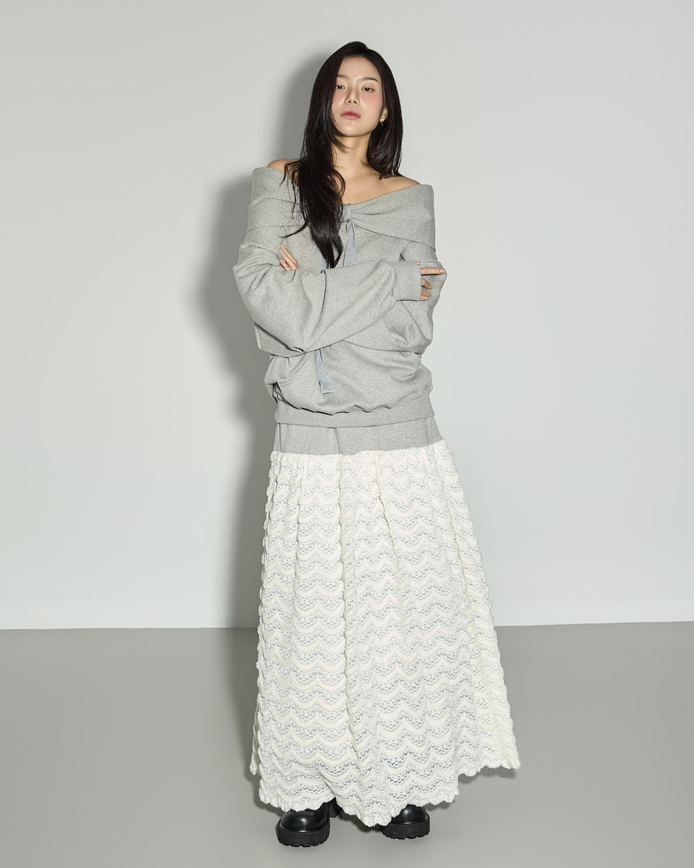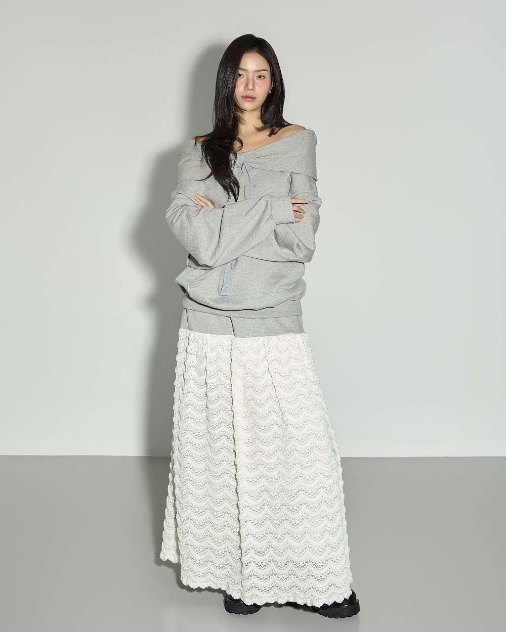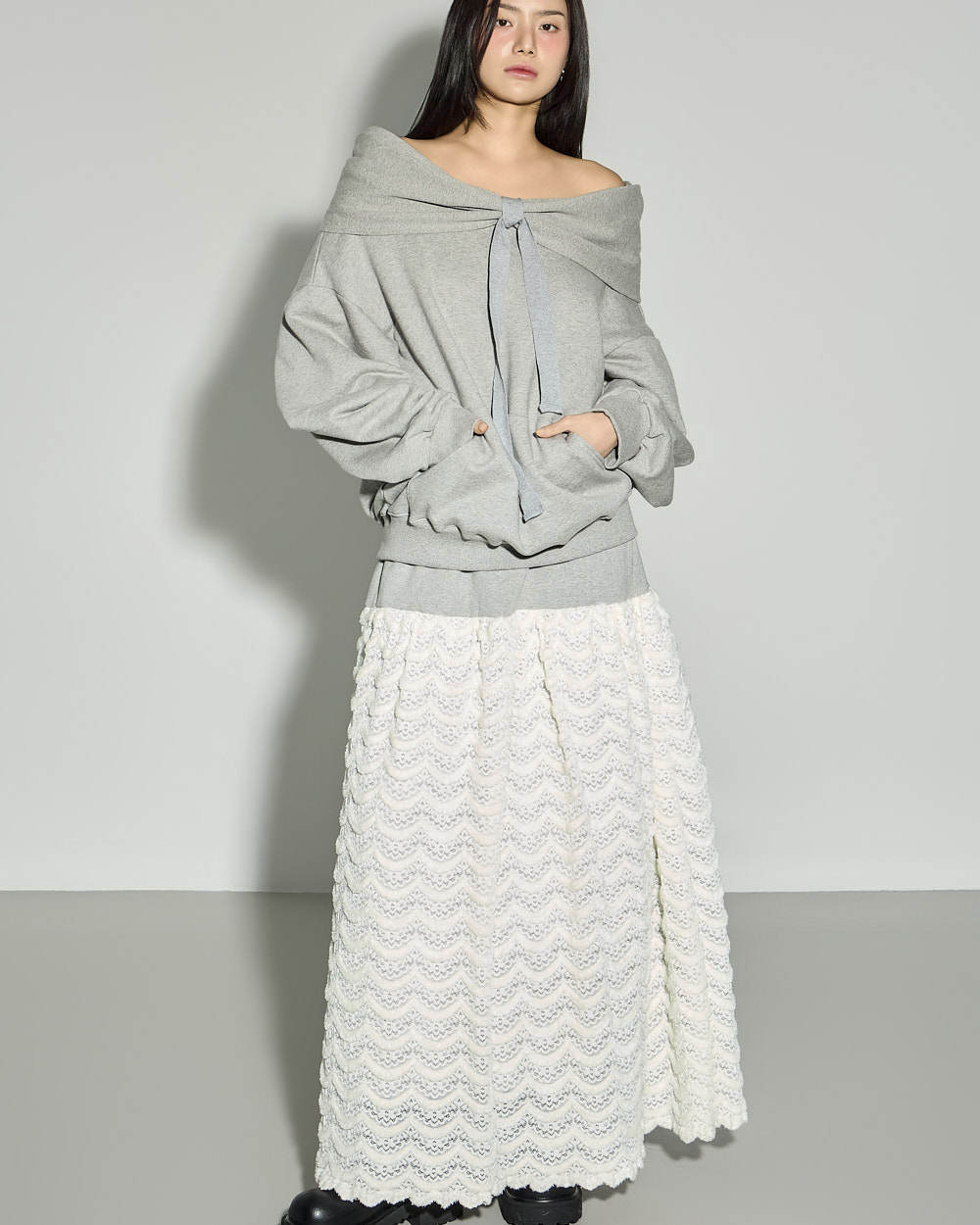 연출되어 페미닌한 포인트를 더했습니다.