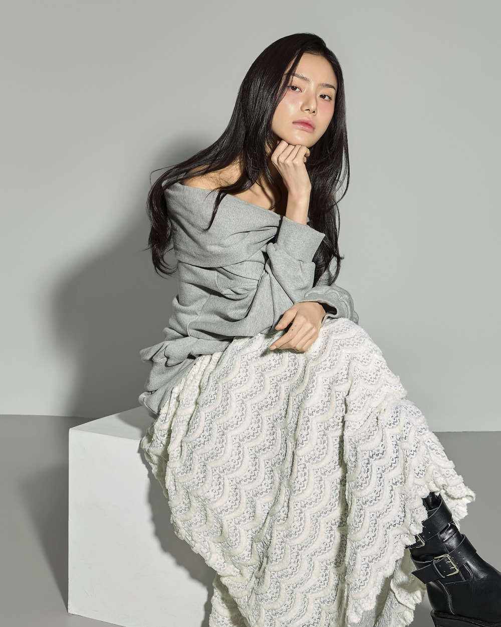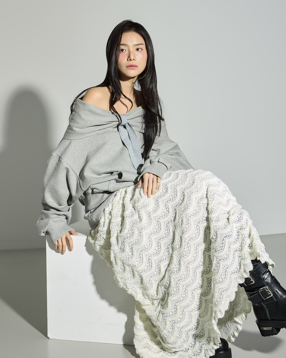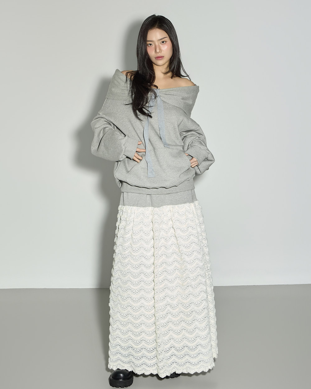 연출되어 페미닌한 포인트를 더했습니다.